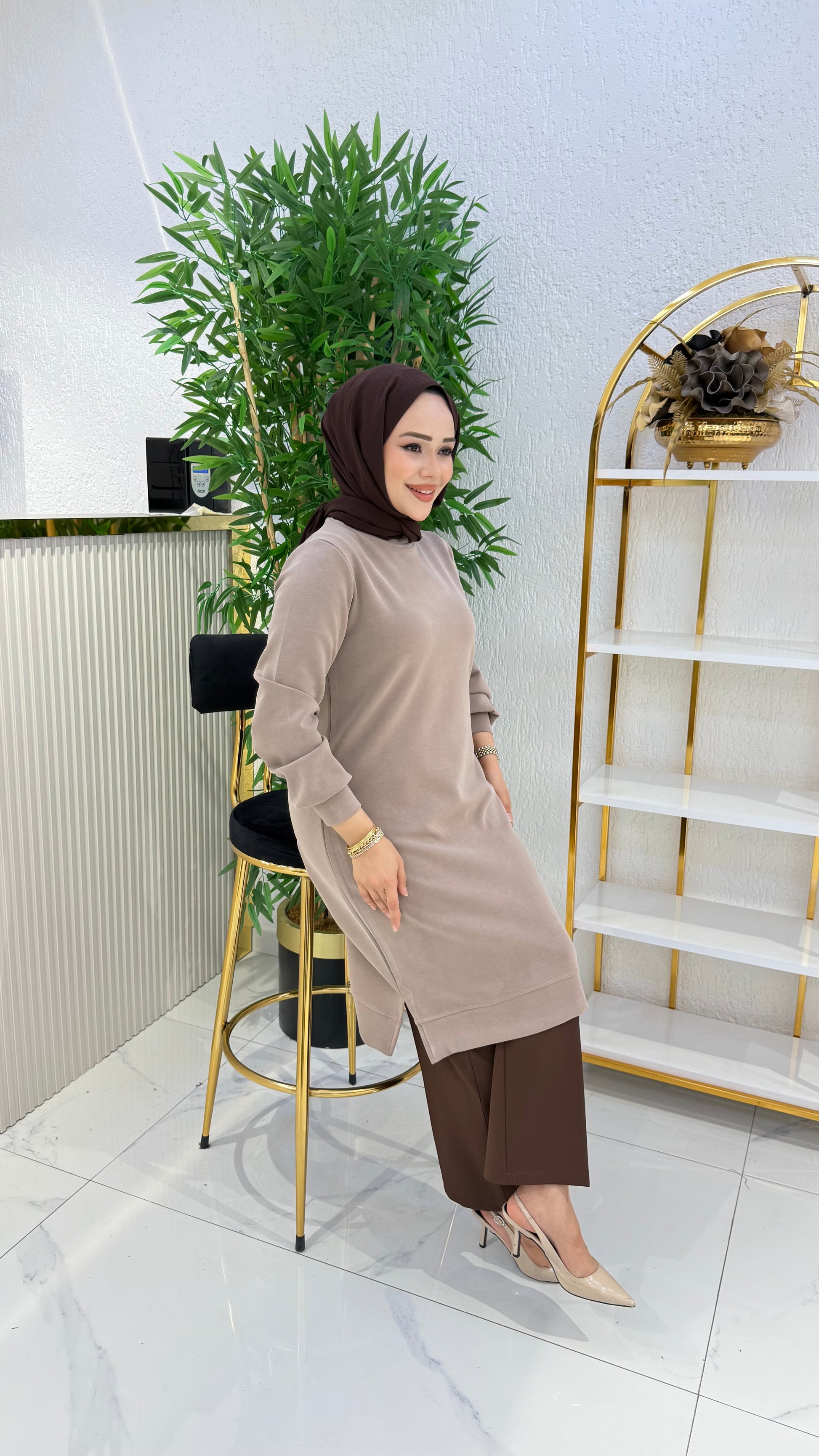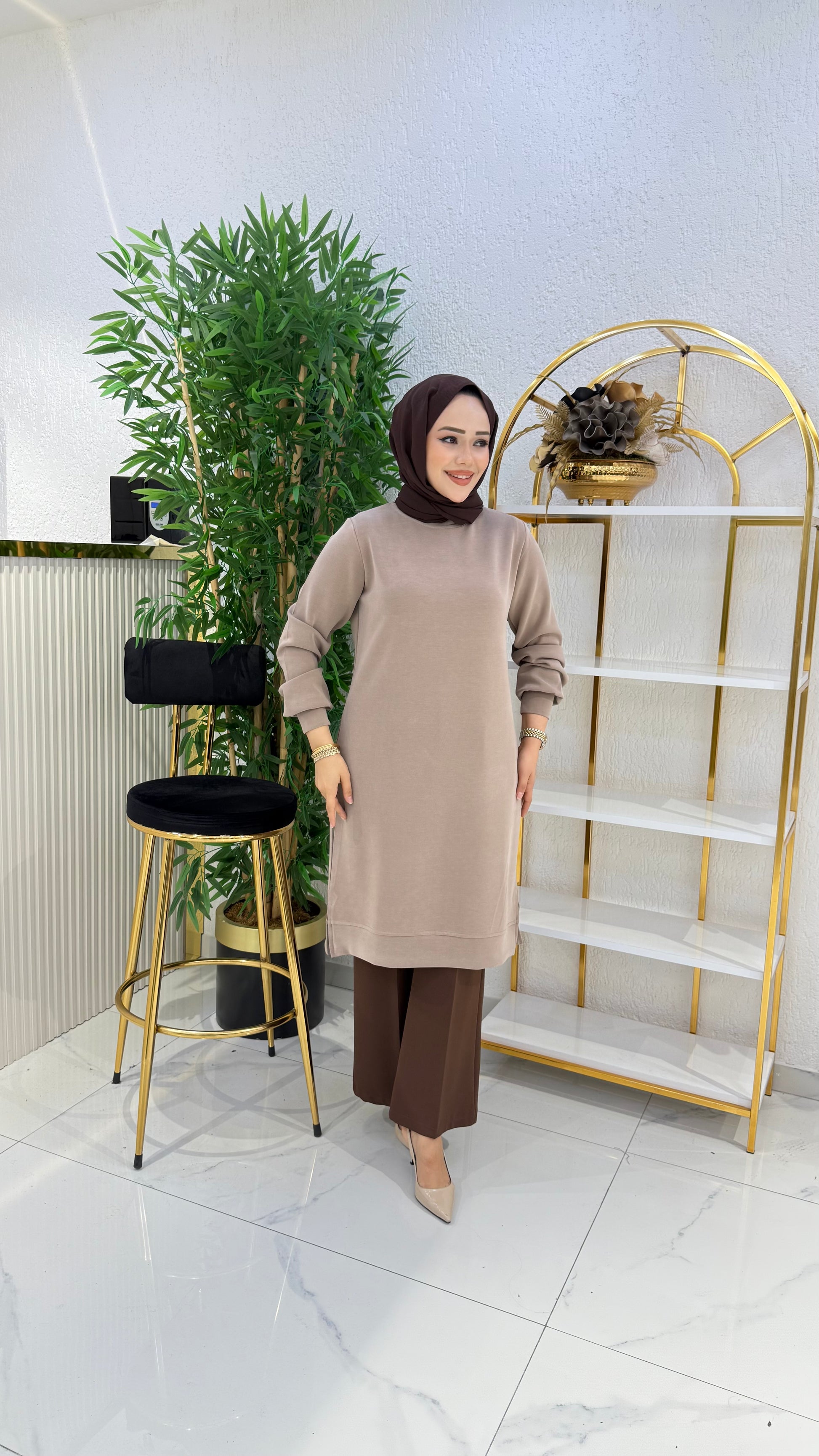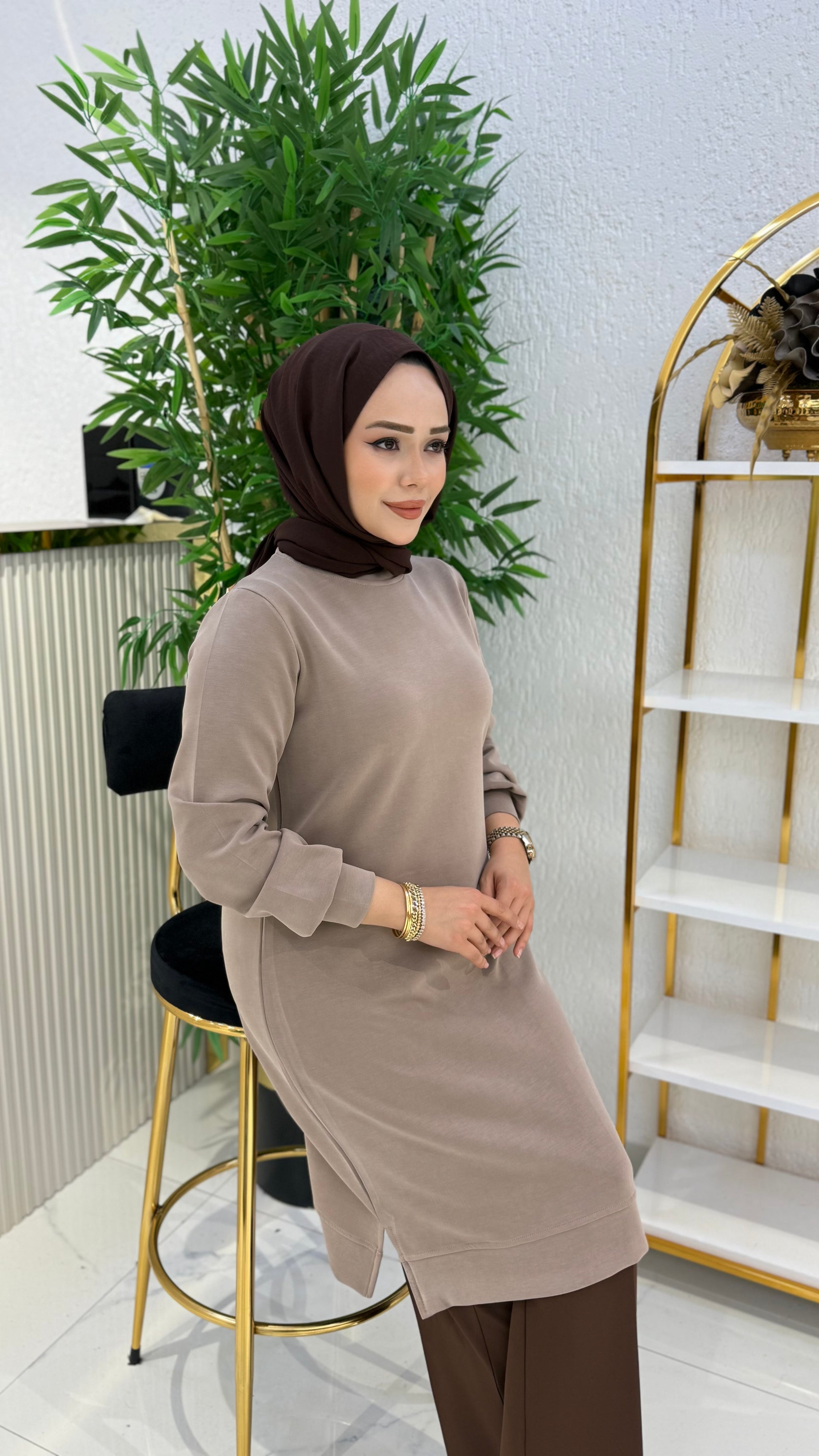 Kumaşı elinizde akıp giden, kadifemsi, a kalite orijinal oysho kumaş, %85 pamuk tunik modelimiz, bej