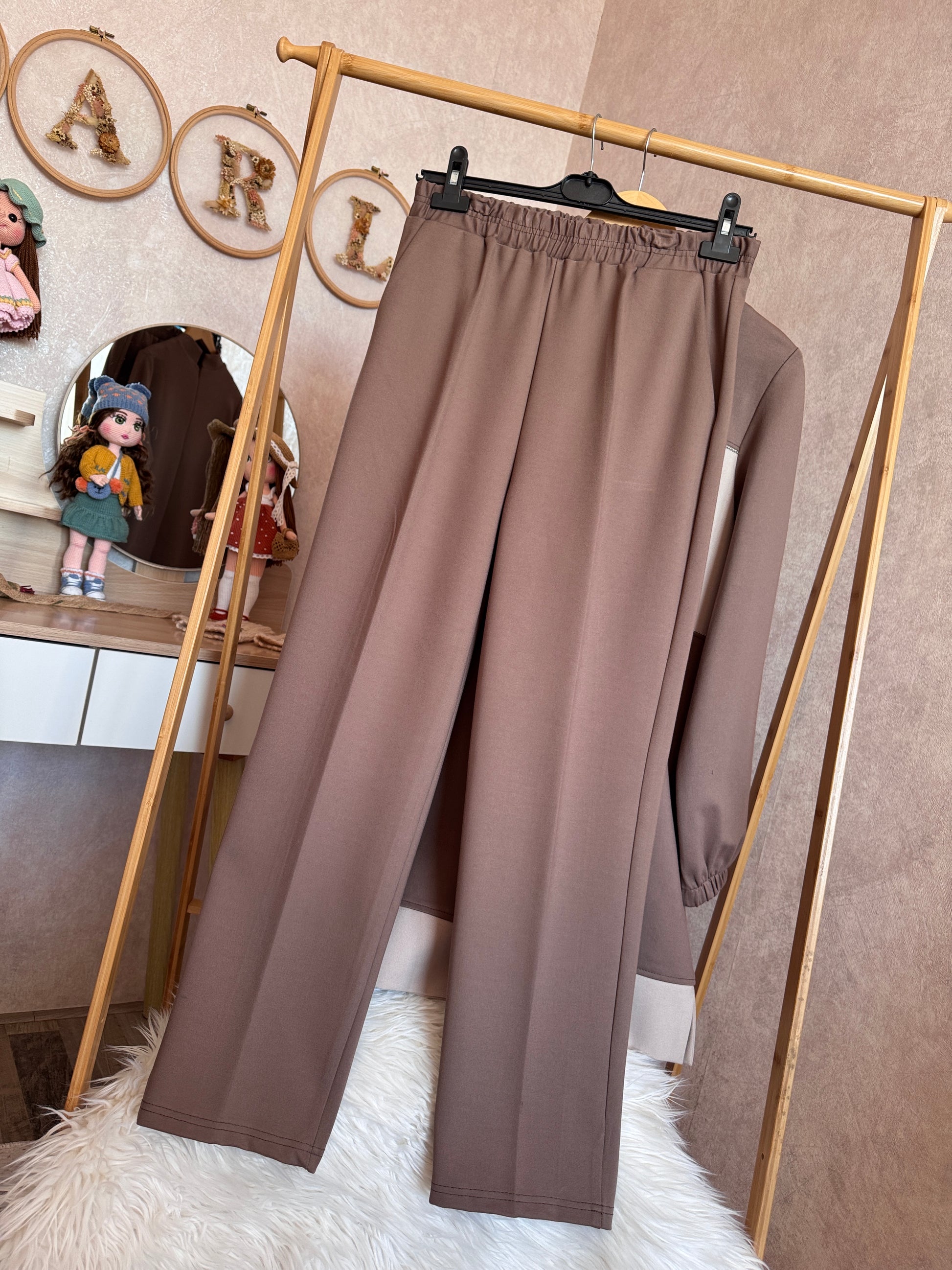 Çelik örgü kumaş takım, kahve-taş