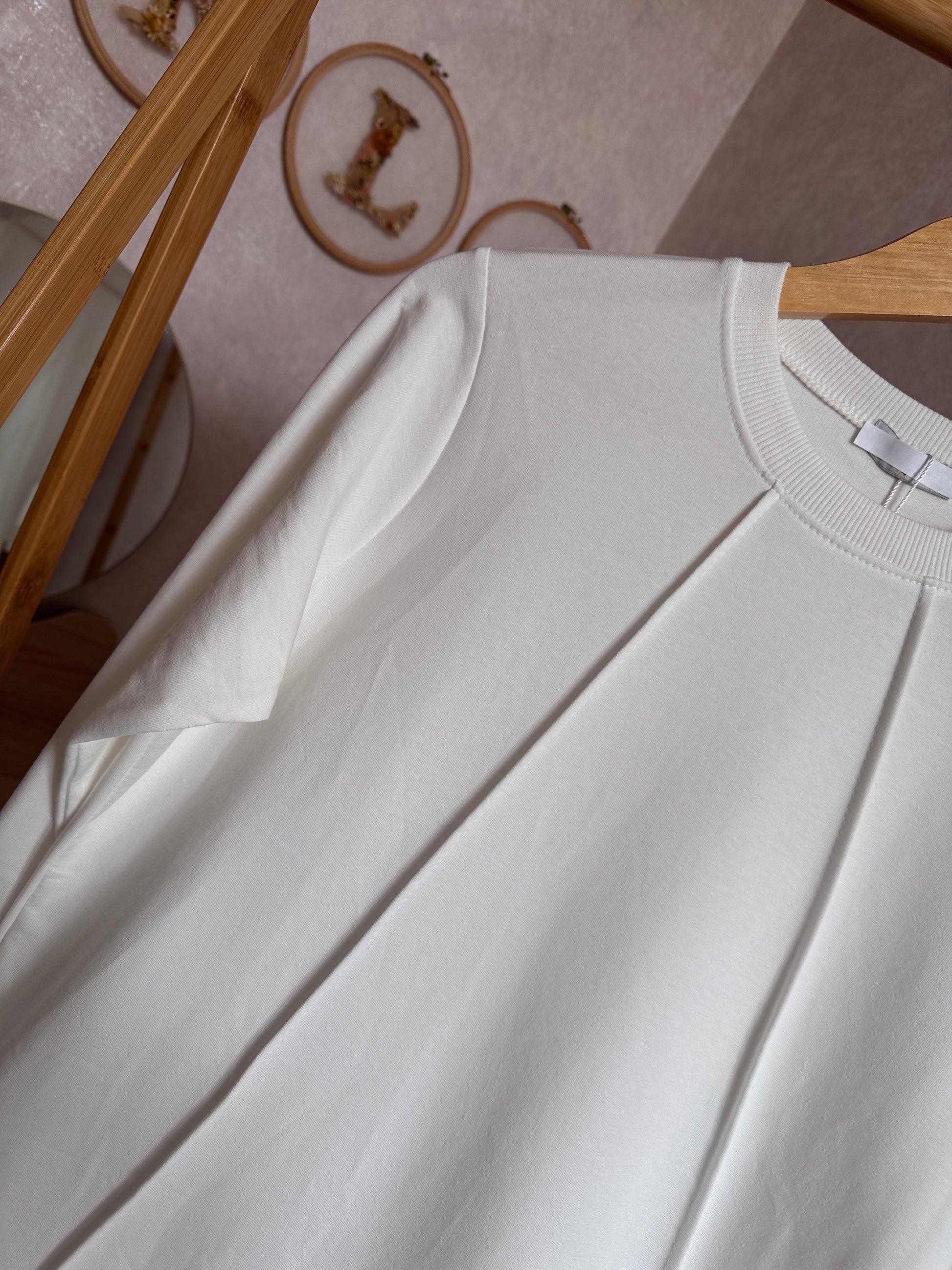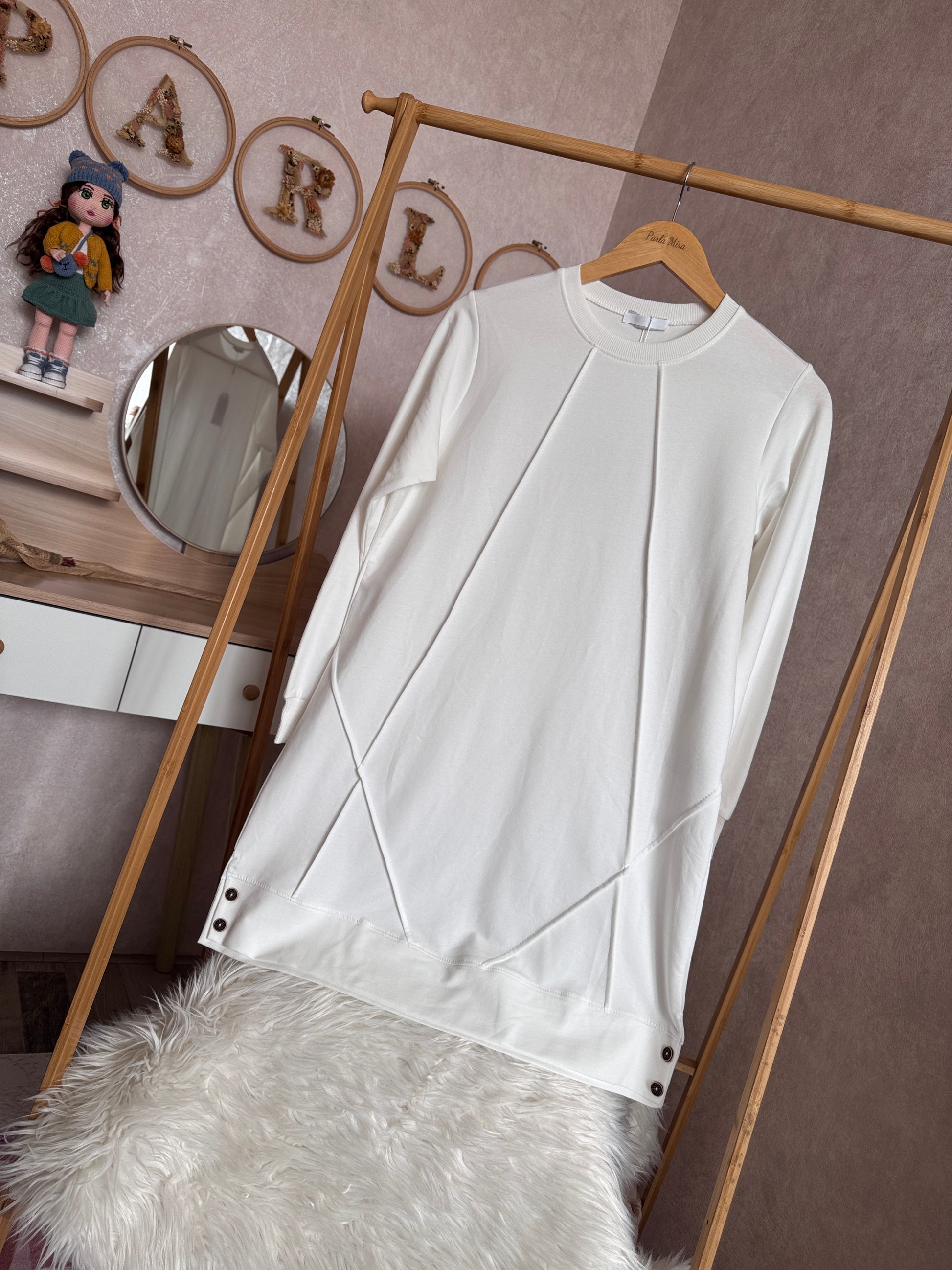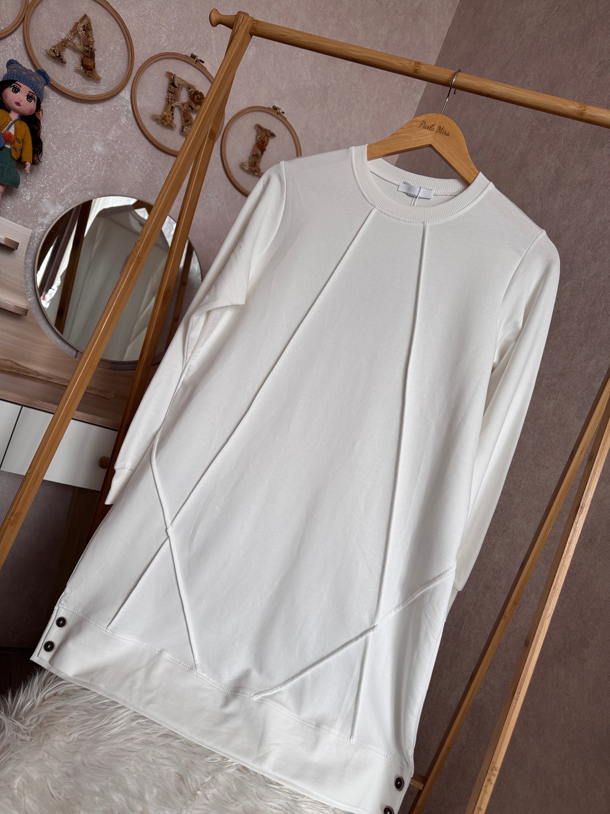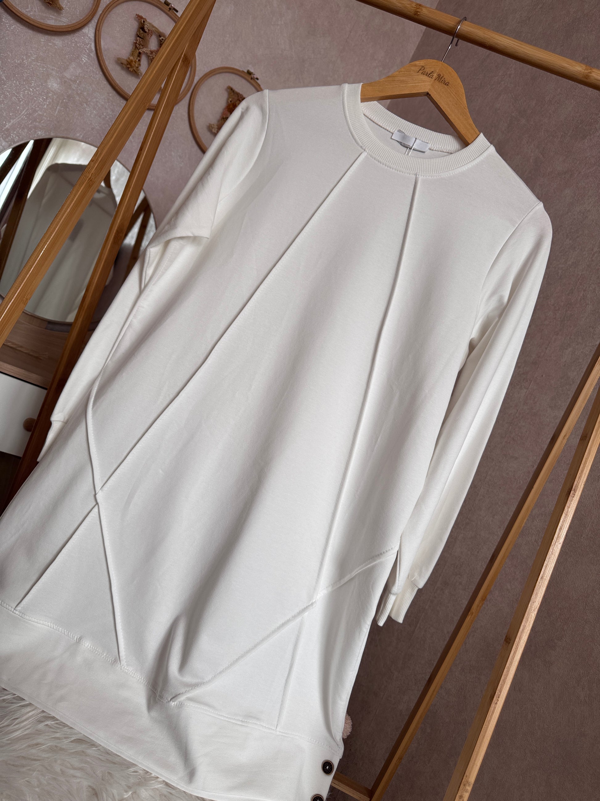 Düz tunik kısa düğme detaylı, beyaz