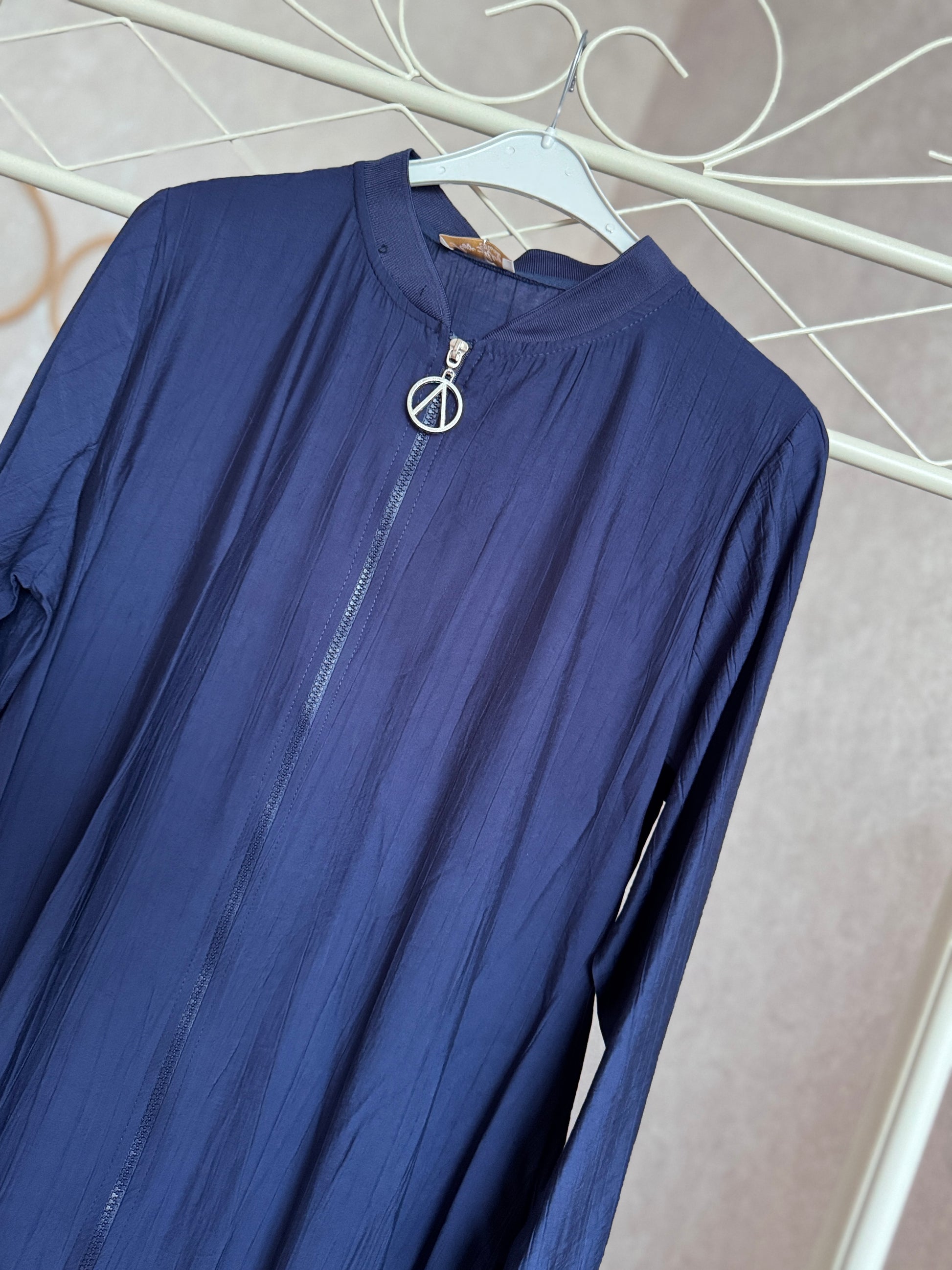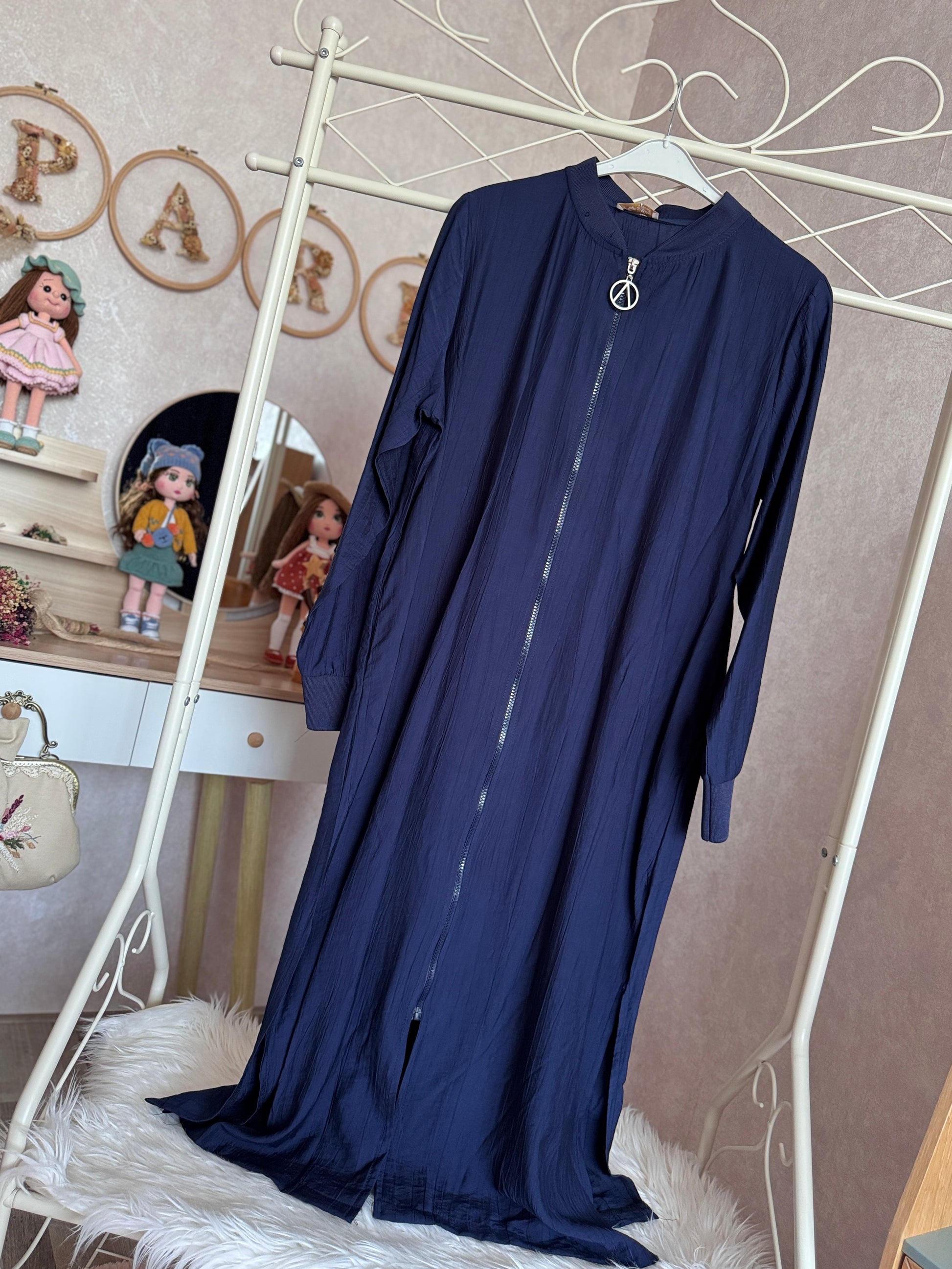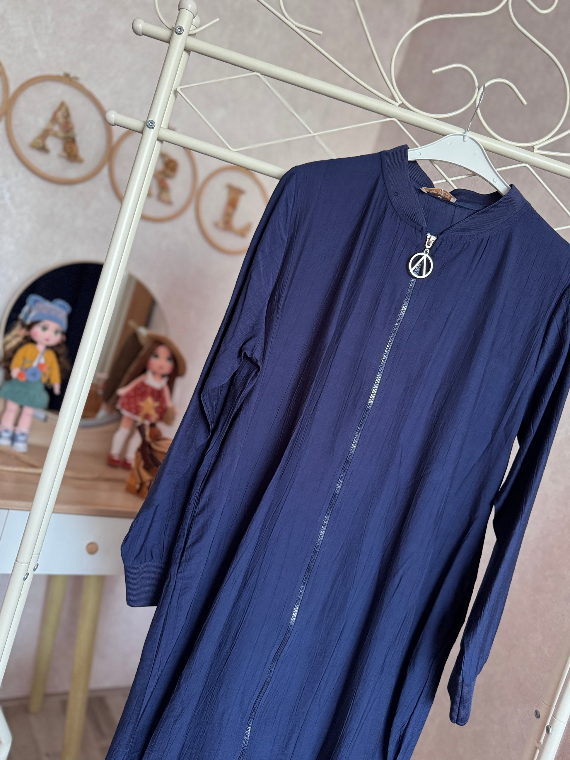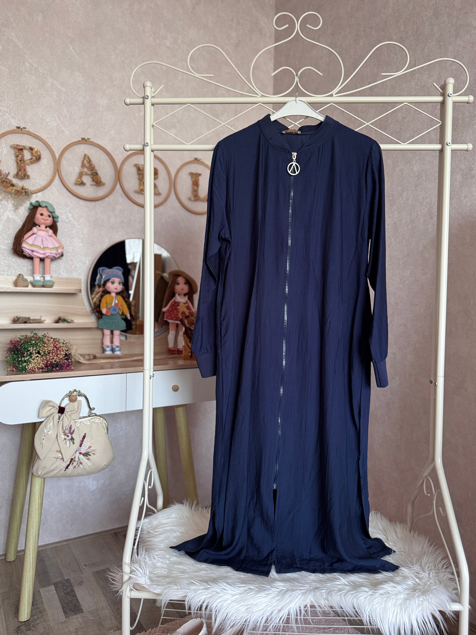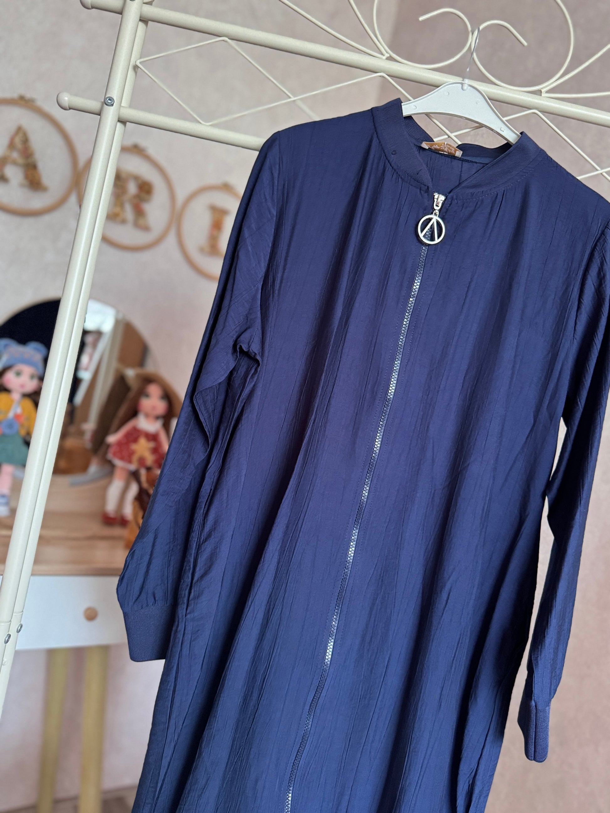 💙Önden boydan fermuarlı yazlık çilek kumaş giy-çık kap modeli, lacivert