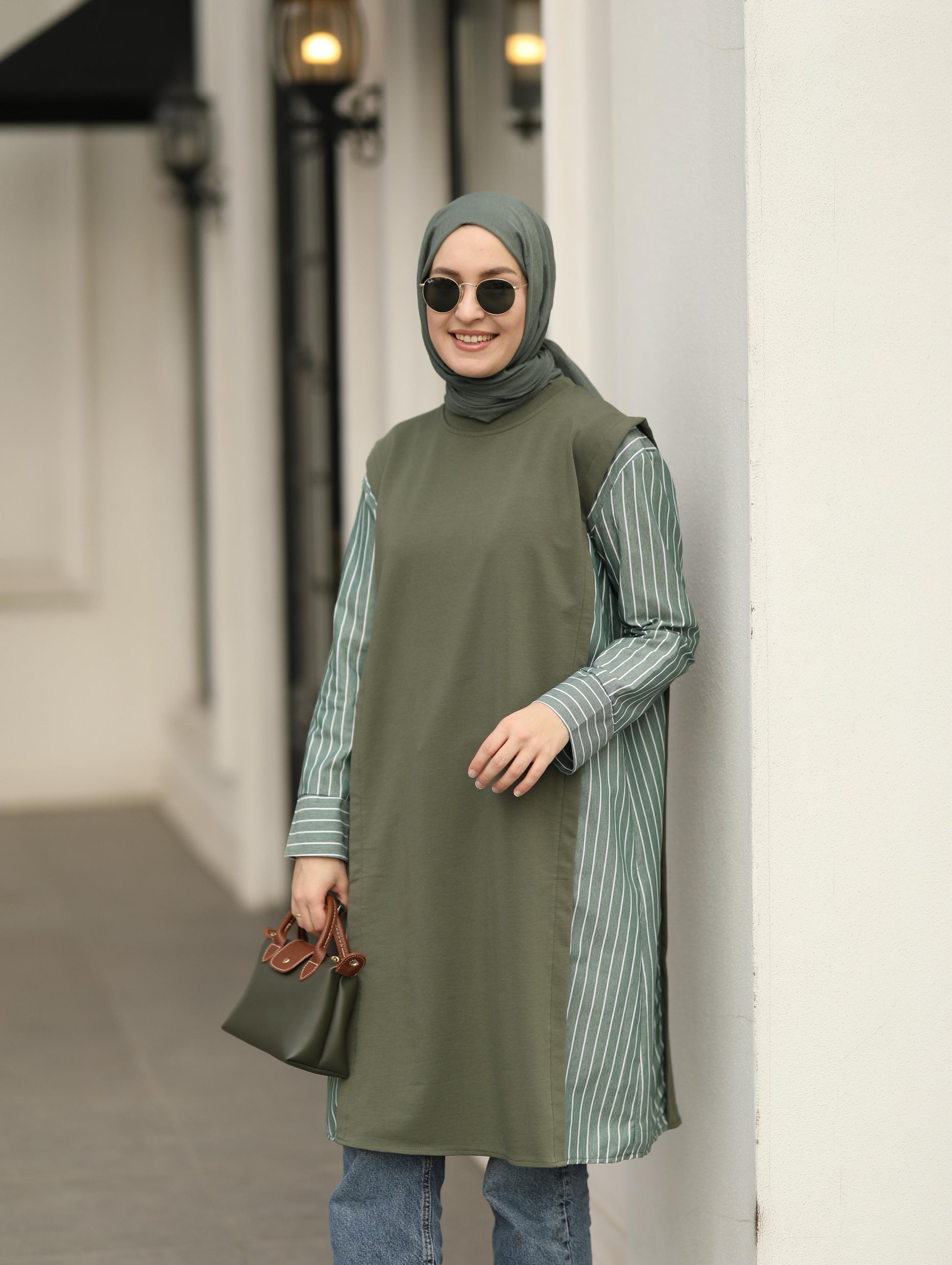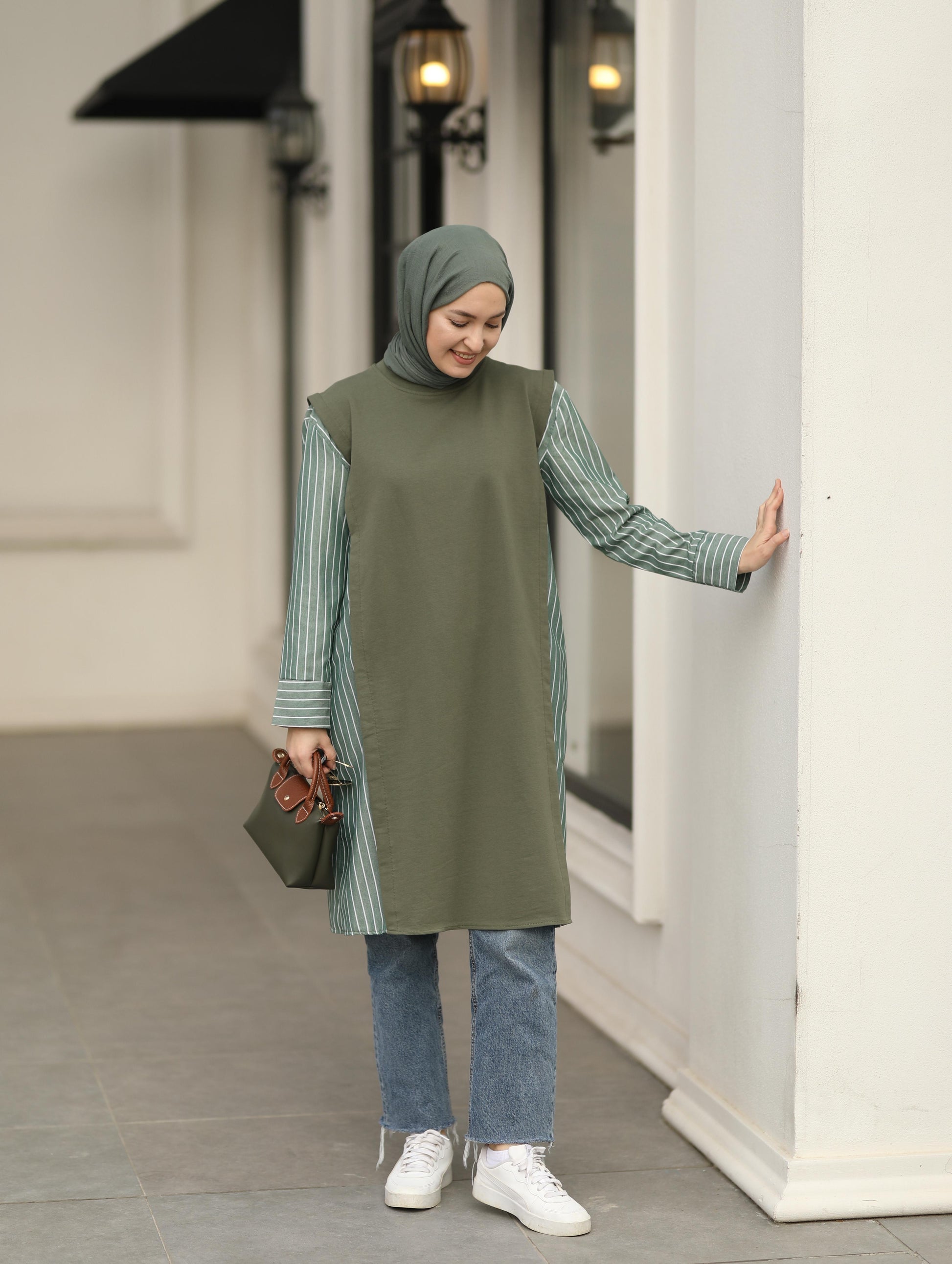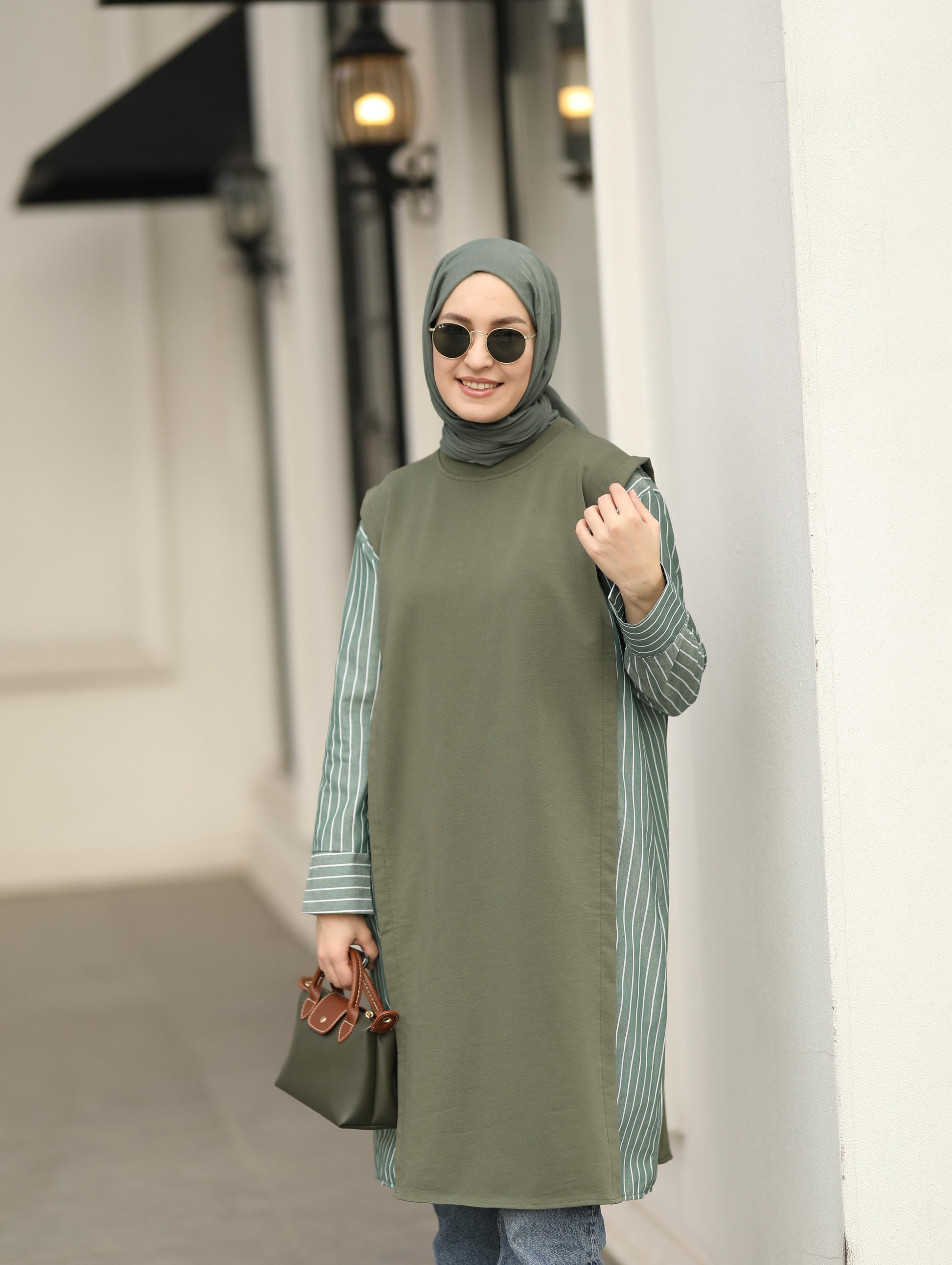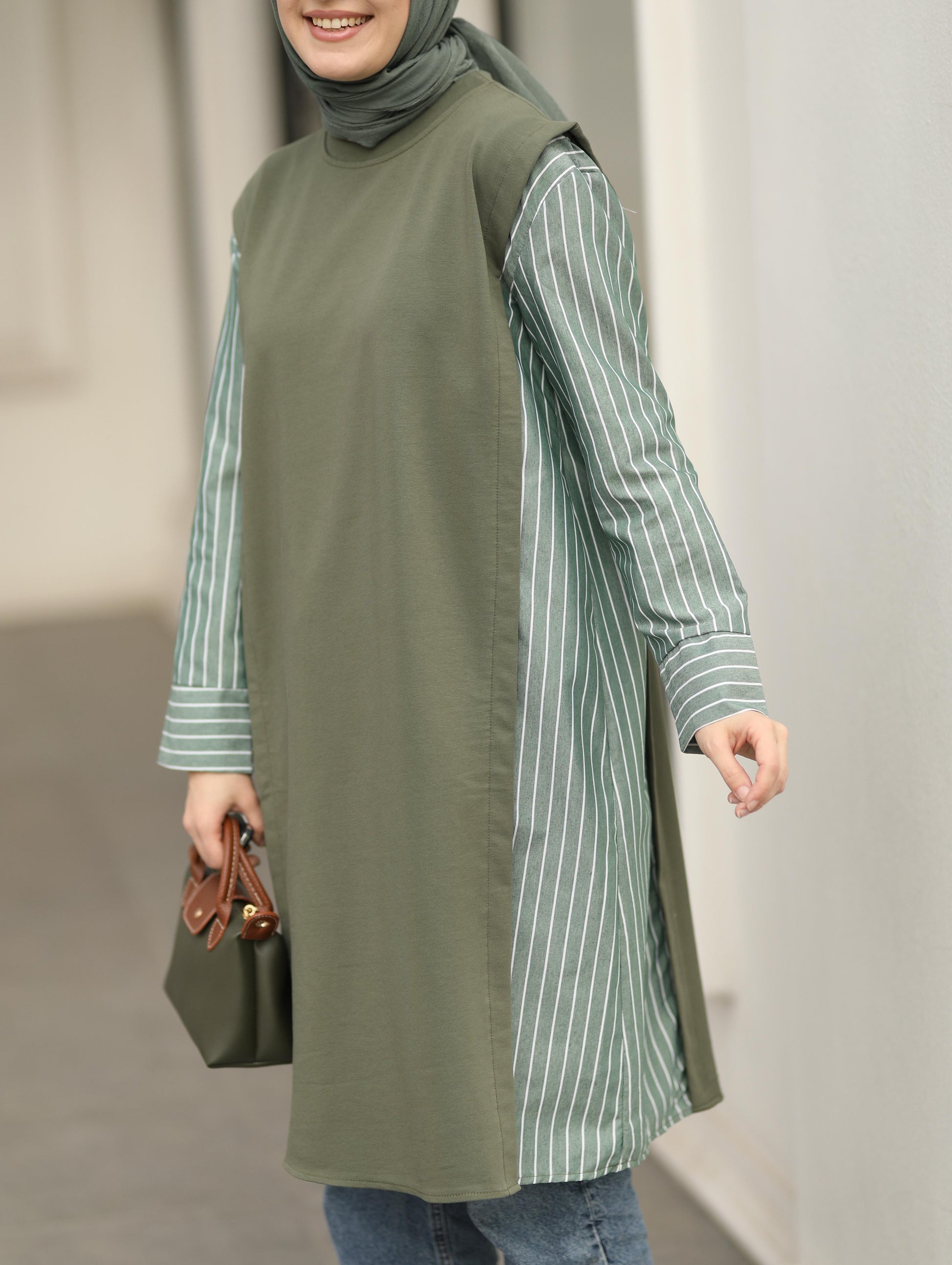 Gömlek detaylı uzun Sweat tunik, haki