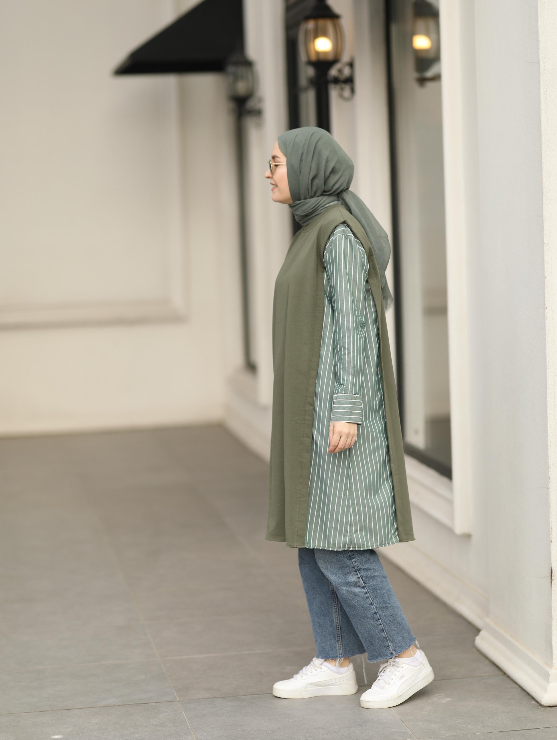 Yanlarında kullanılan ince çizgili gömlek kumaşı ile size özgü bir tarz oluşturan modelimiz günlük kullanımda en kurtarıcı parçalarınızdan olacak.