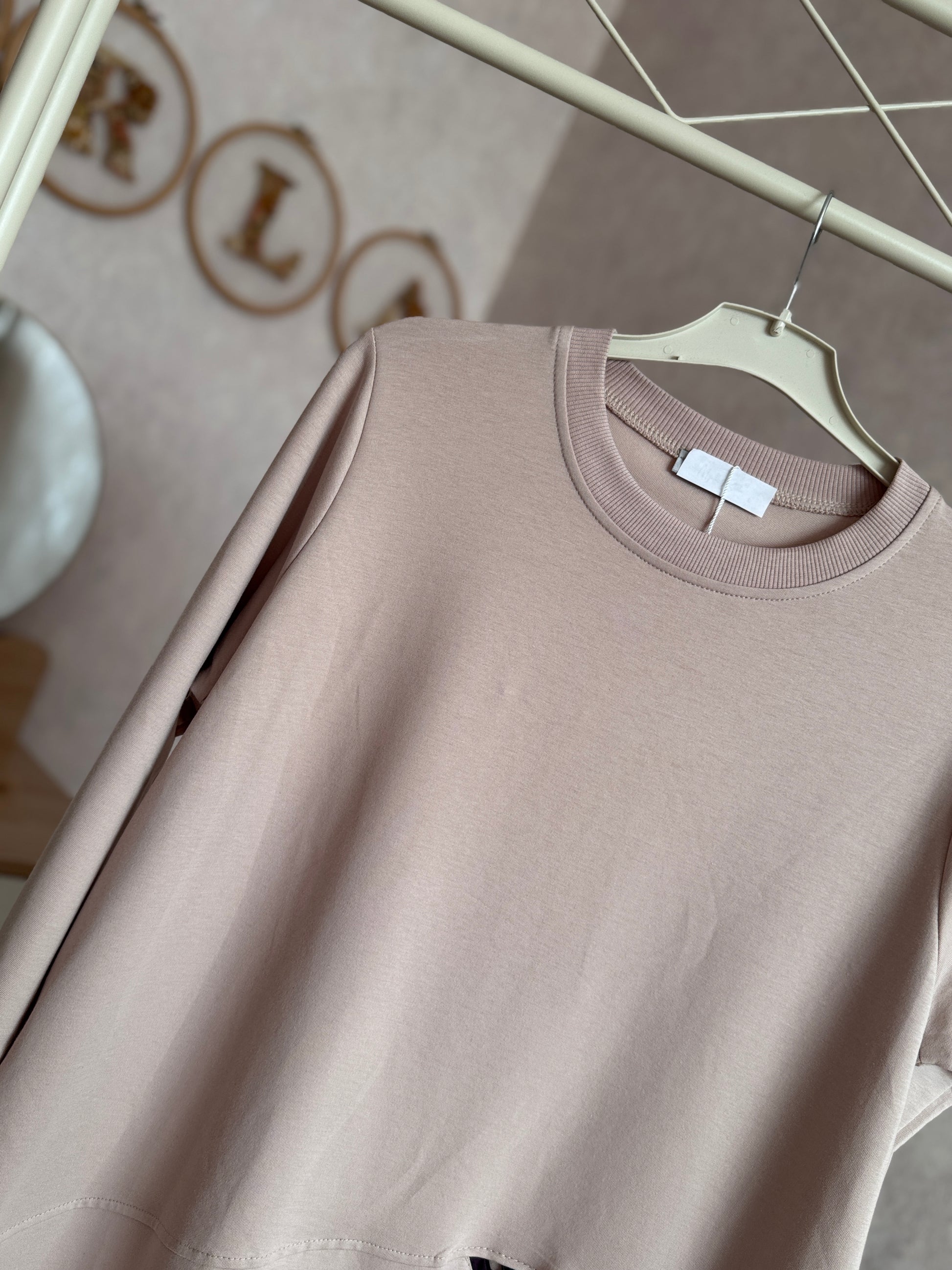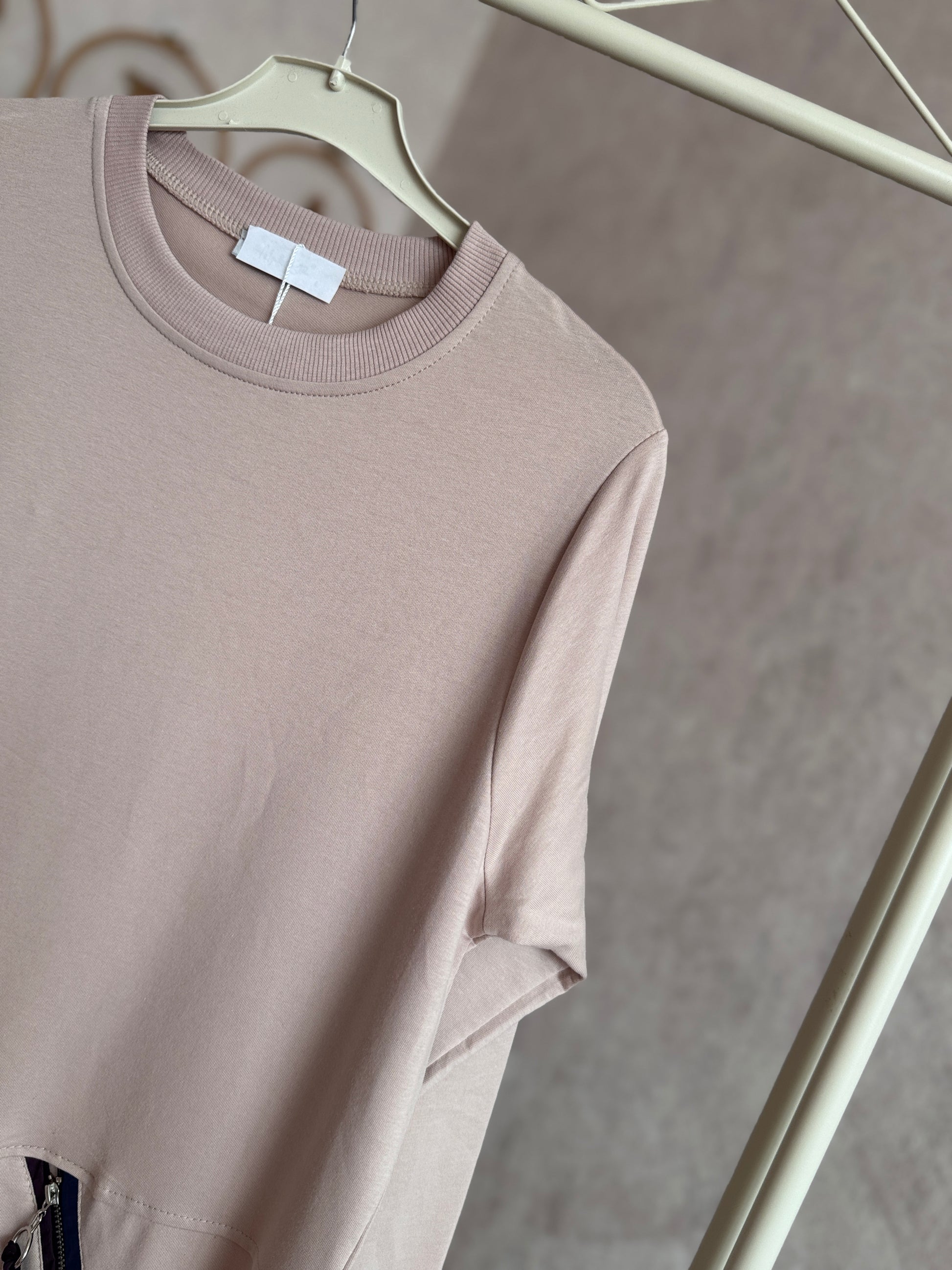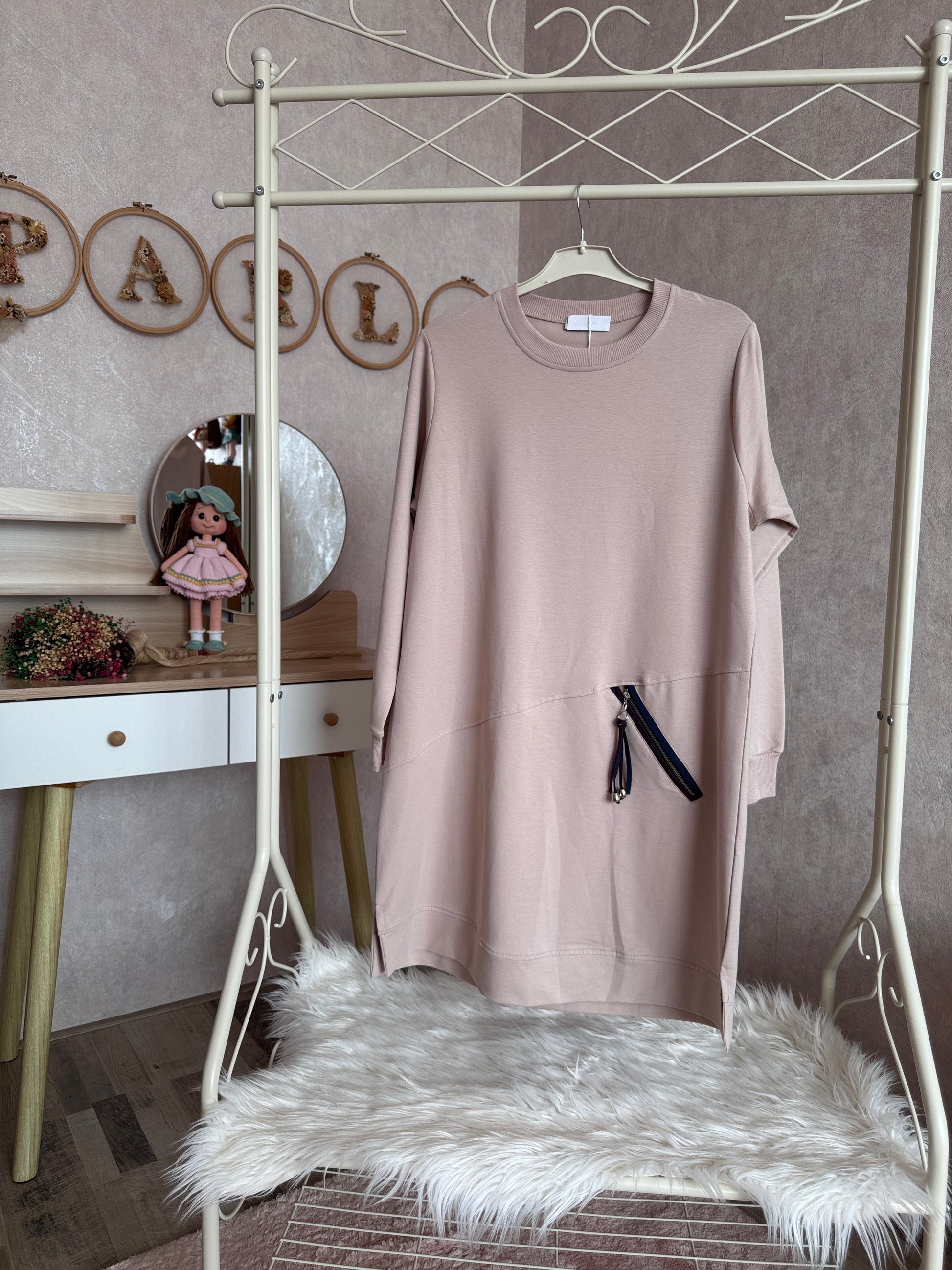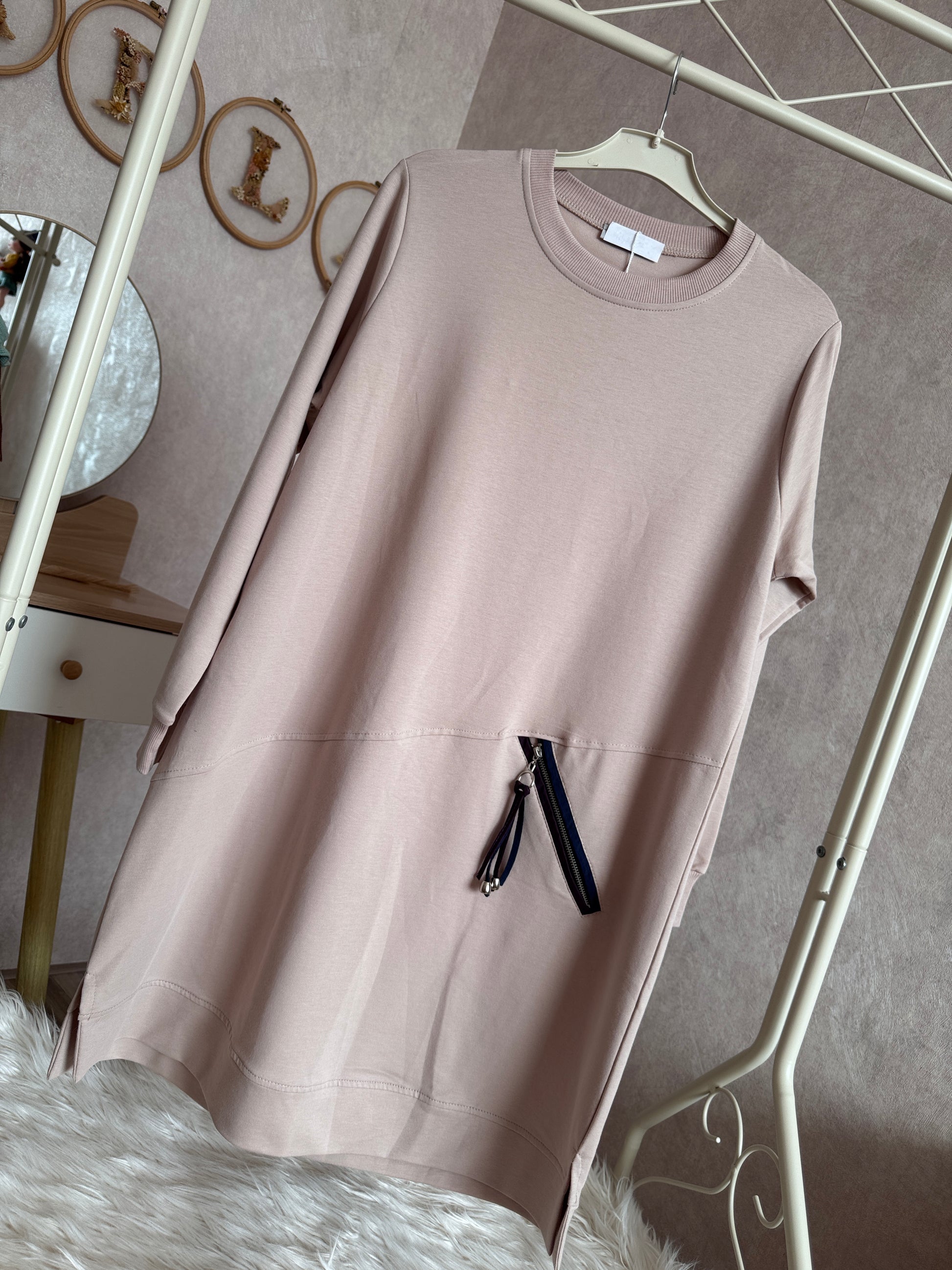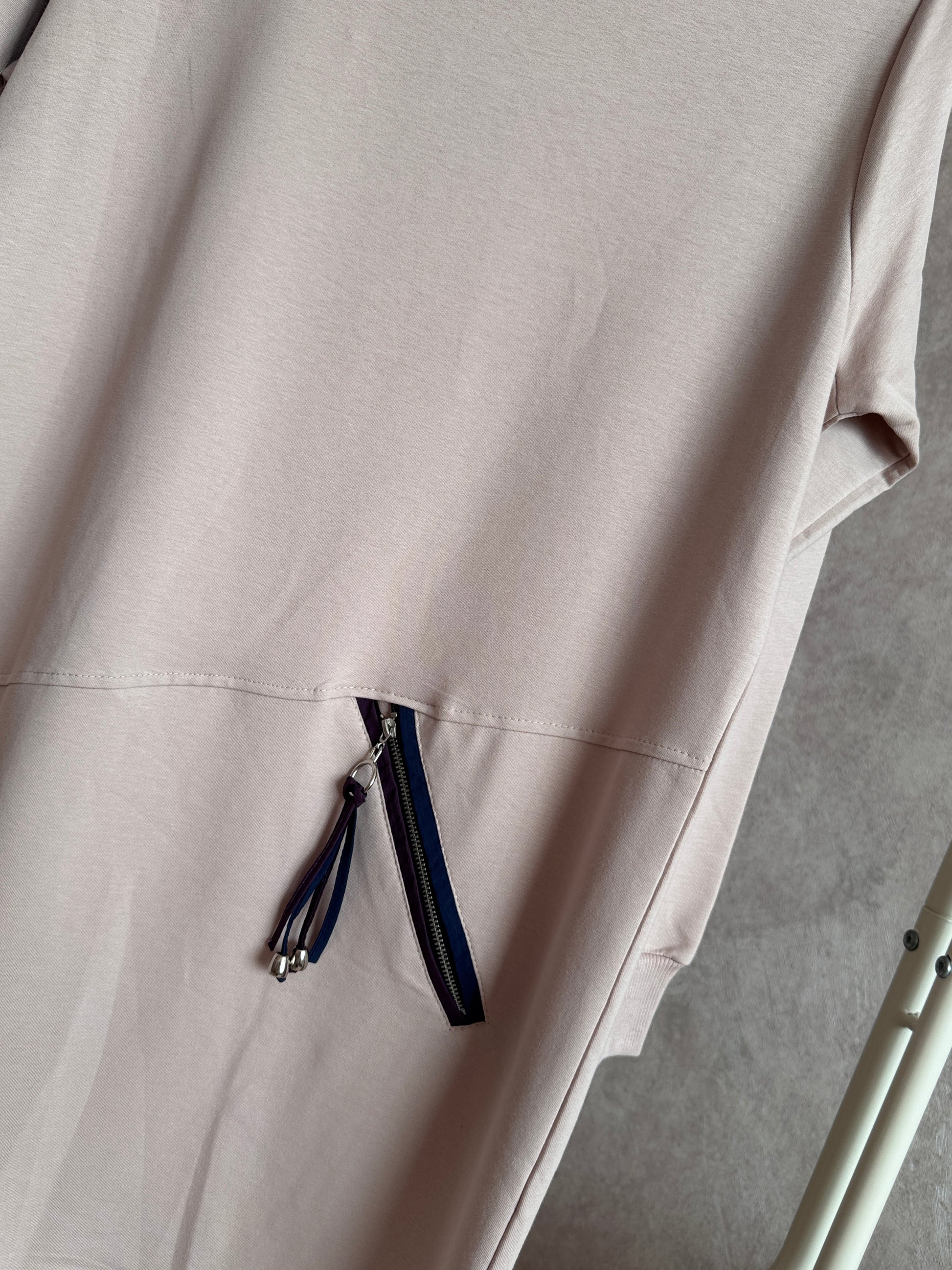 İki iplik penye tunik, alttan fermuar detaylı, bej
