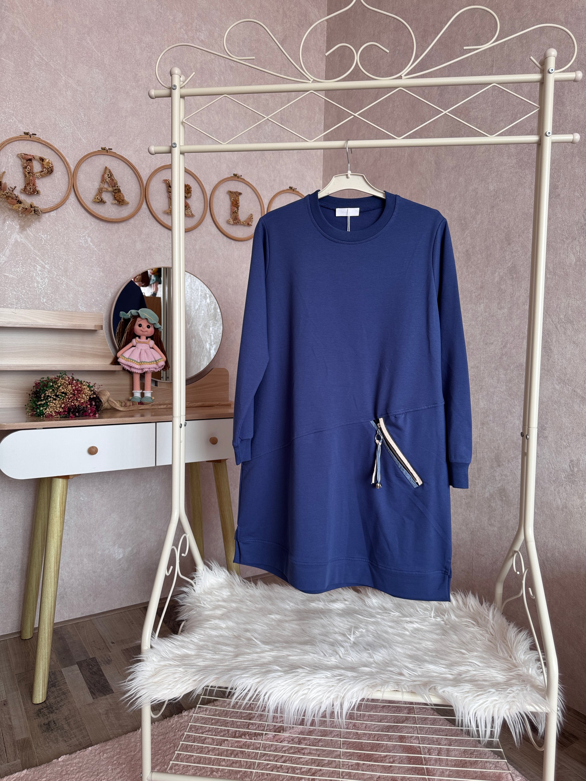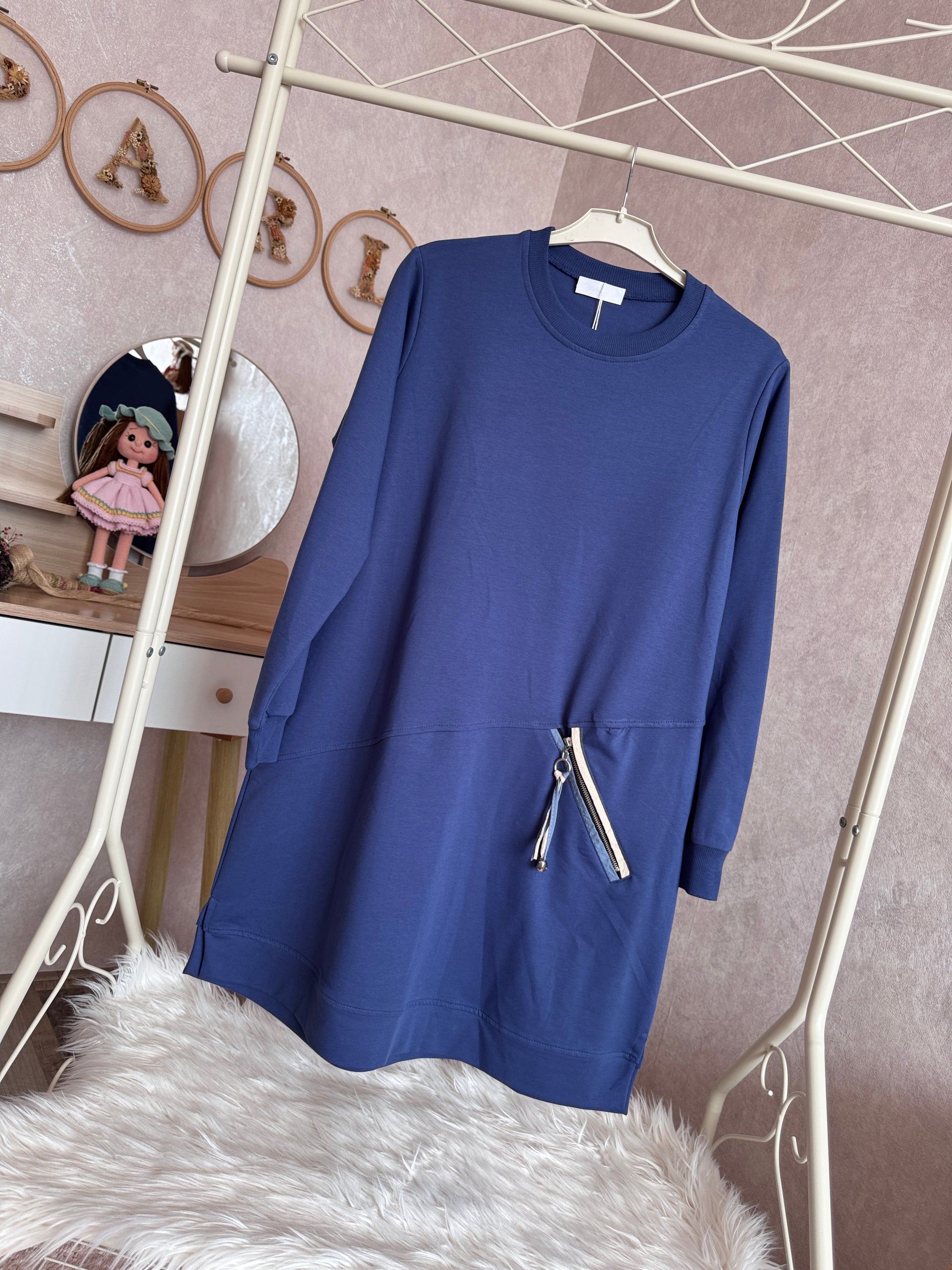 İki iplik penye tunik, alttan fermuar detaylı, indigo