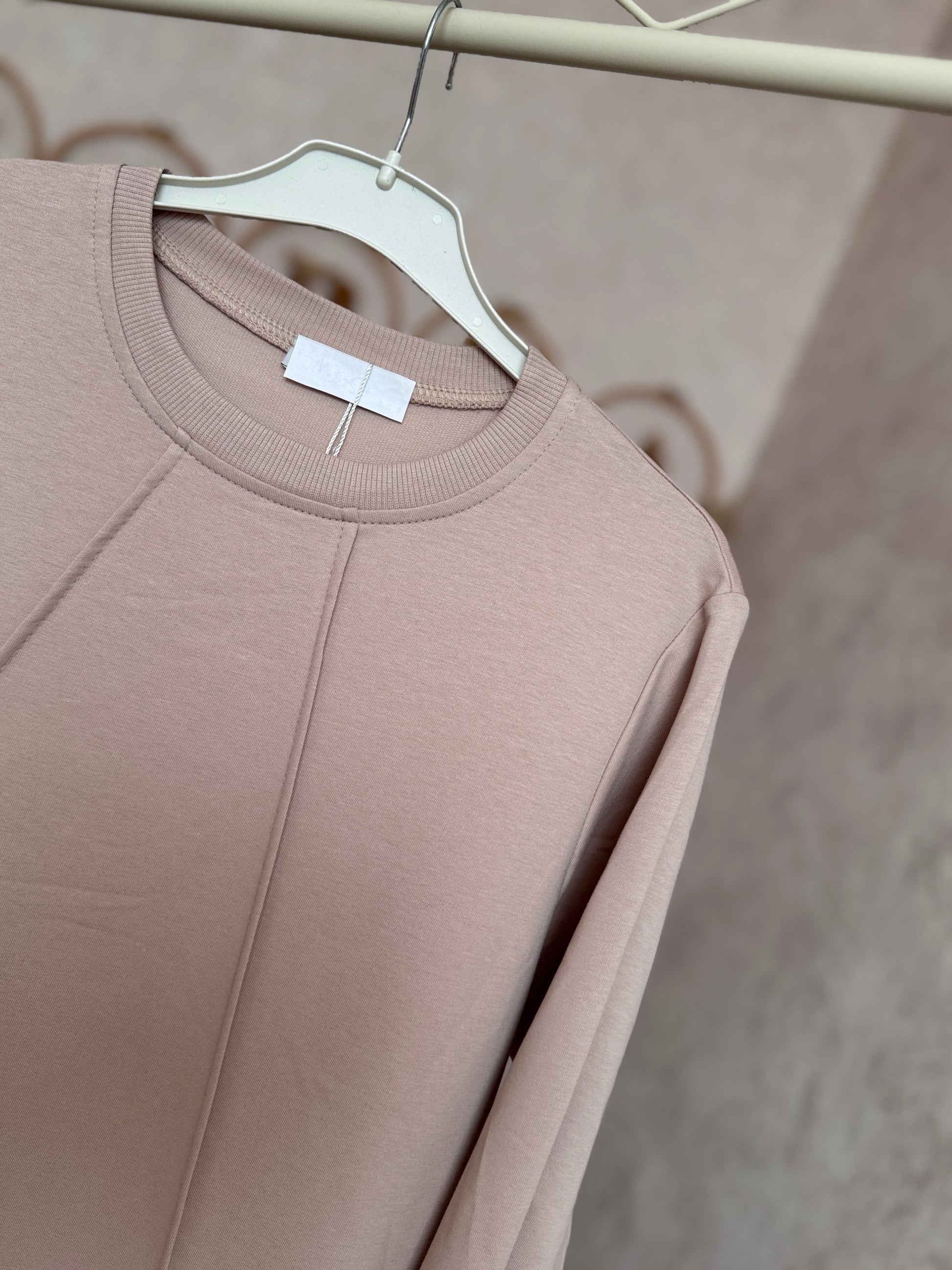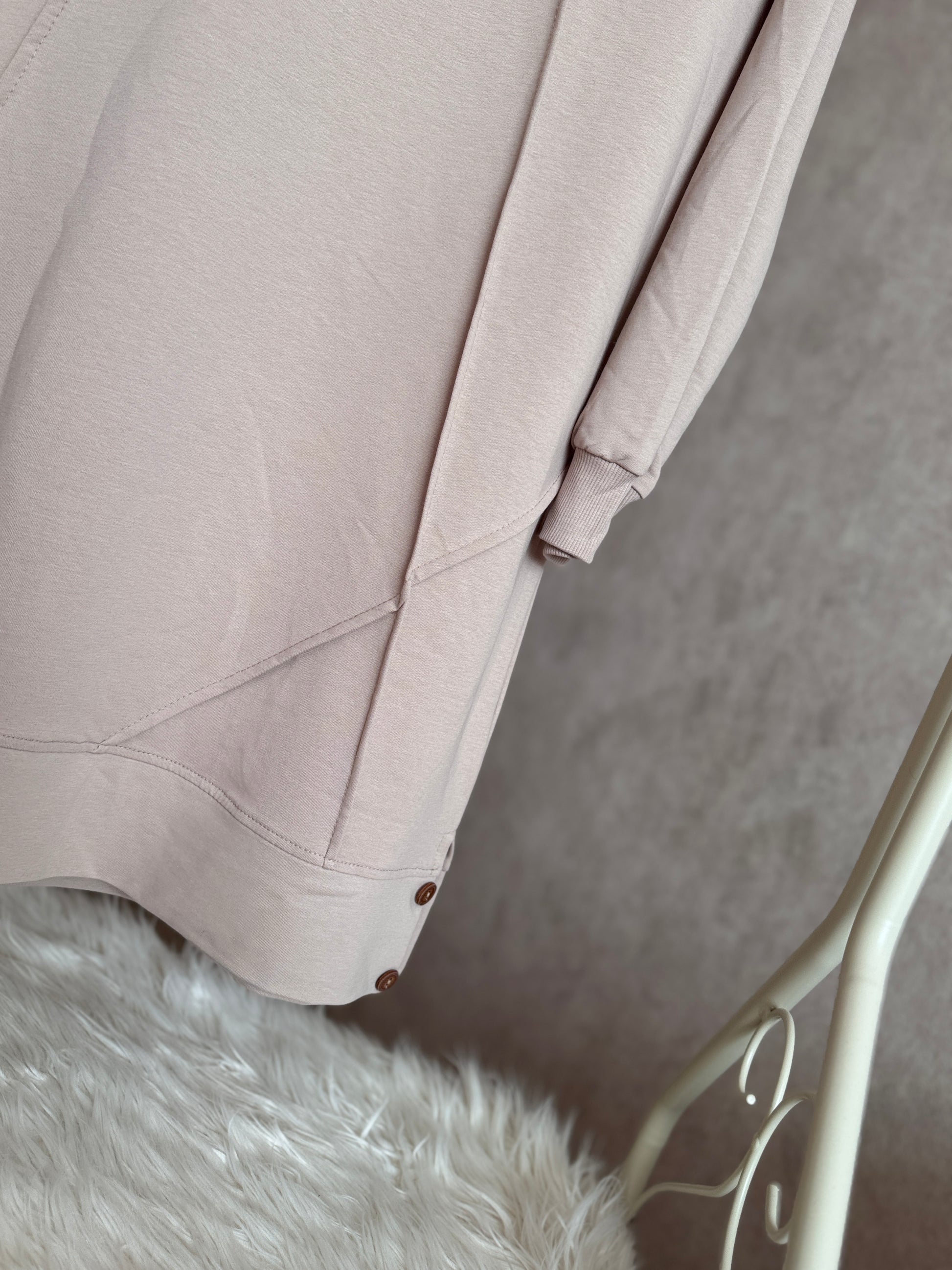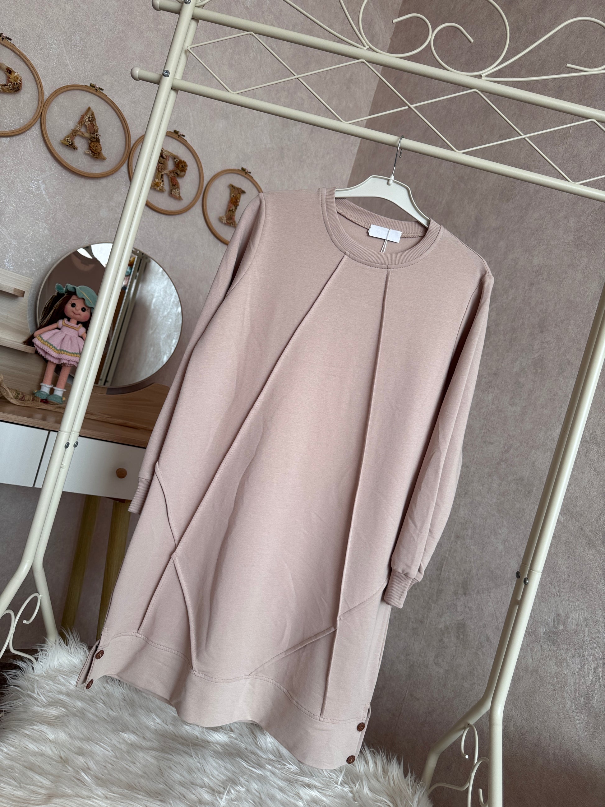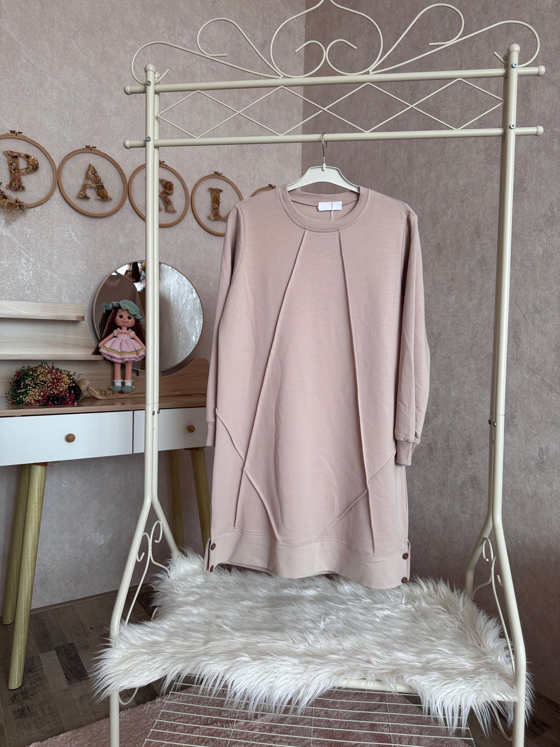İki iplik penye tunik, dikiş ve düğme detaylı, bej