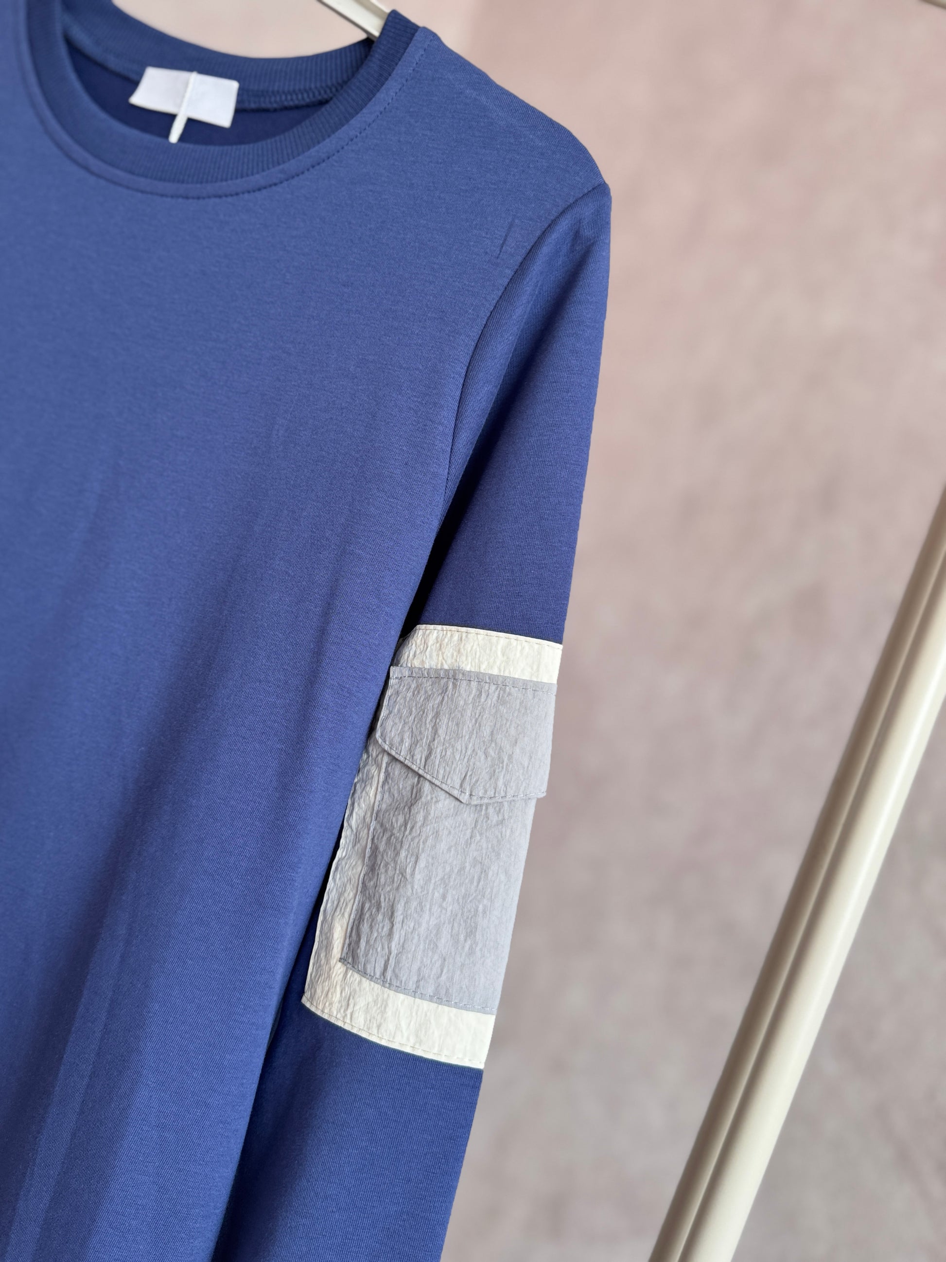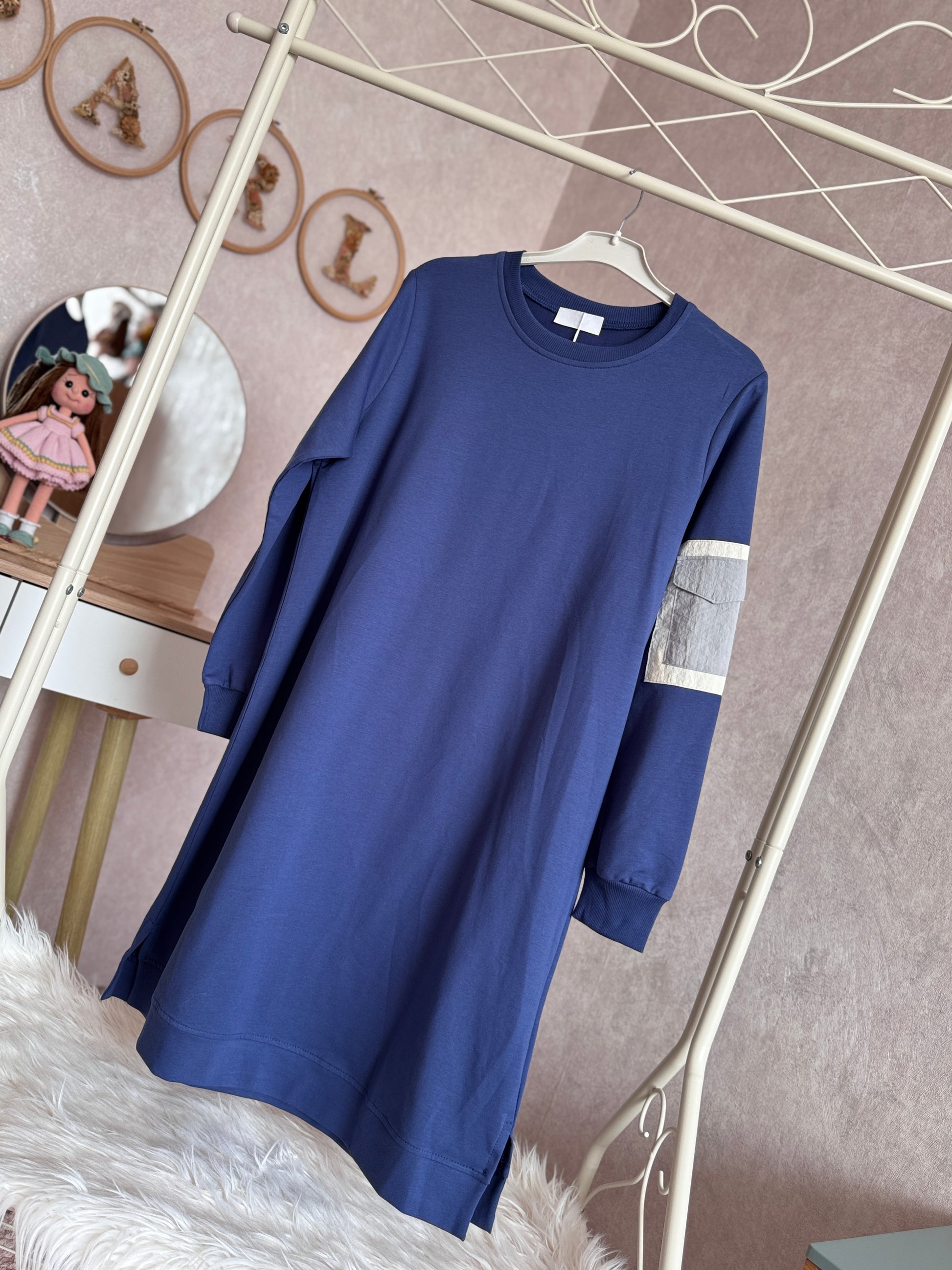 İki iplik penye tunik, kolları cep detaylı, indigo