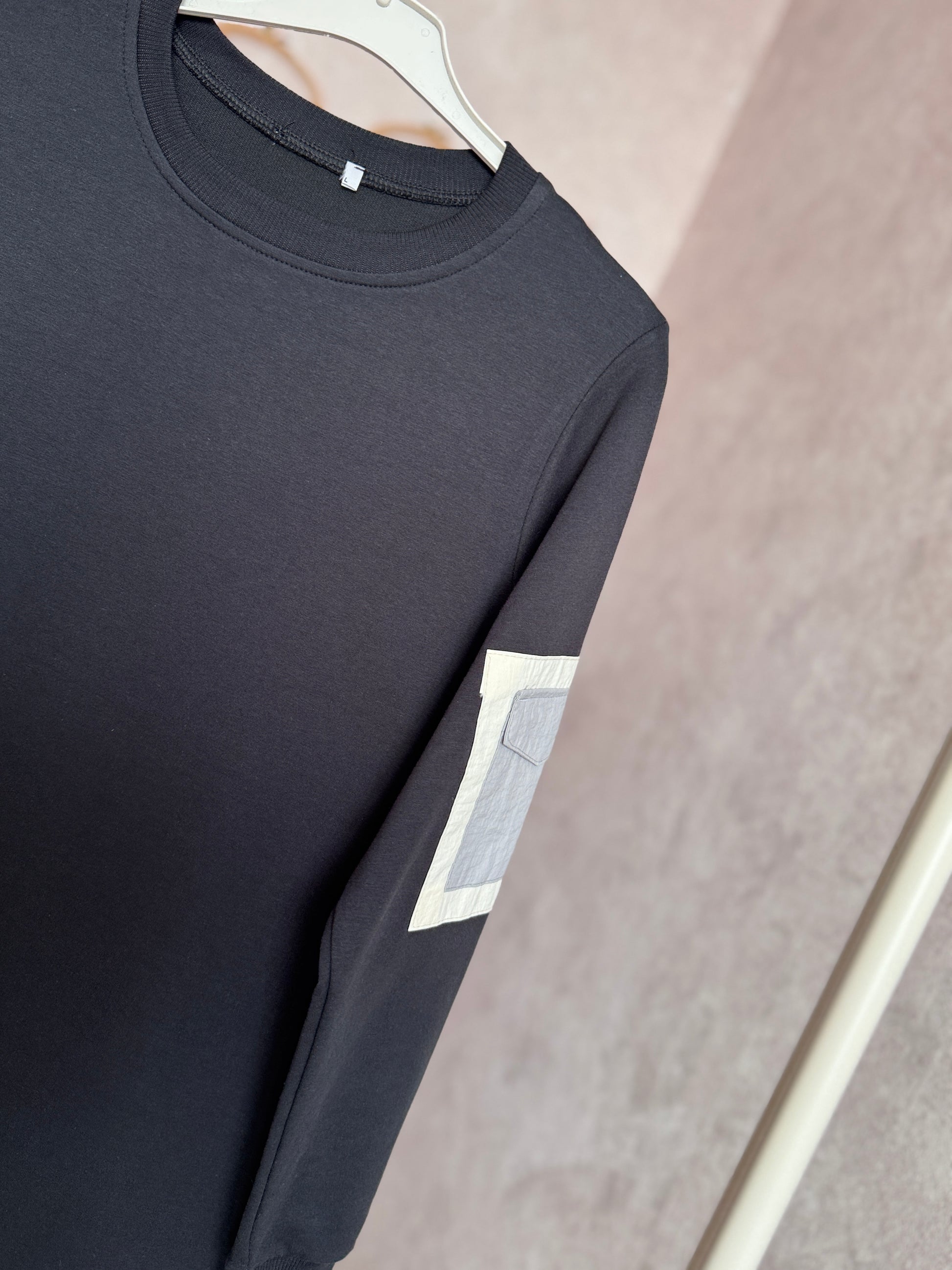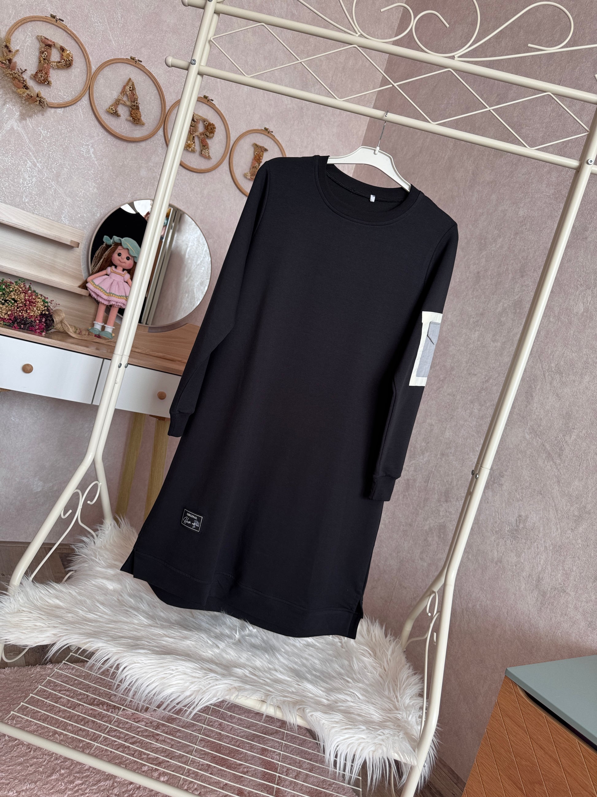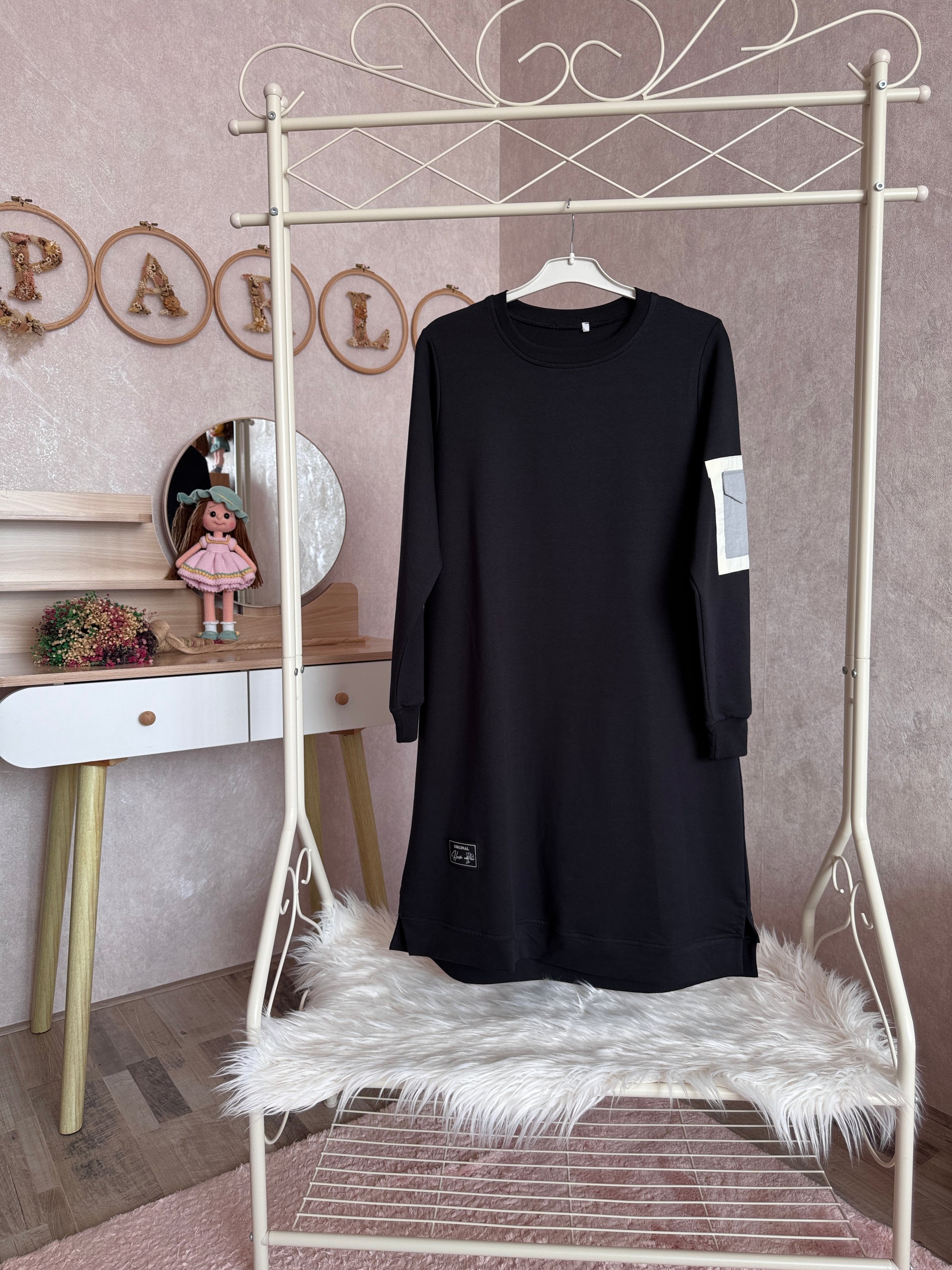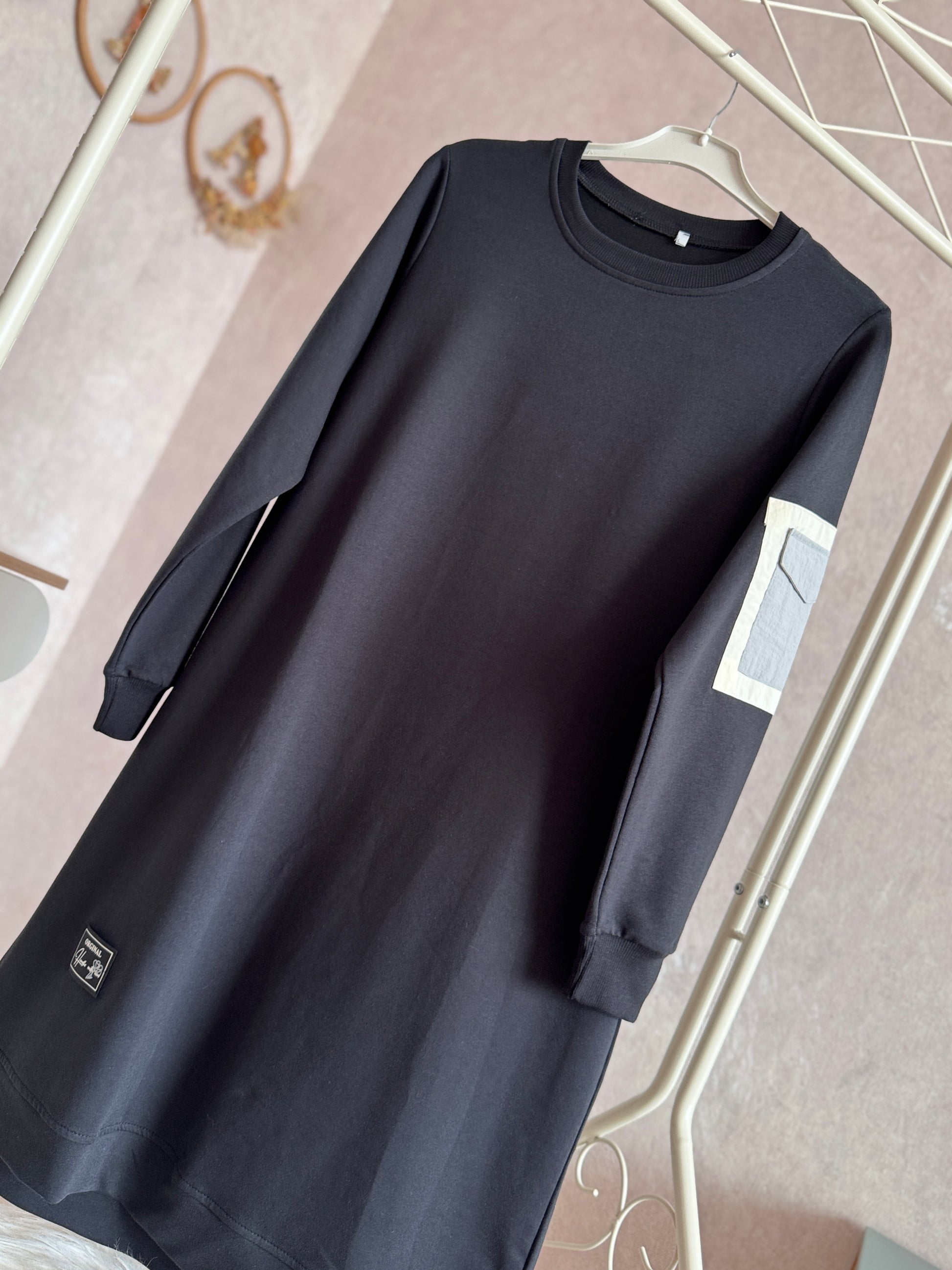 İki iplik penye tunik, kolları cep detaylı, siyah