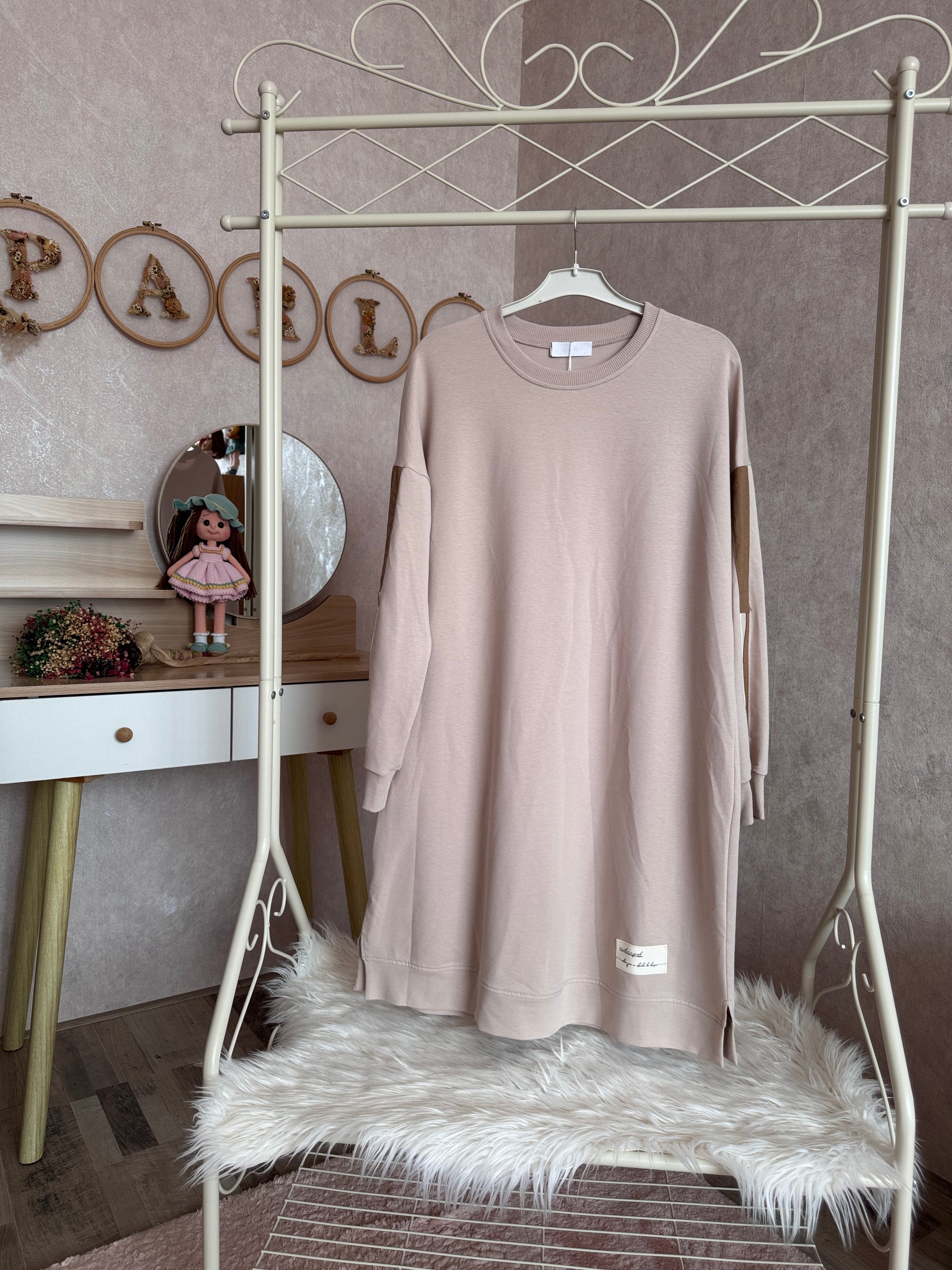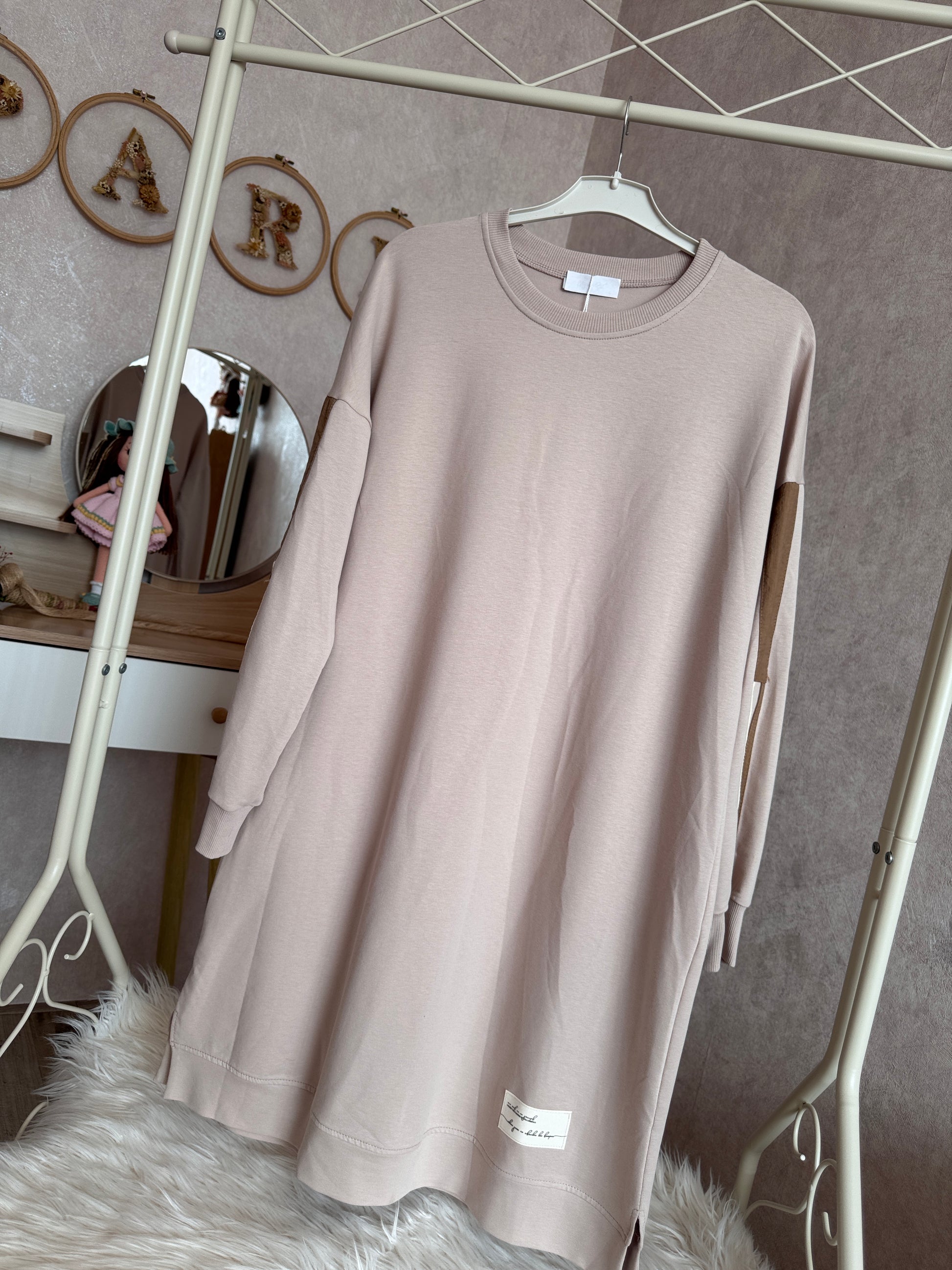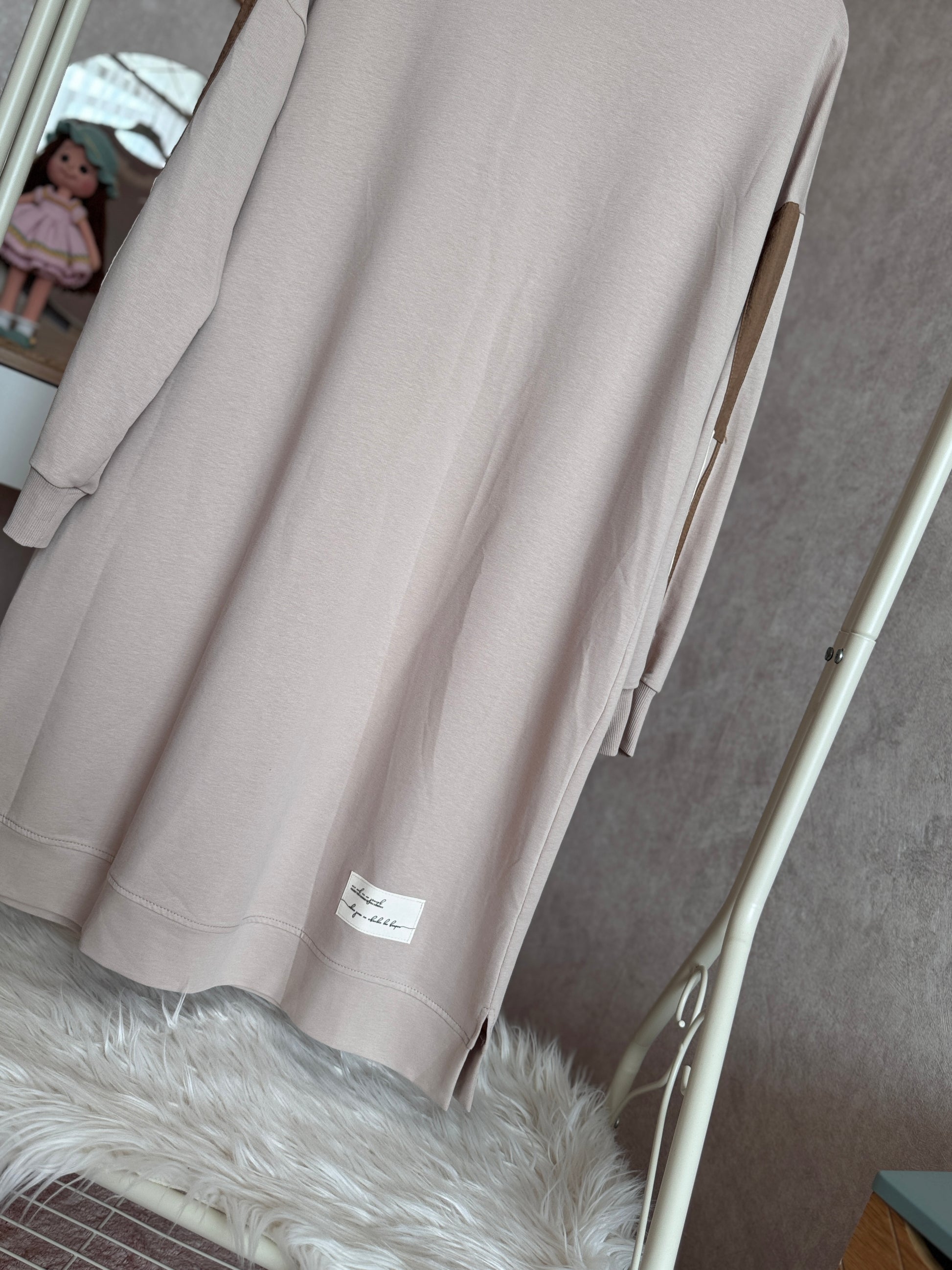 İki iplik penye tunik, kolları paraşüt detaylı, bej