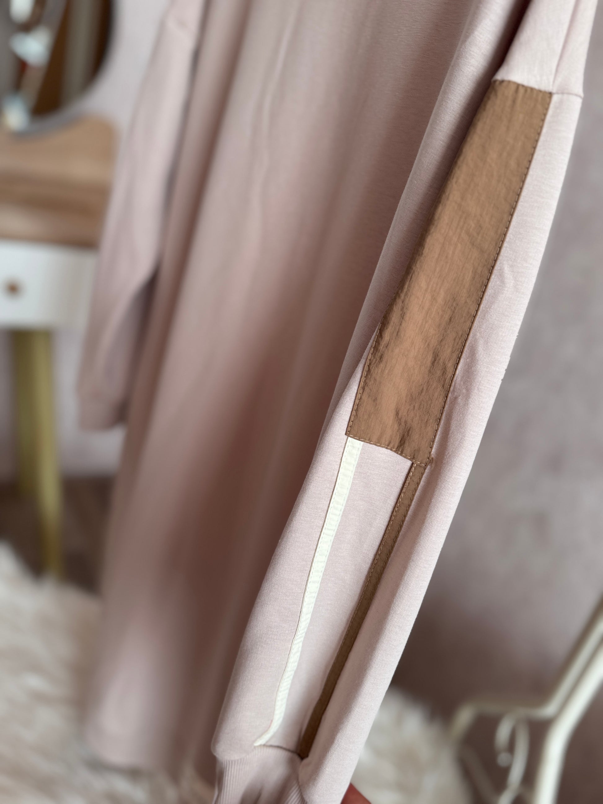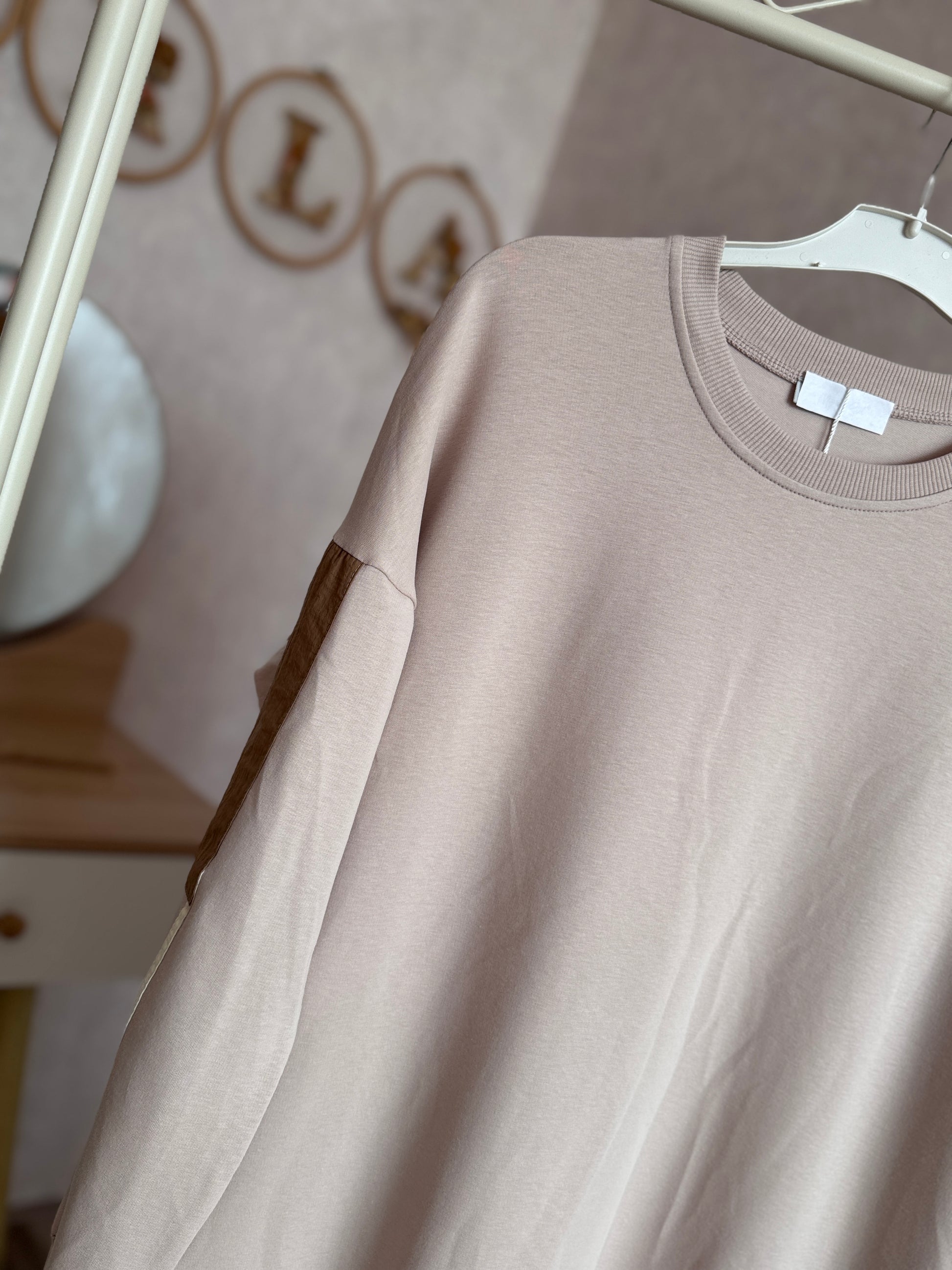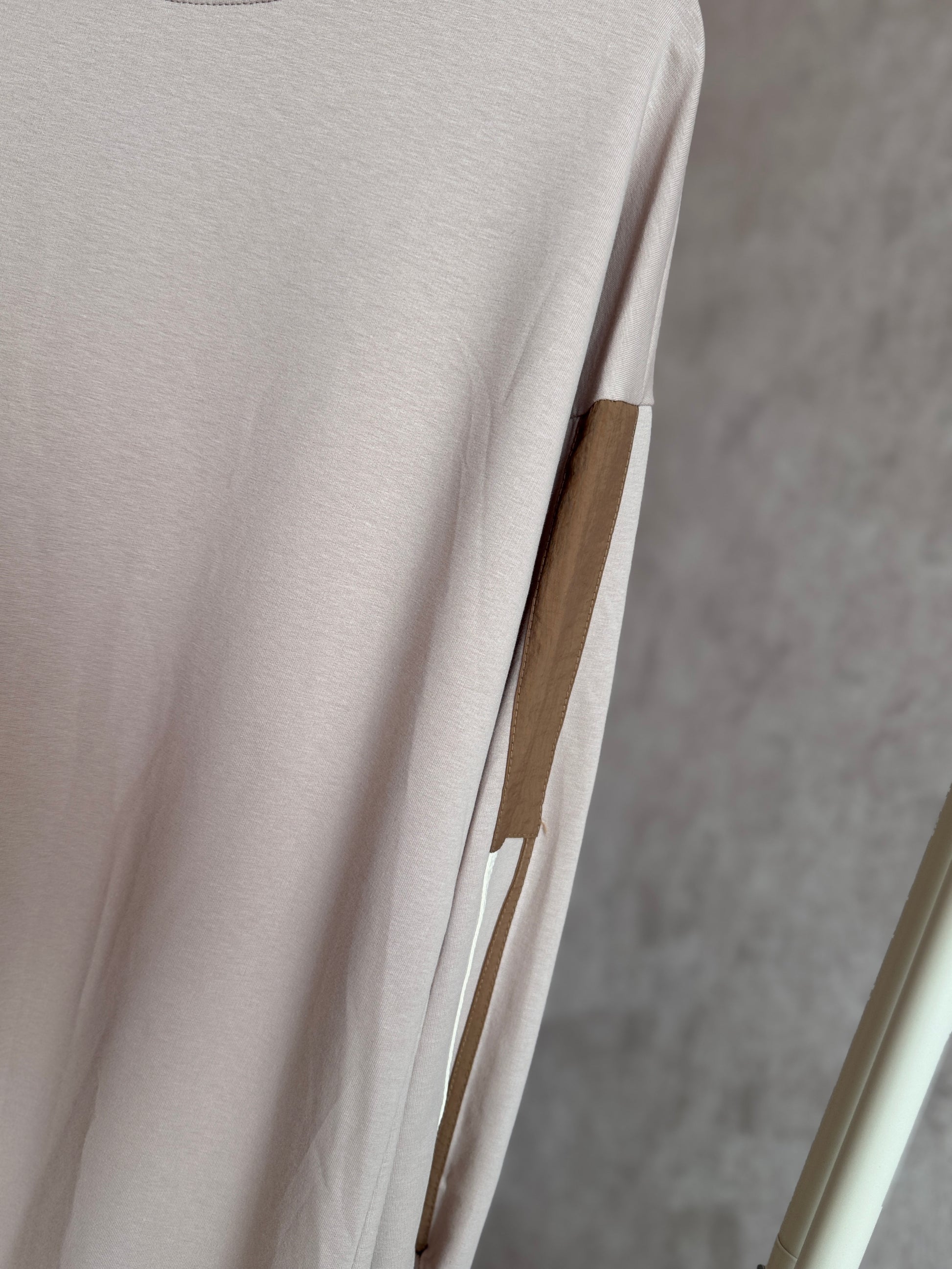 İki iplik penye tunik, kolları paraşüt detaylı, bej