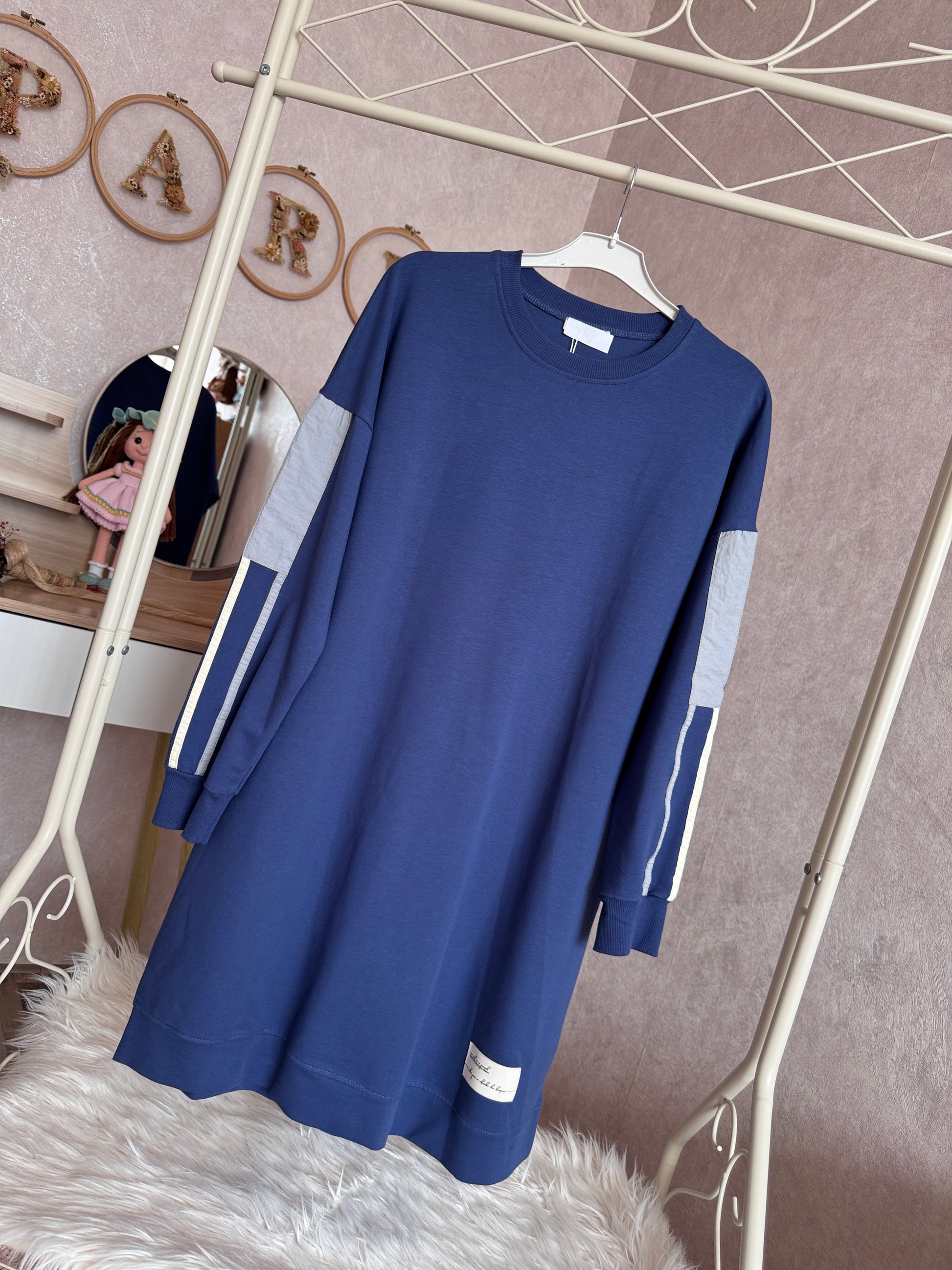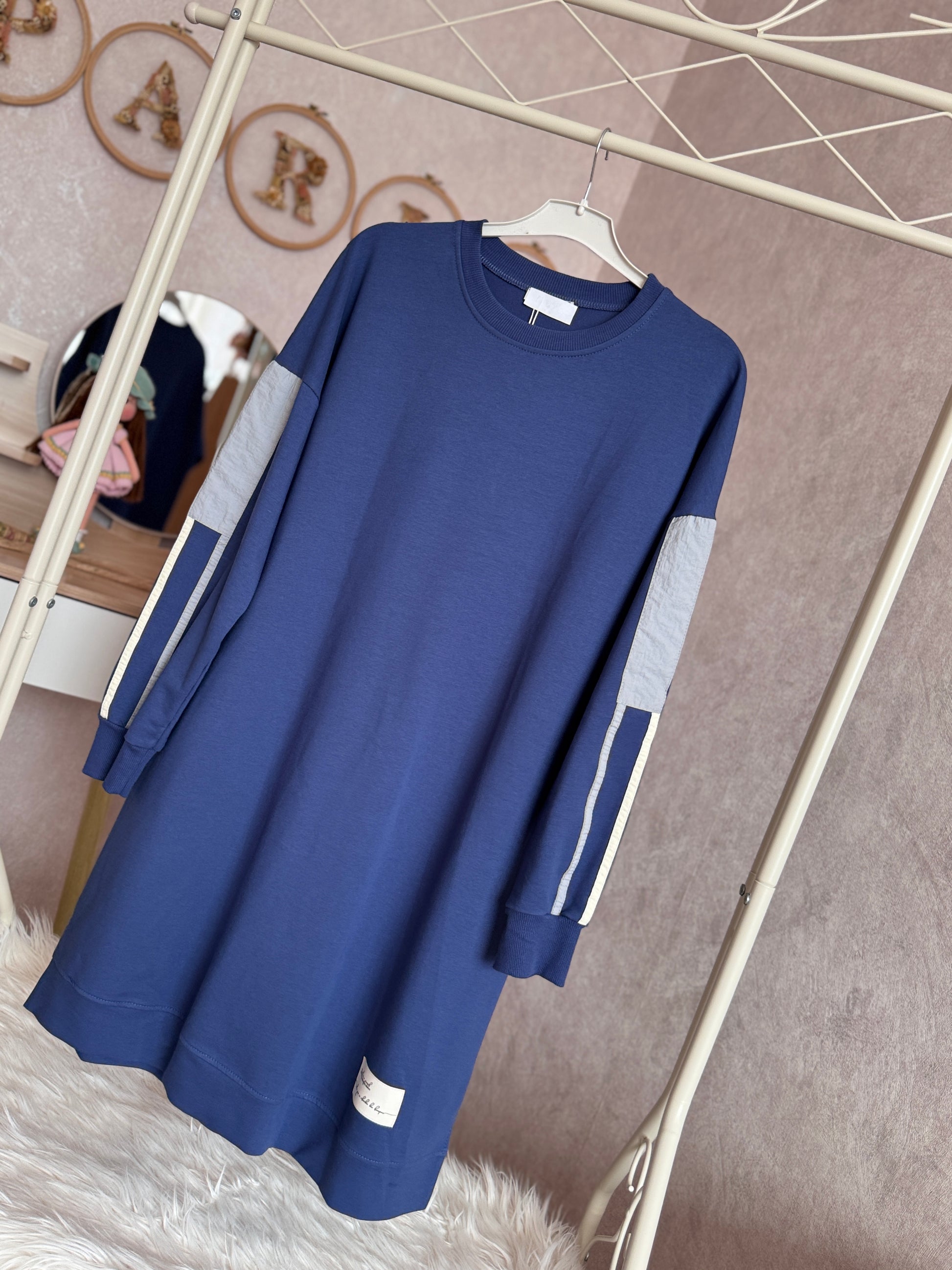 İki iplik penye tunik, kolları paraşüt detaylı, indigo