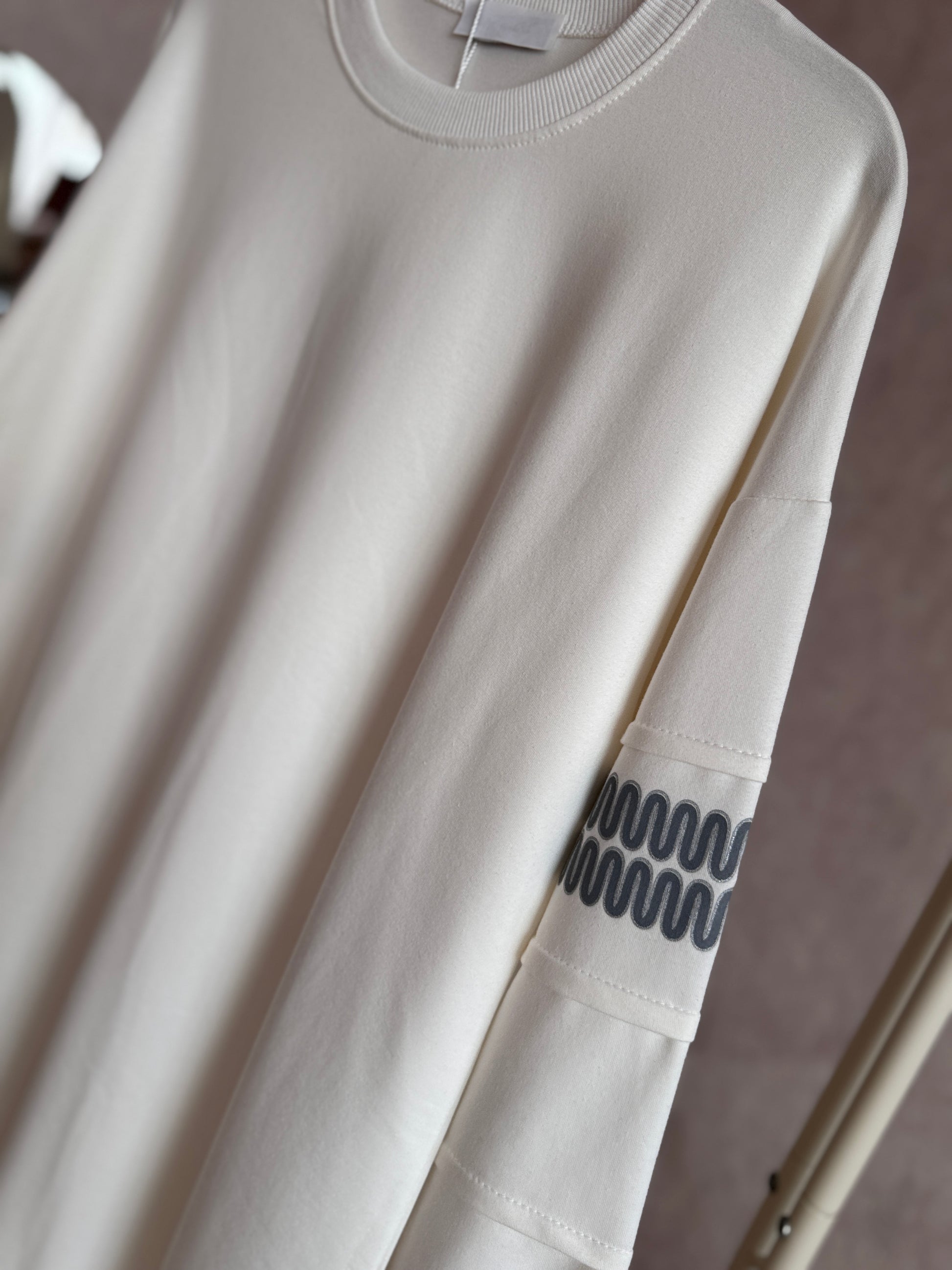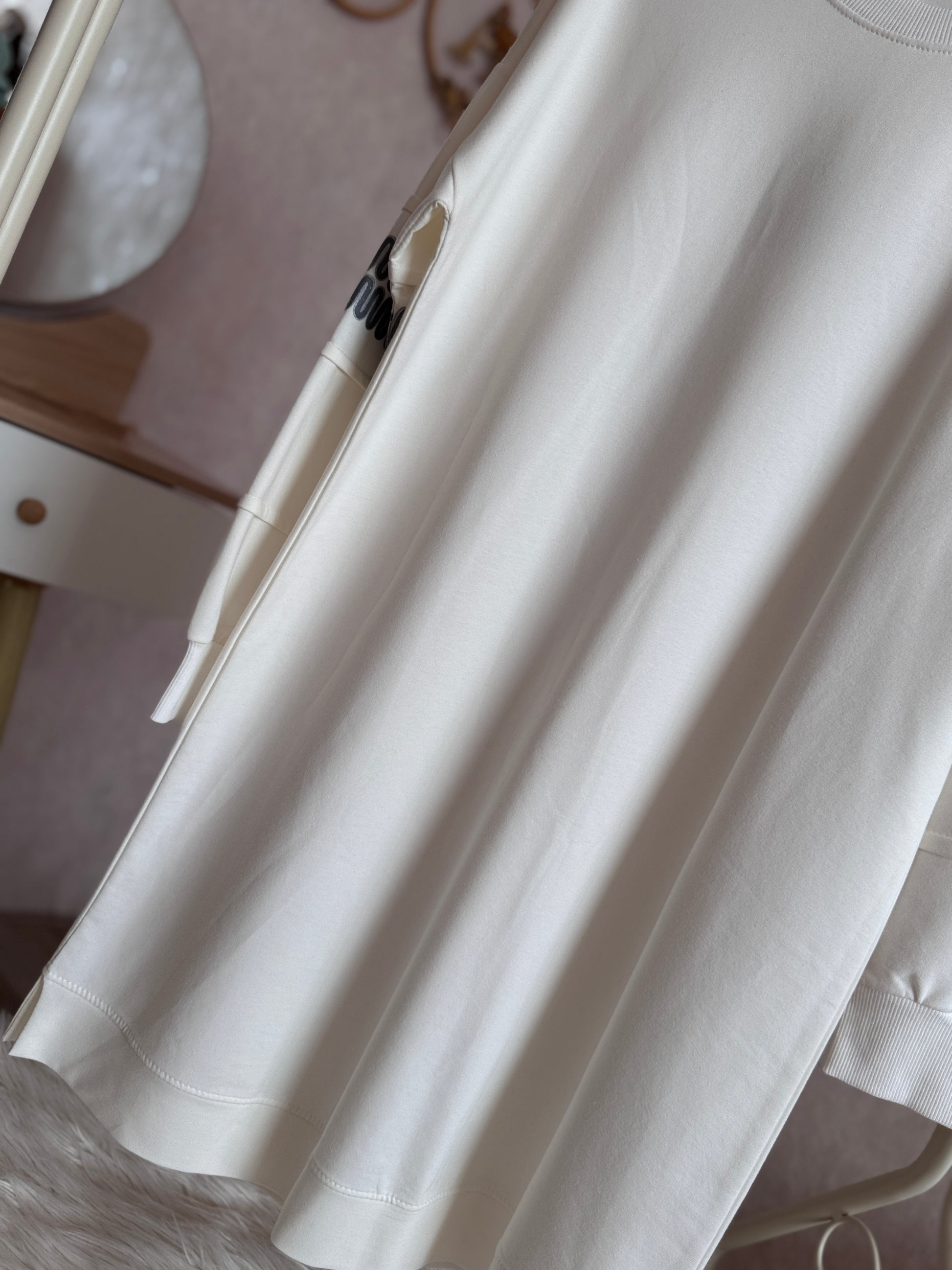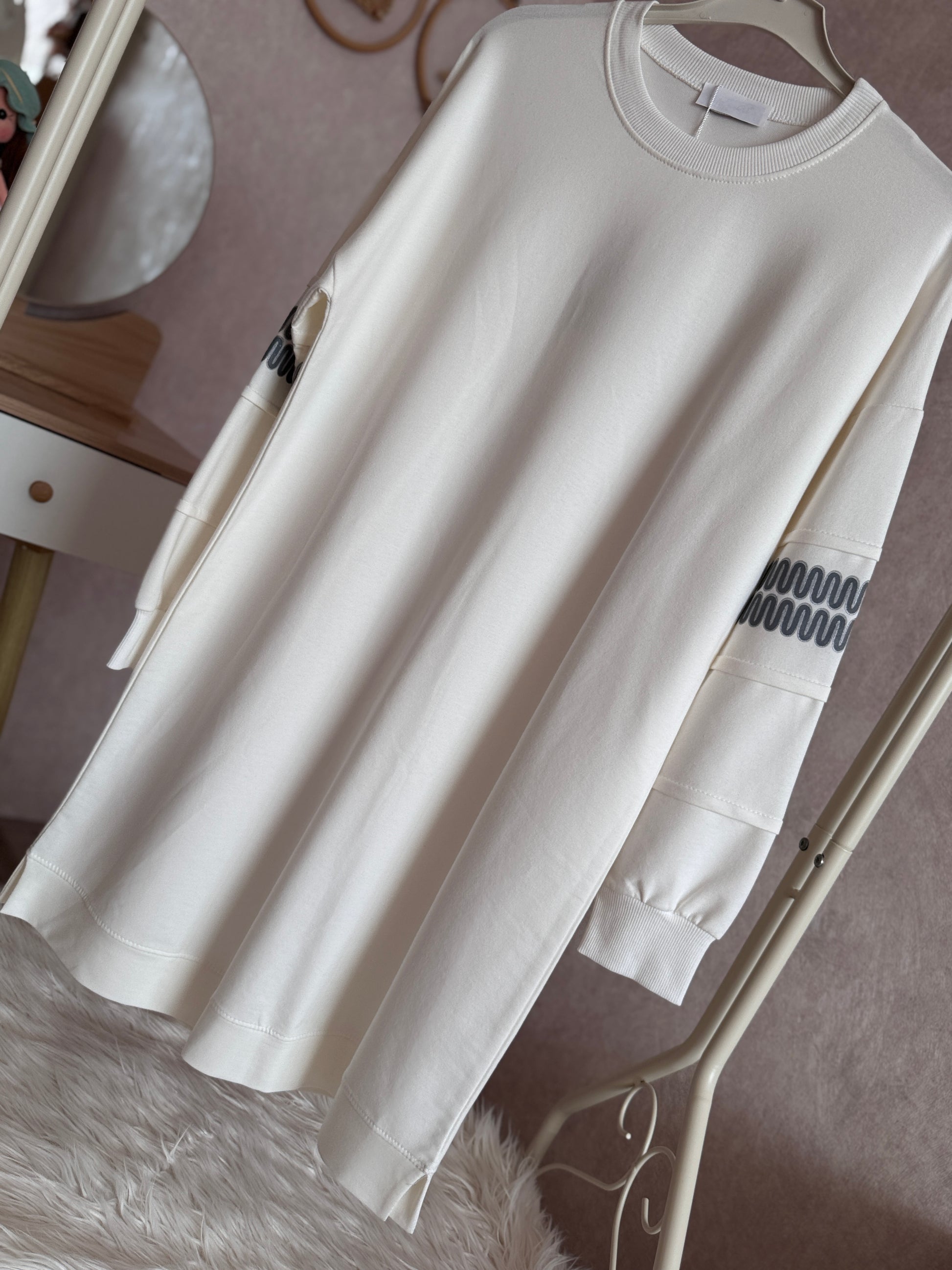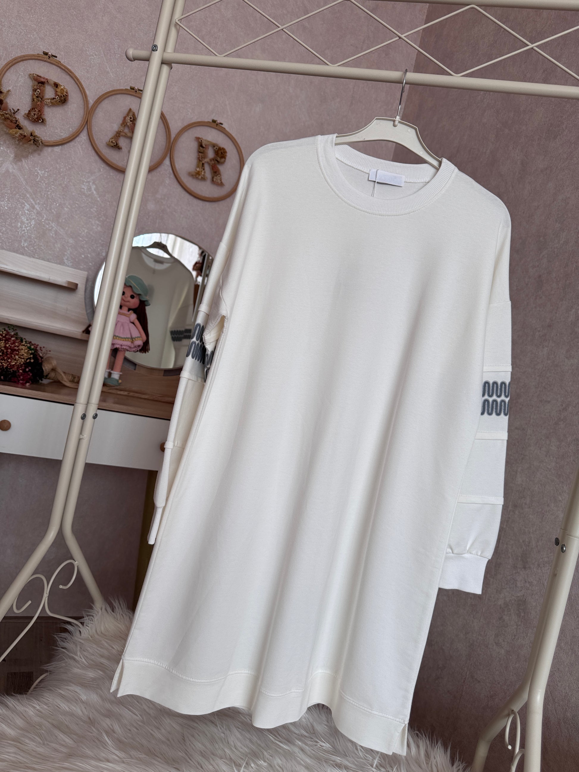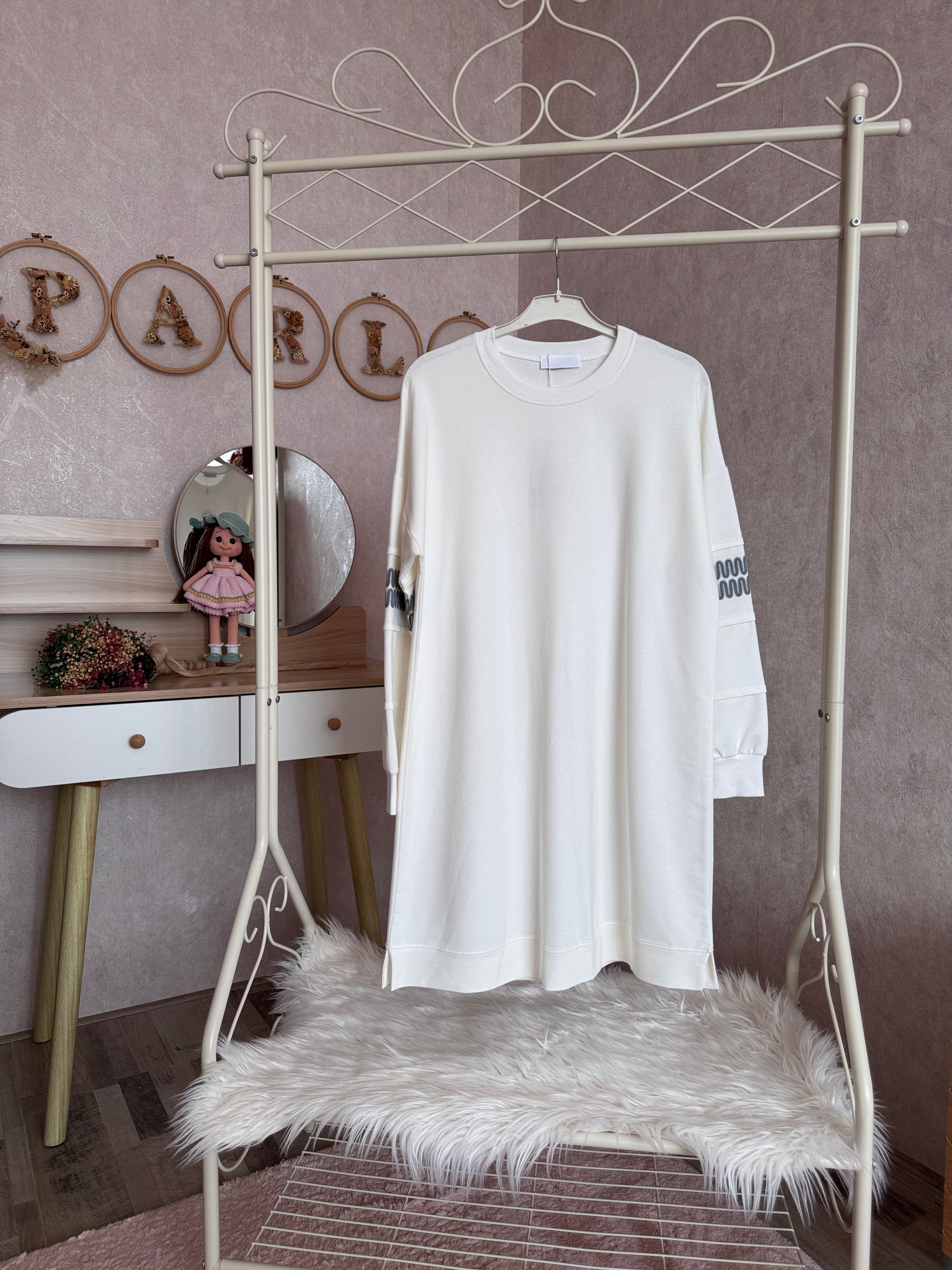 İki iplik penye tunik, kolları zikzak detaylı, beyaz