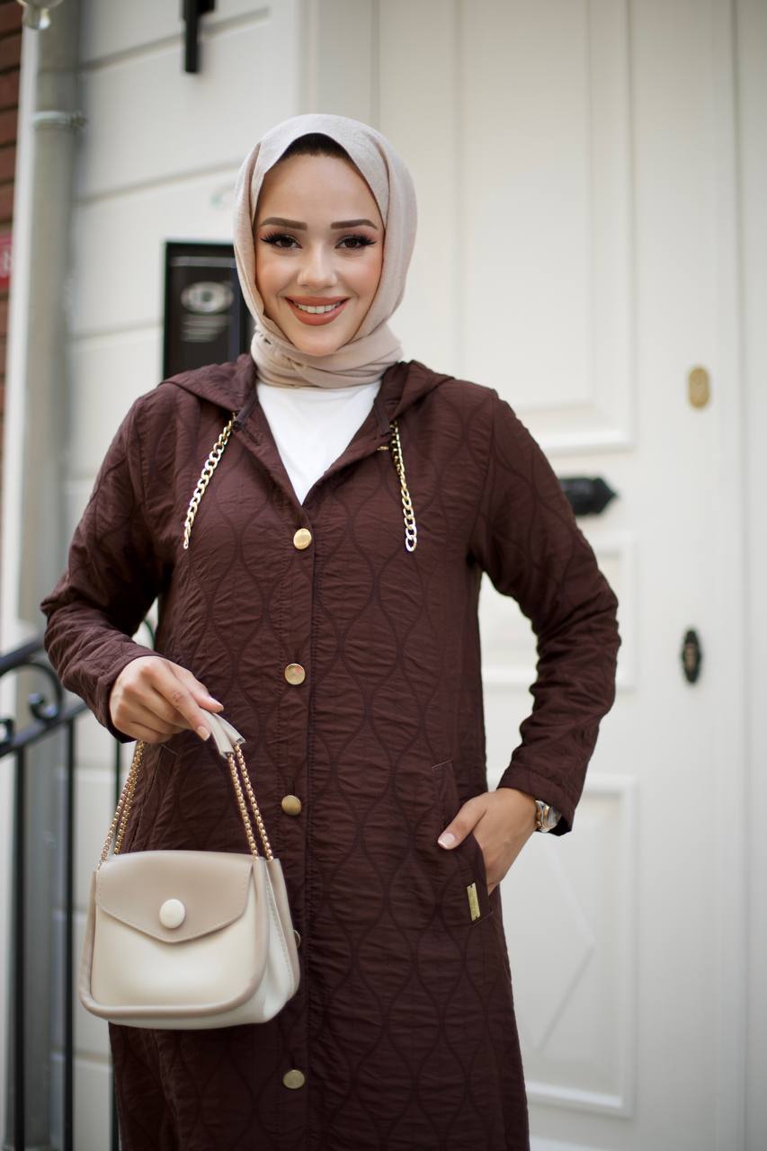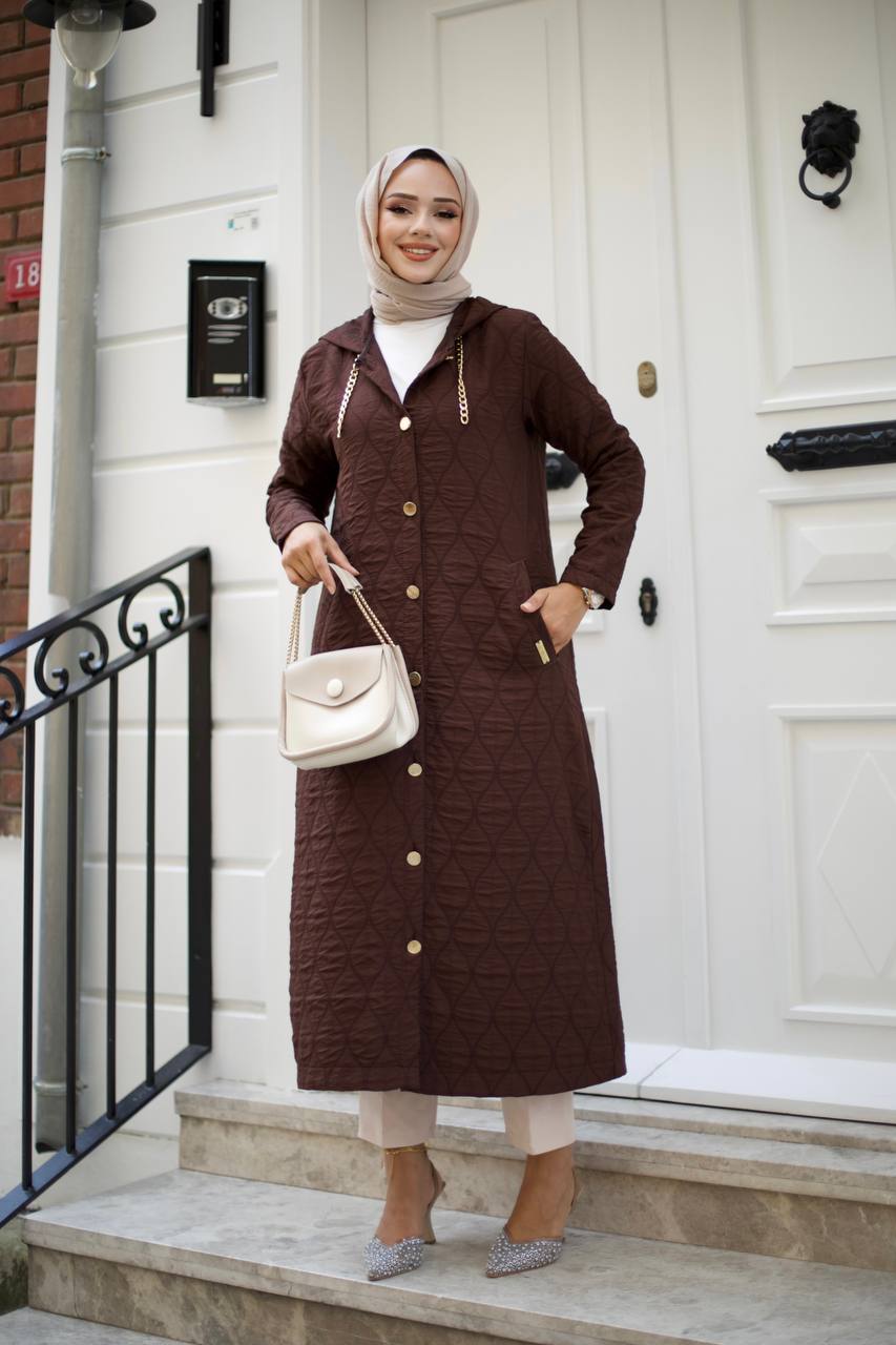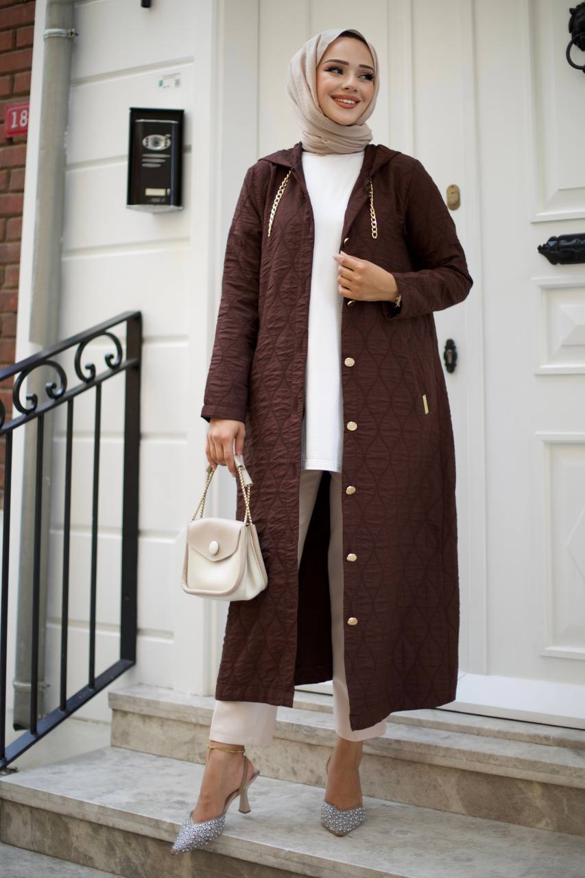 Kapitone ceket, kahverengi