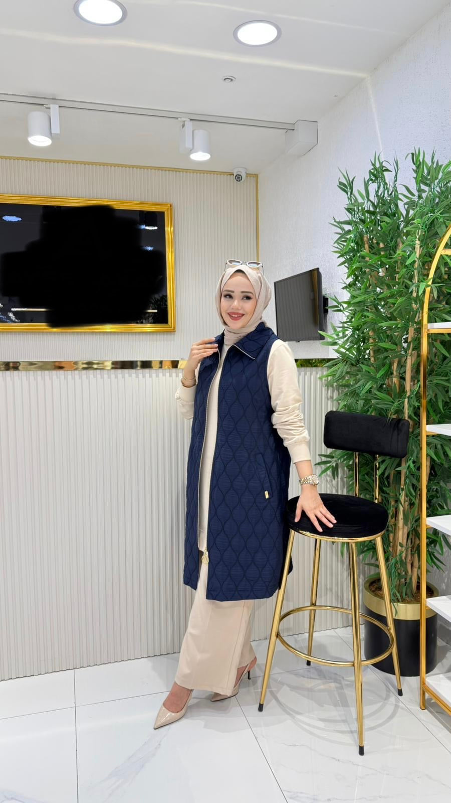 Kapitone yelek, lacivert