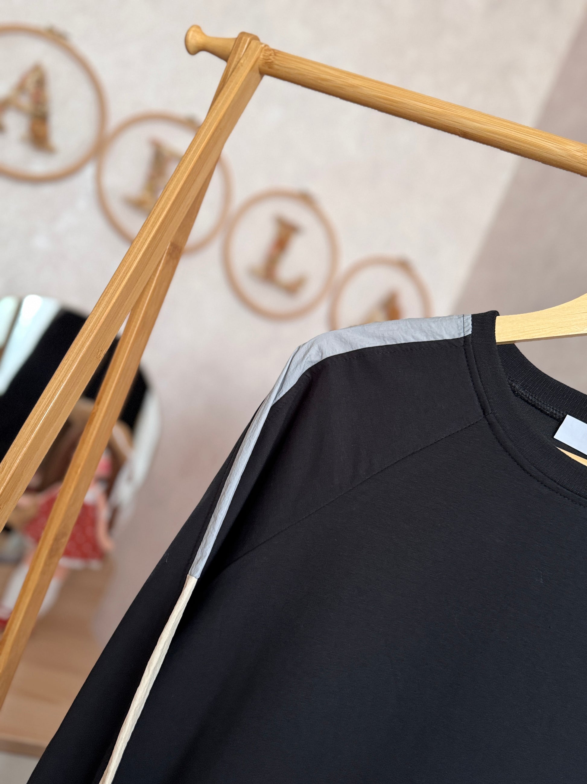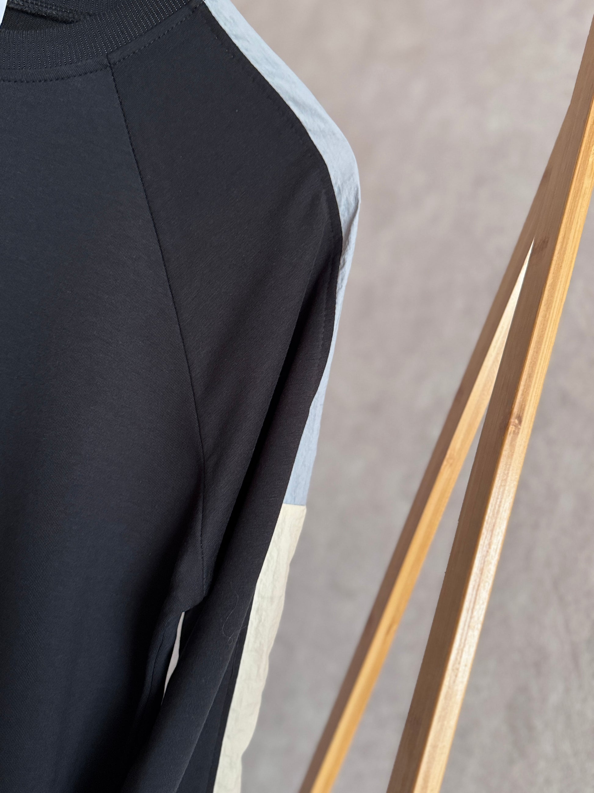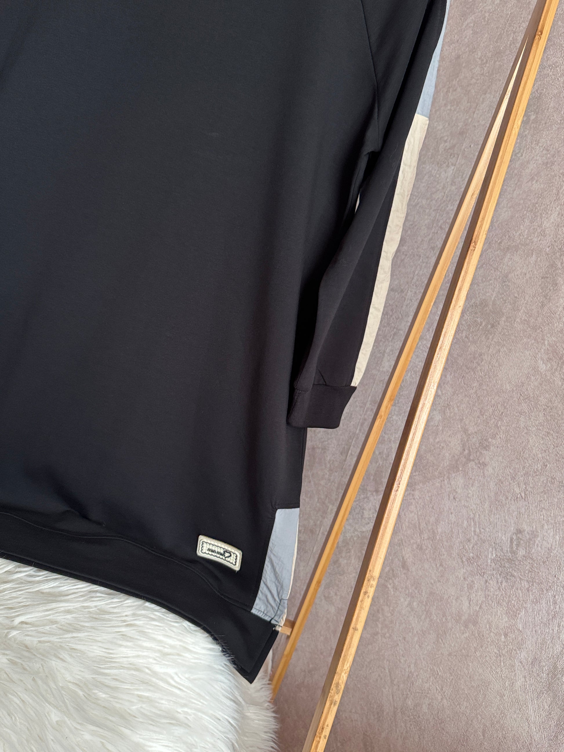 İki iplik penye tunik, kol ve omuz paraşüt detaylı, siyah