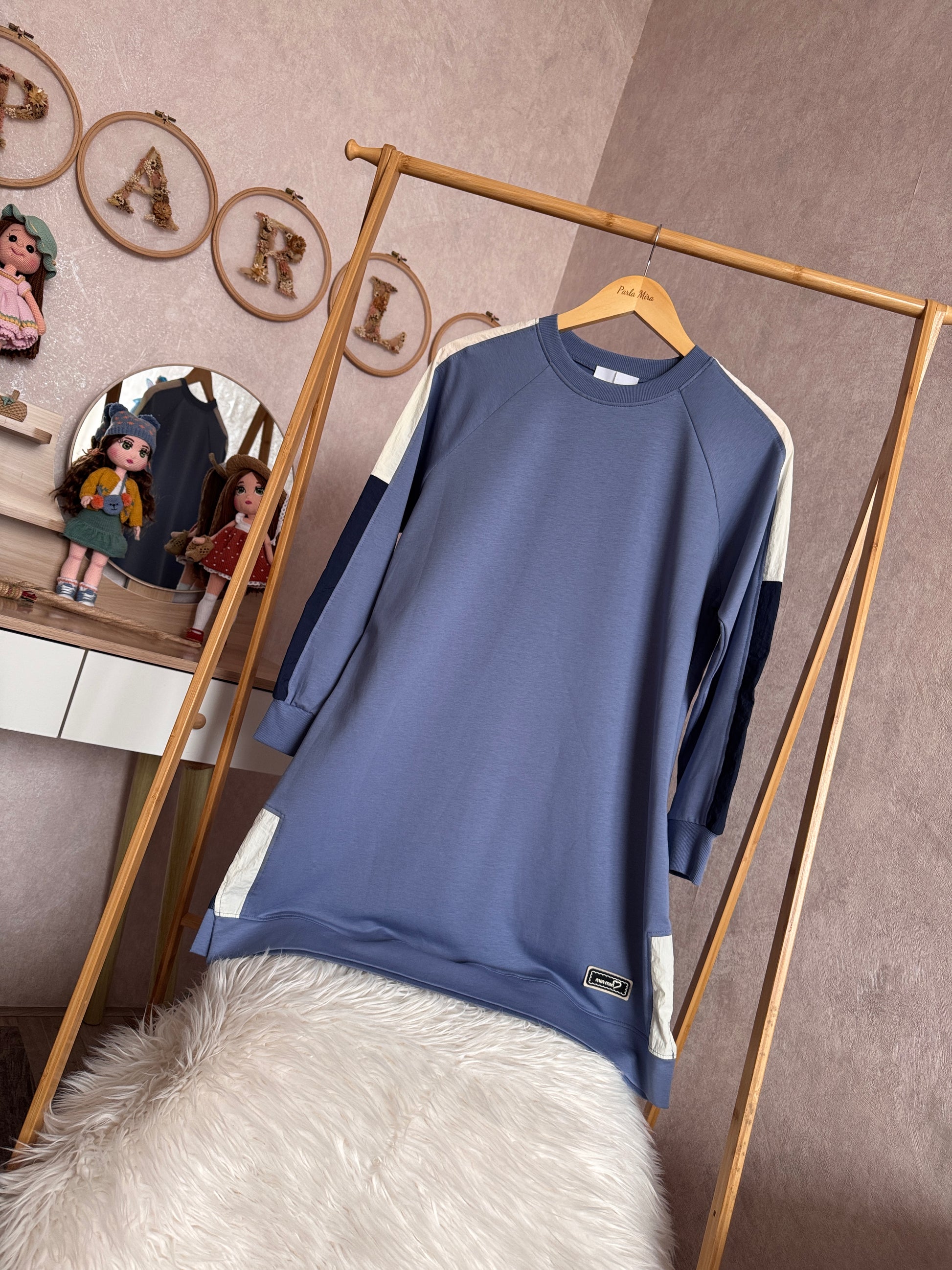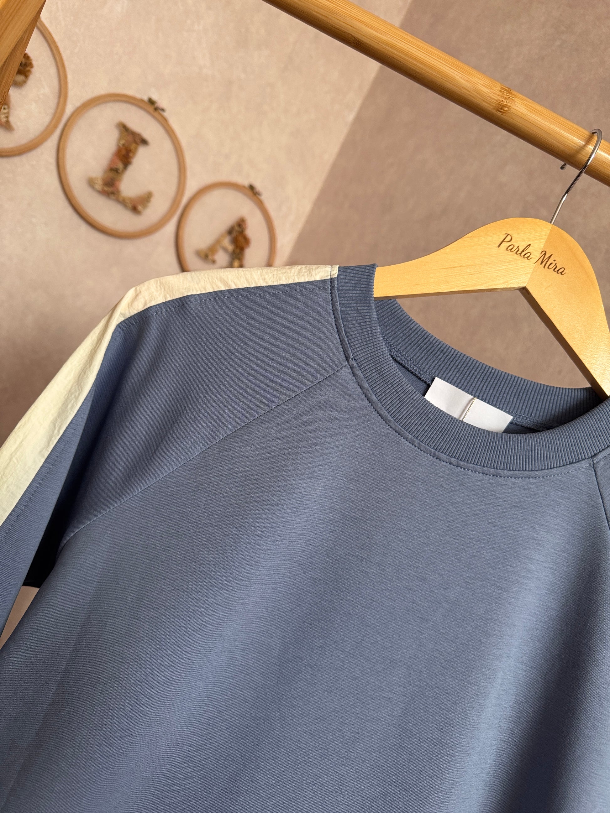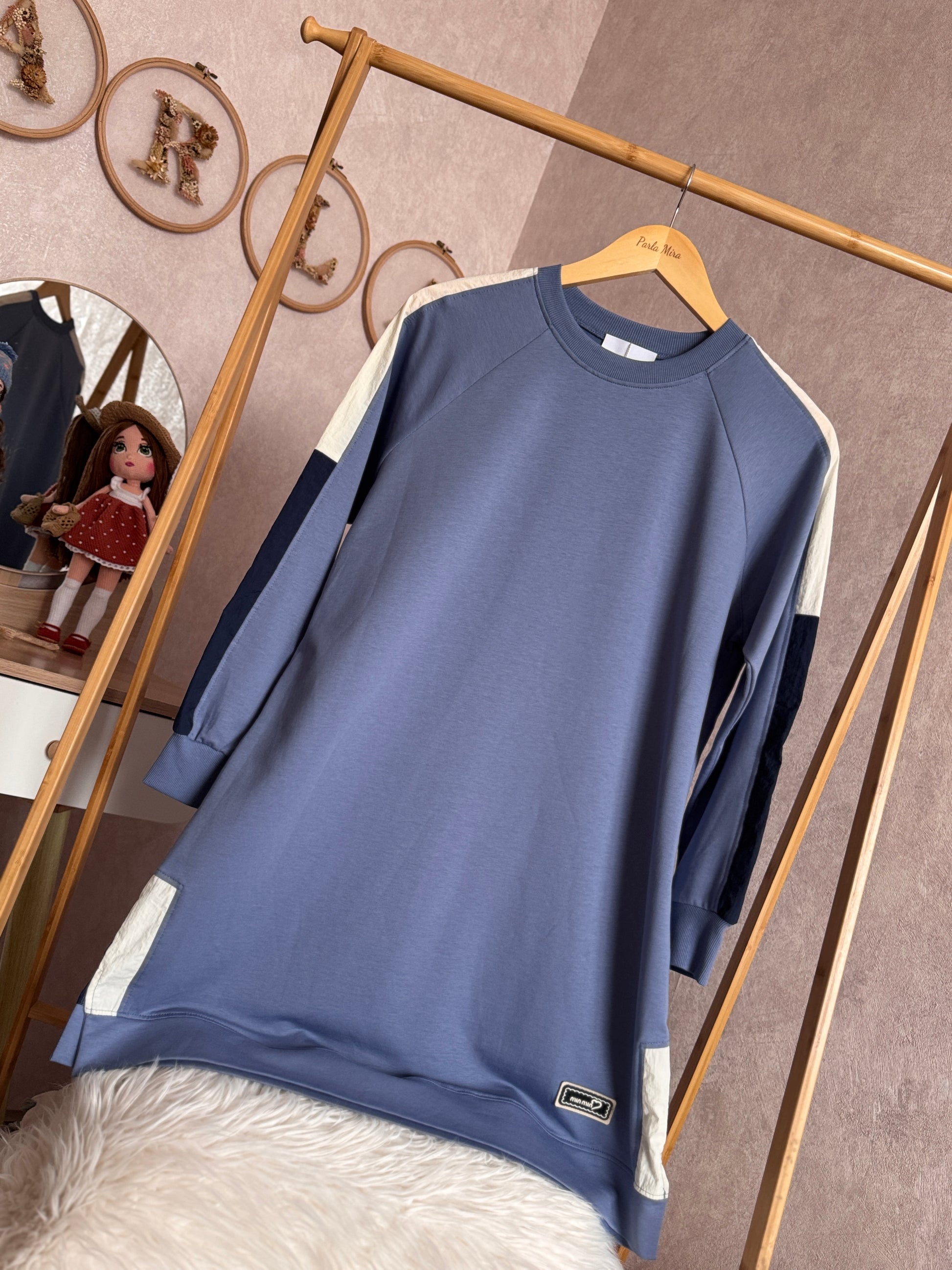 İki iplik penye tunik, kol ve omuz paraşüt detaylı, mavi