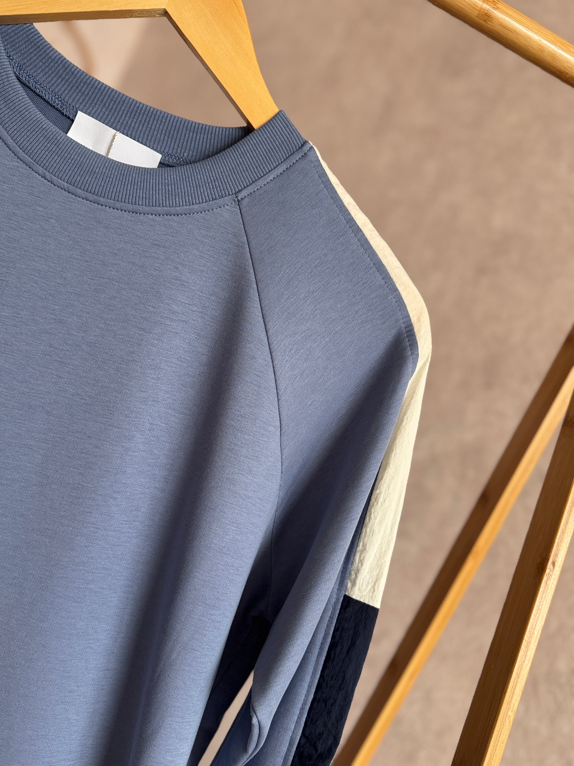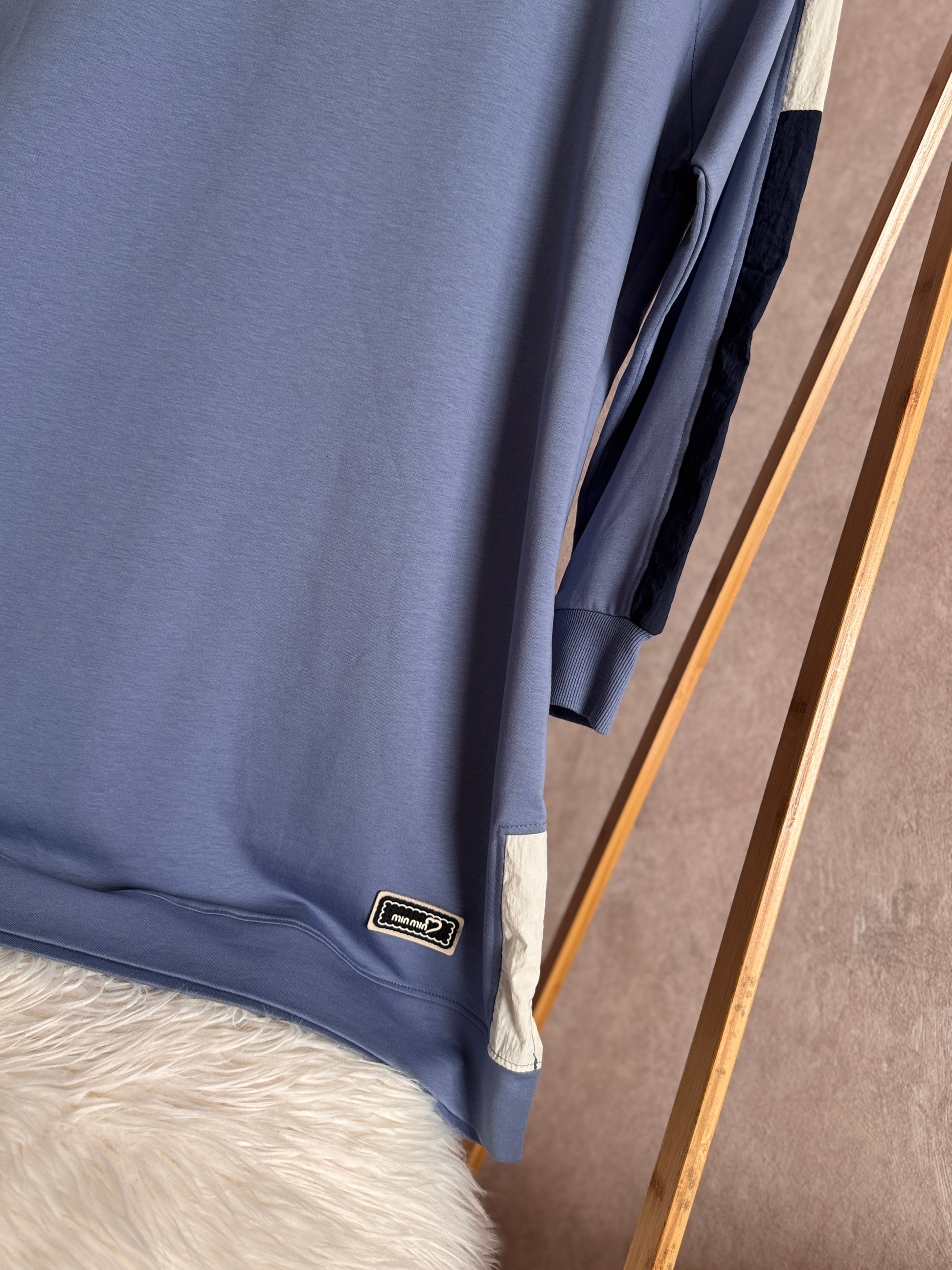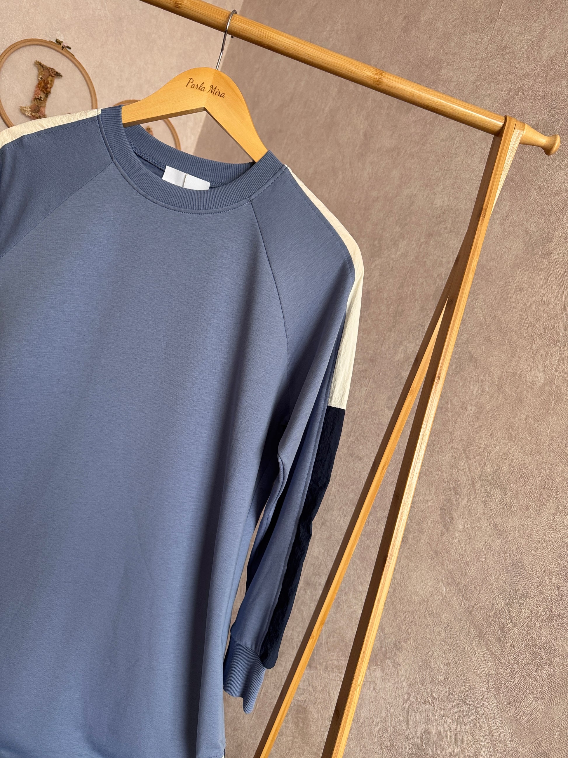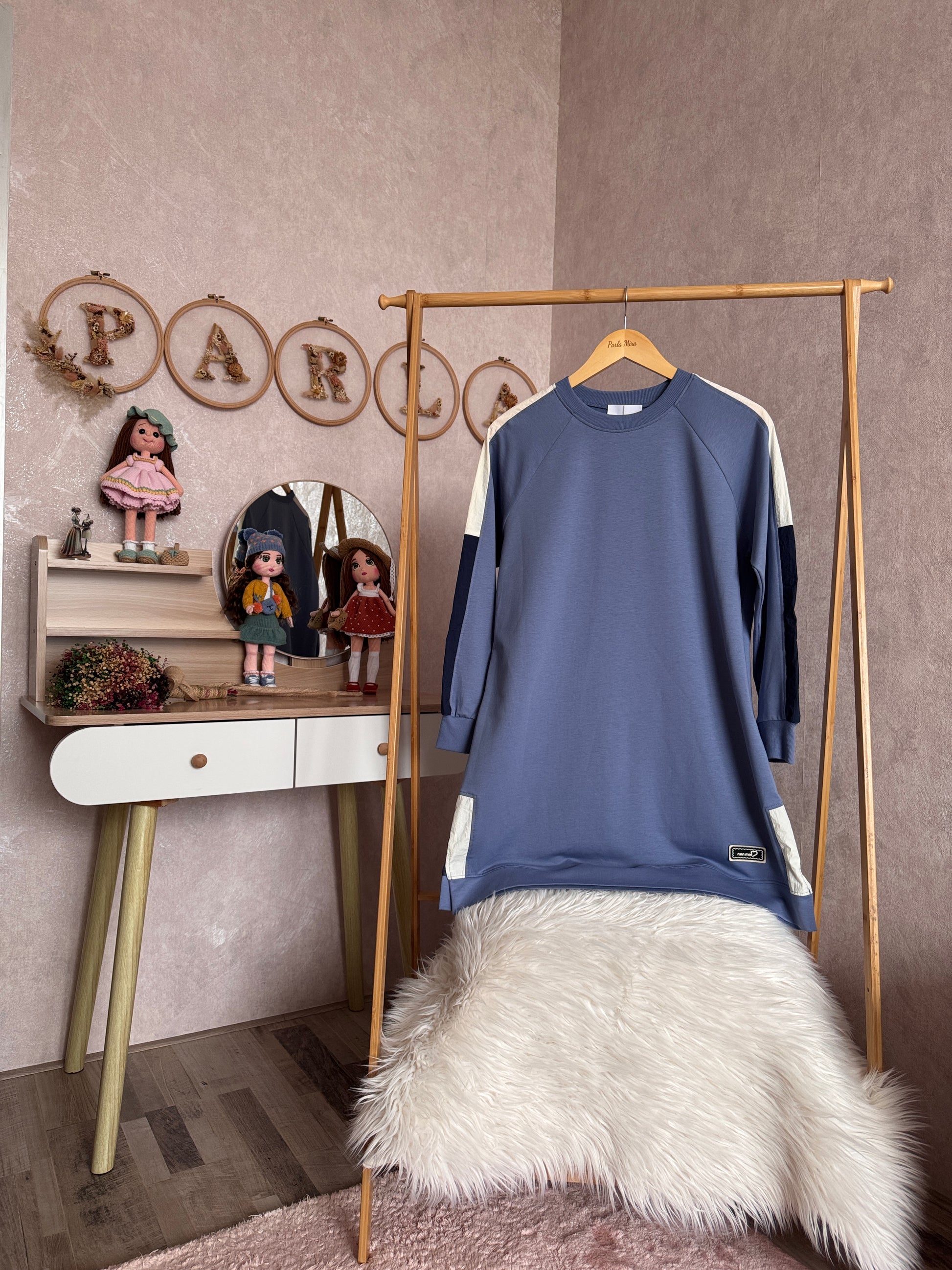 İki iplik penye tunik, kol ve omuz paraşüt detaylı, mavi