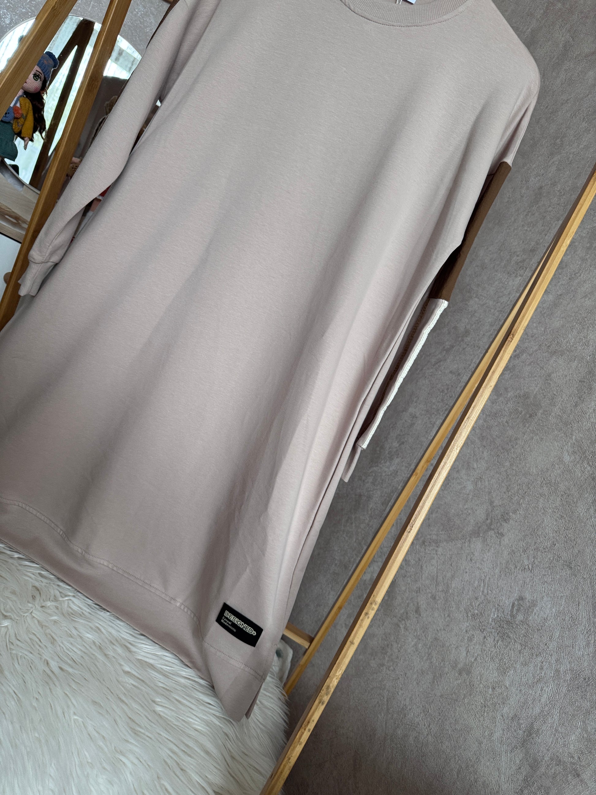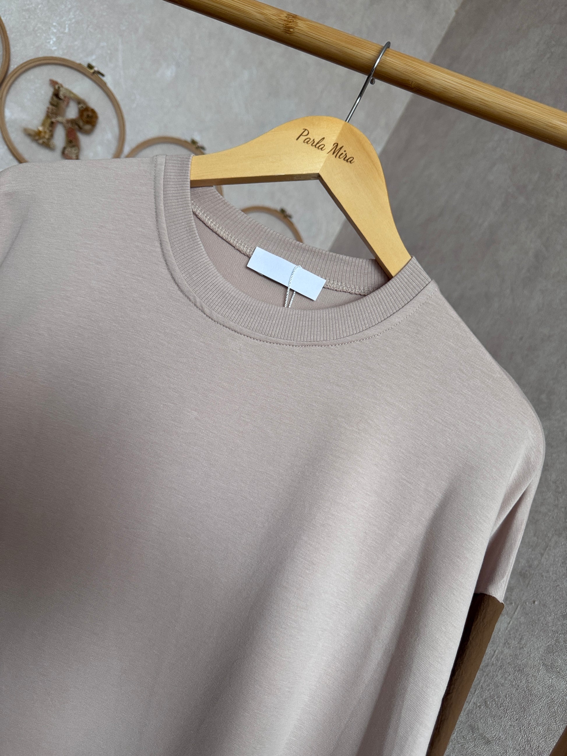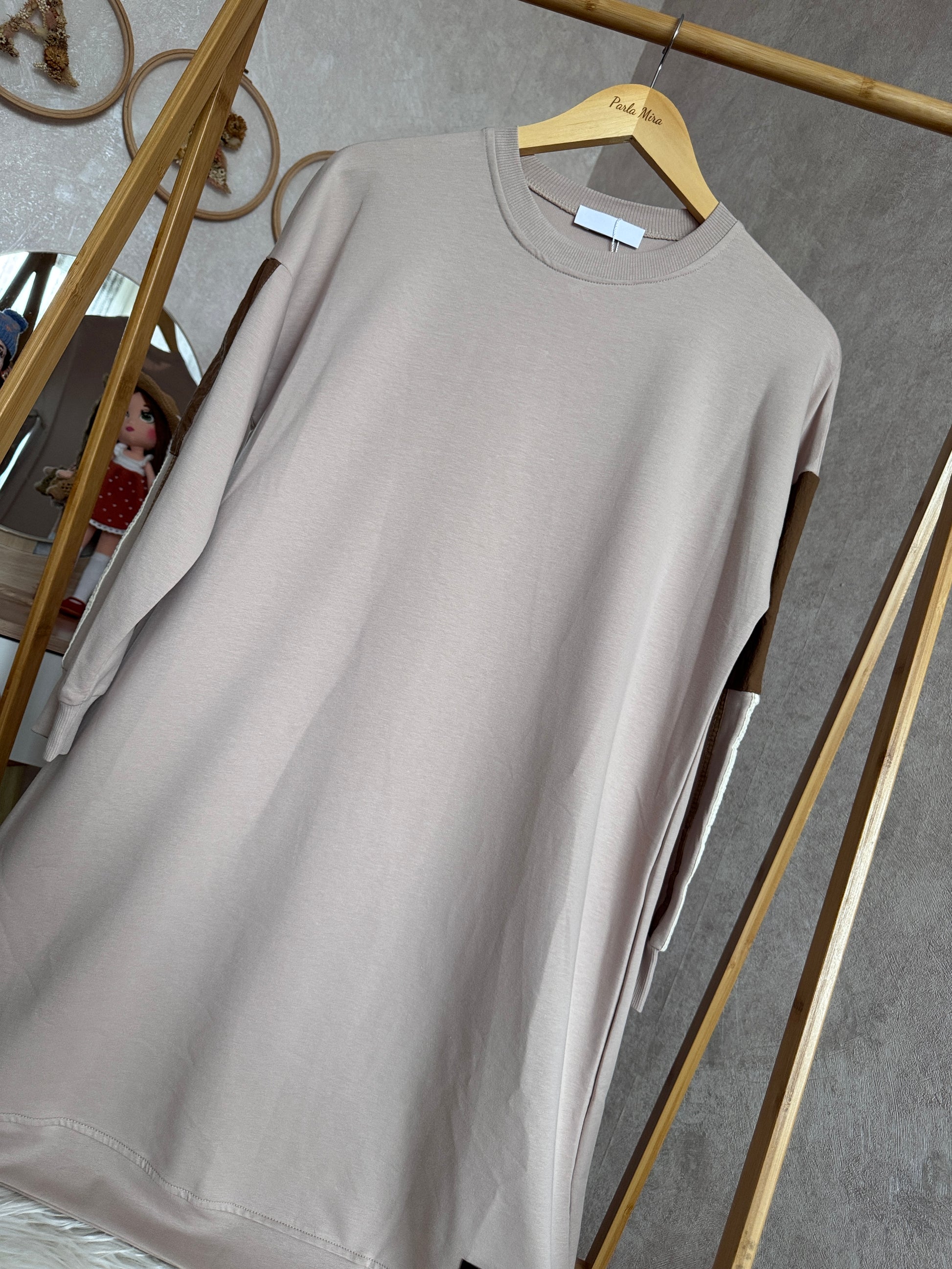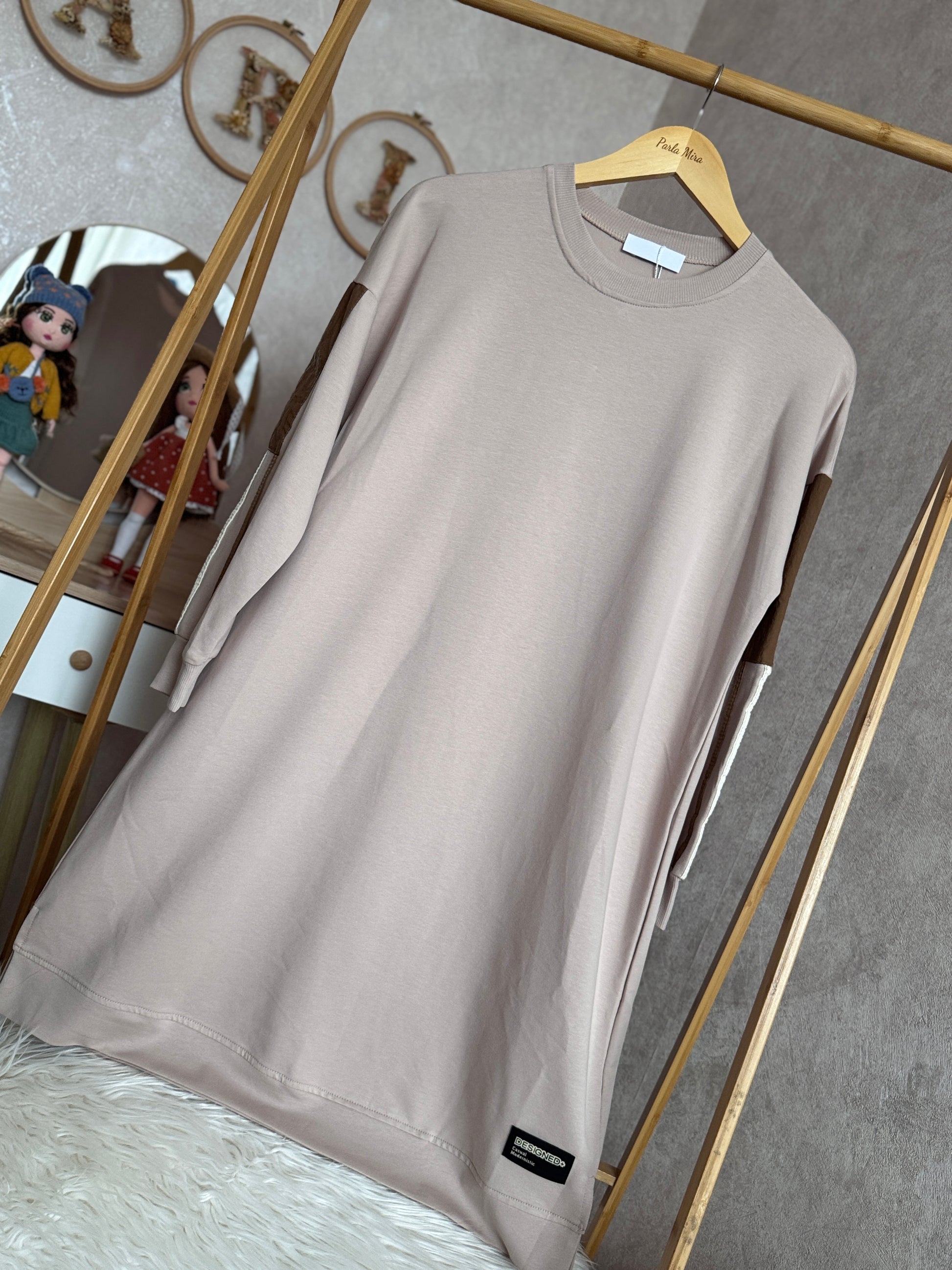 İki iplik penye tunik, kolları paraşüt detaylı, bej