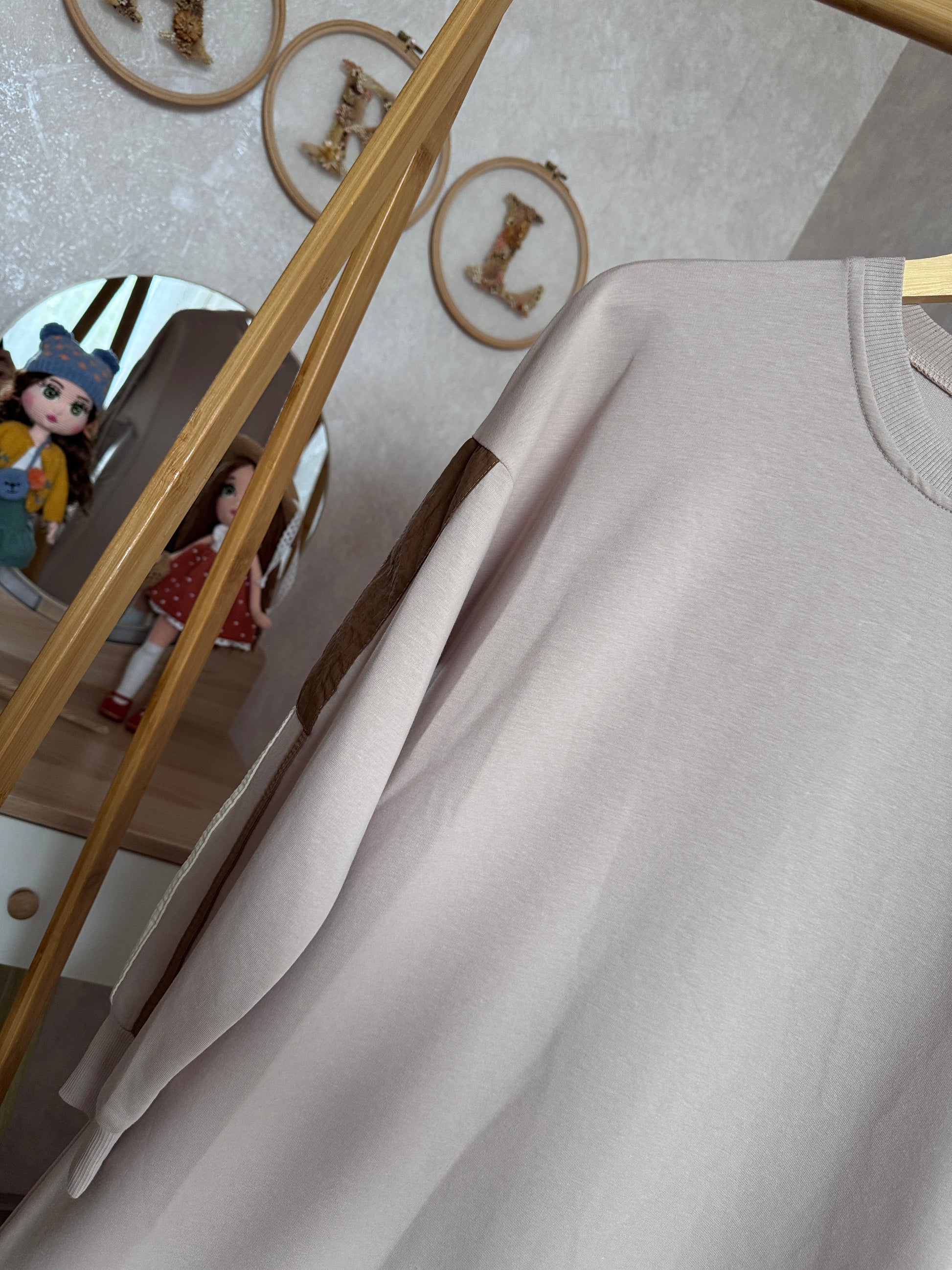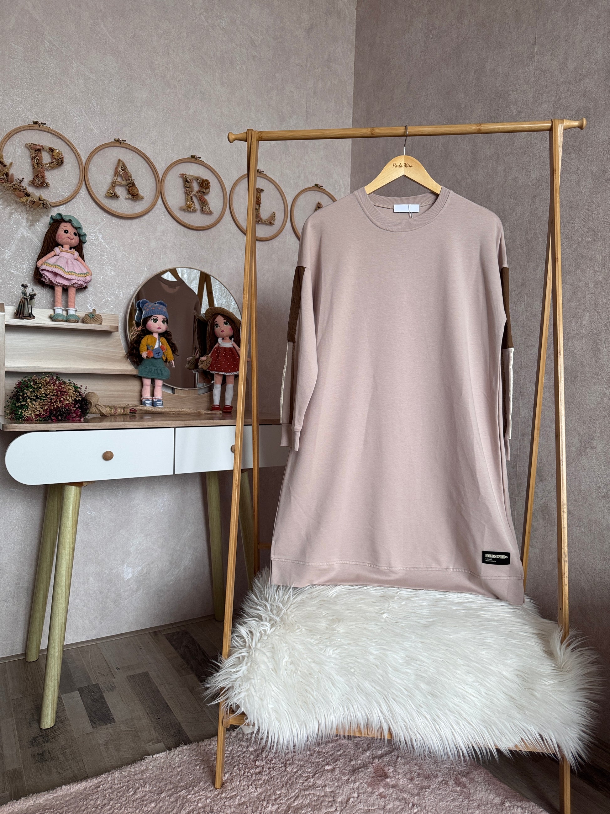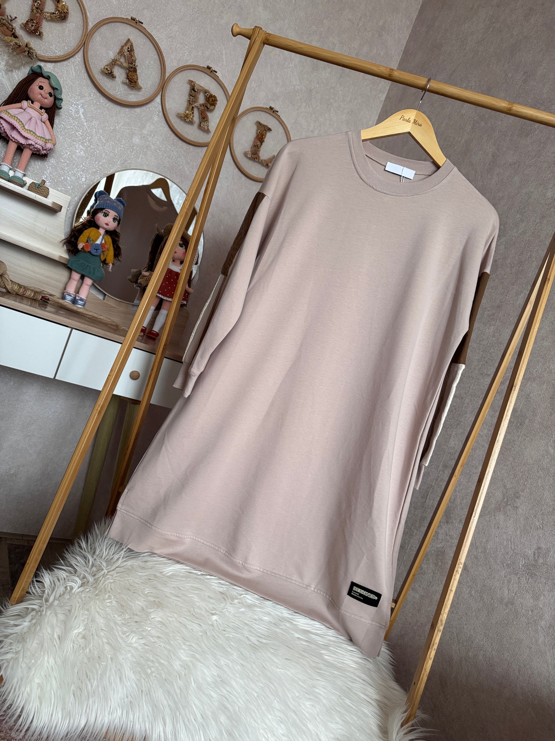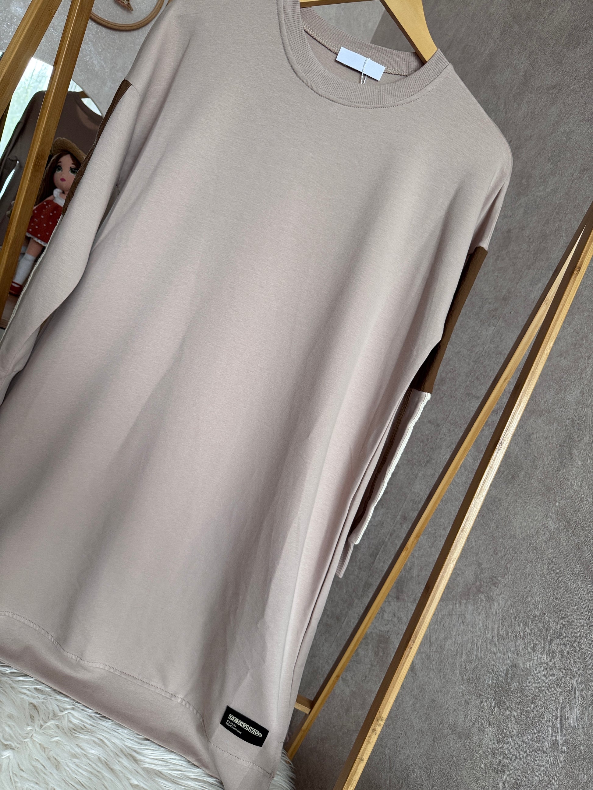 İki iplik penye tunik, kolları paraşüt detaylı, bej