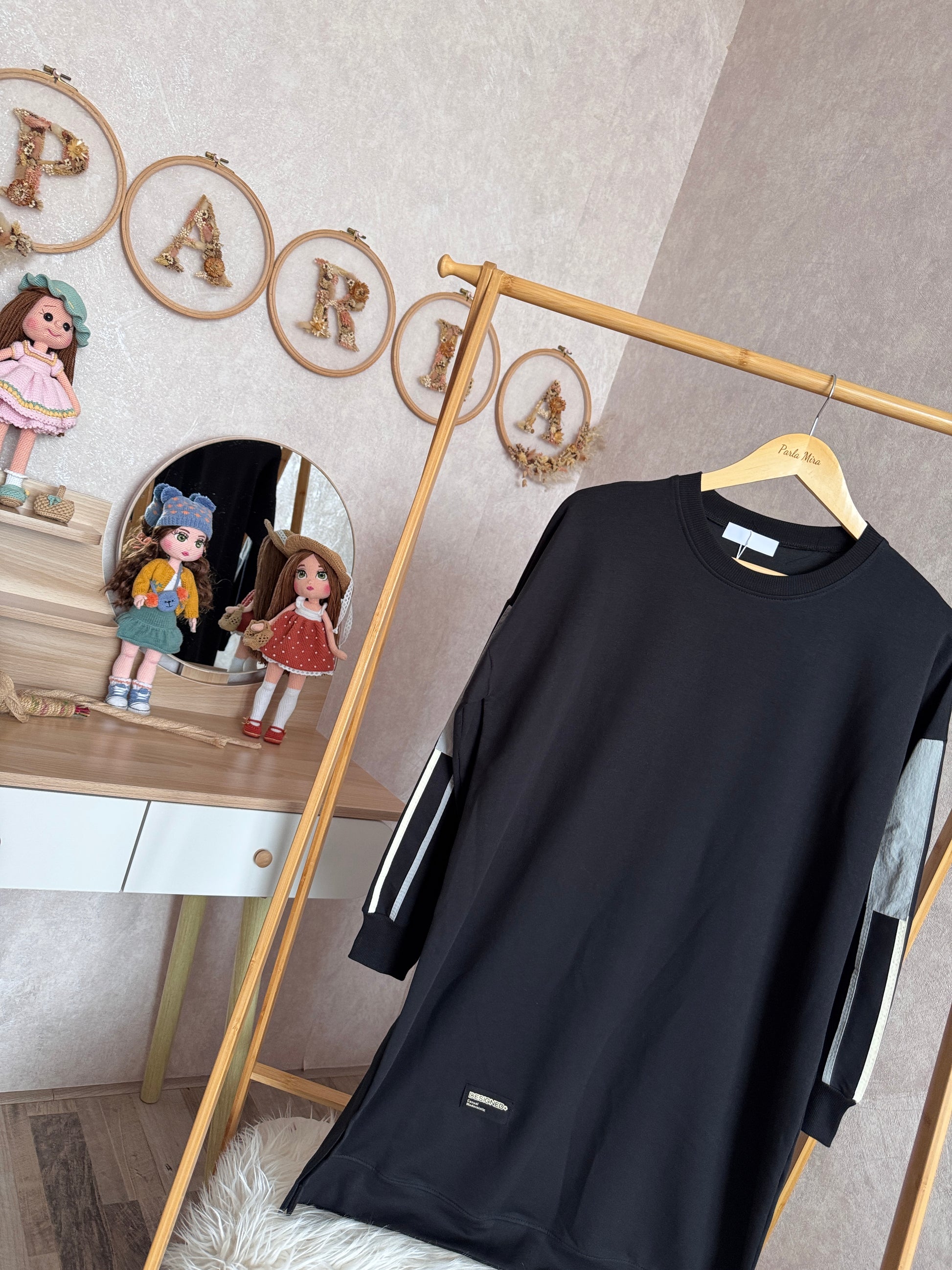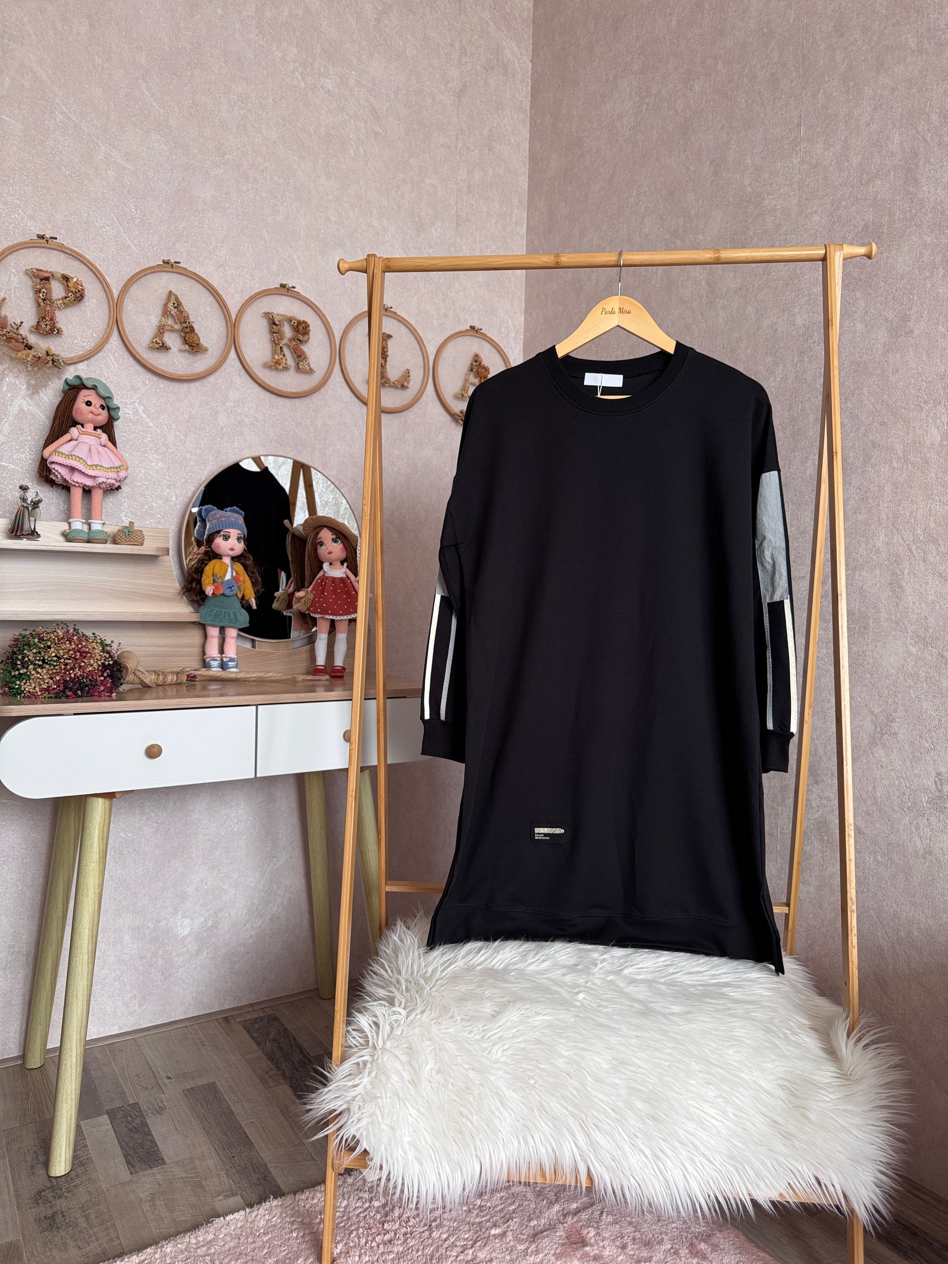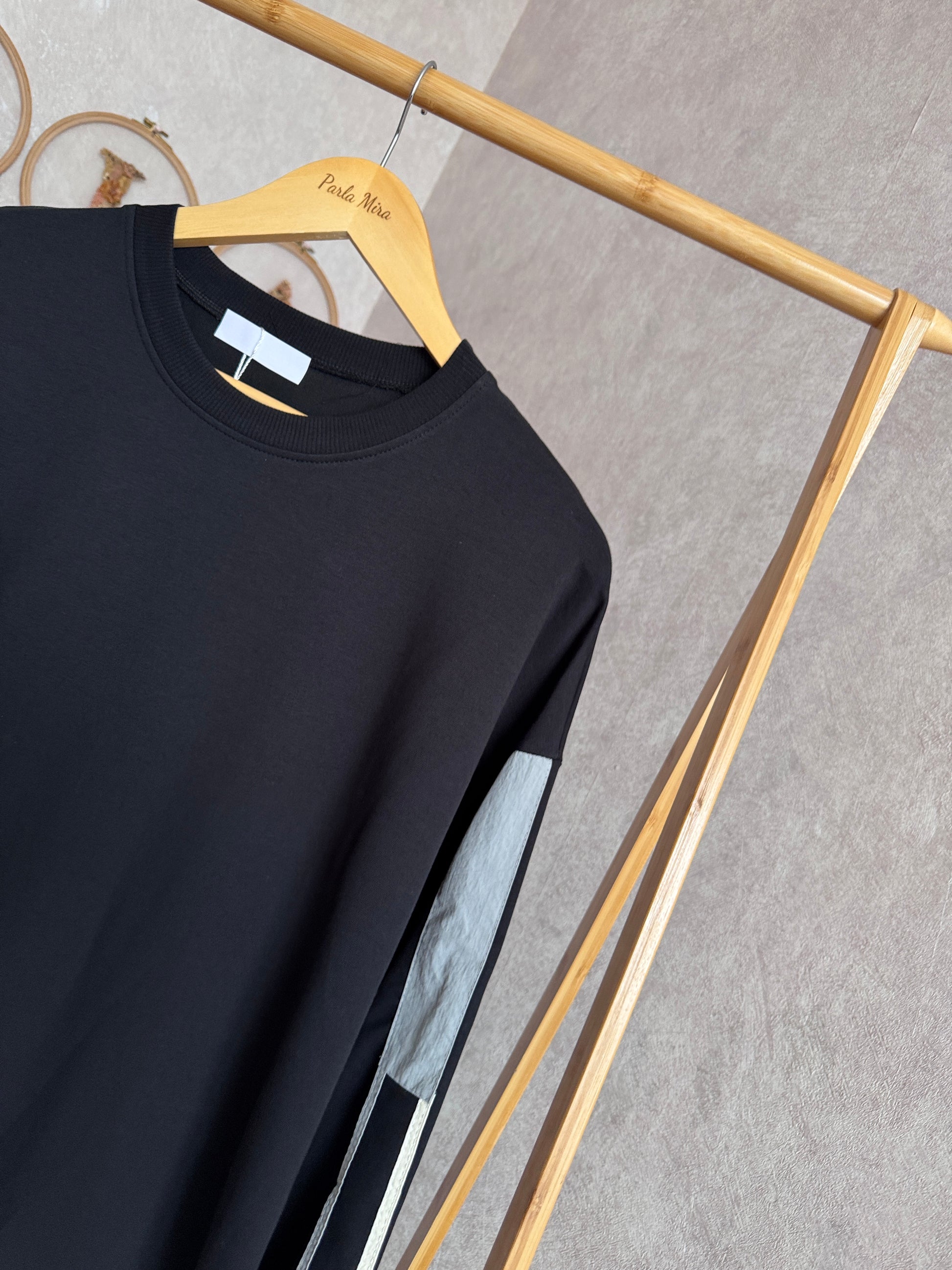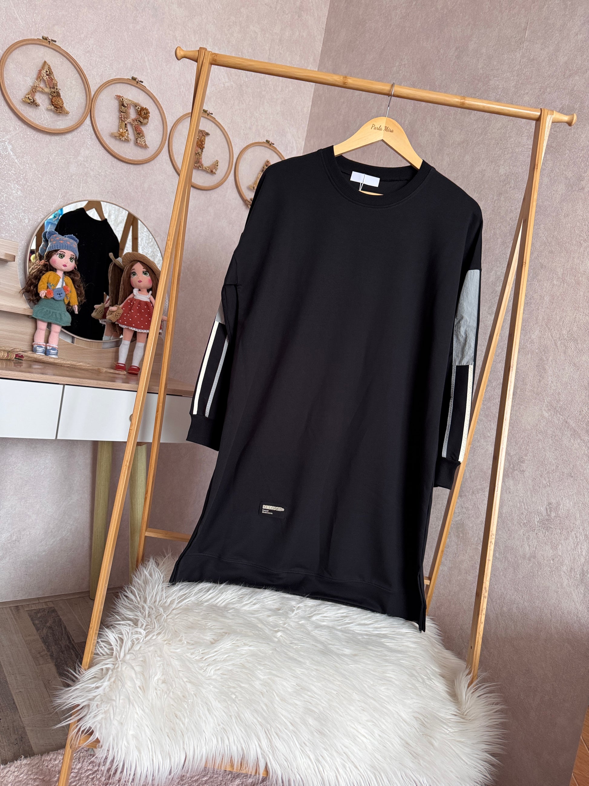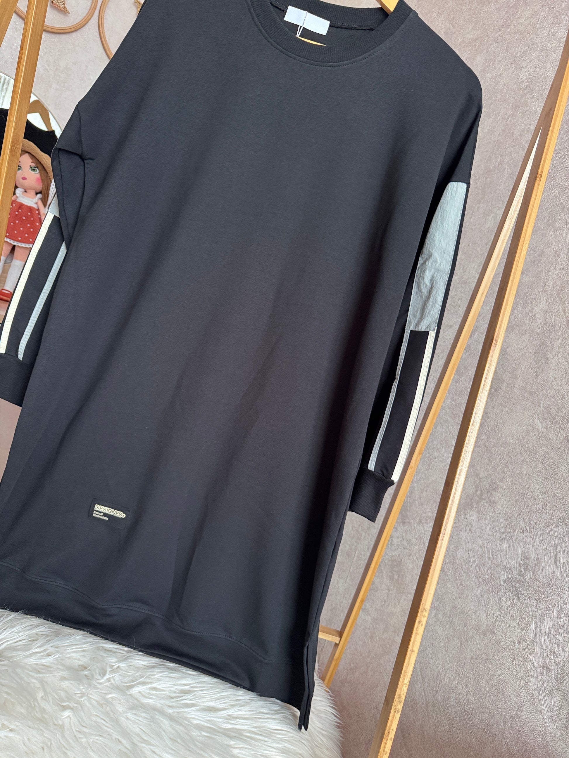 İki iplik penye tunik, kolları paraşüt detaylı, siyah
