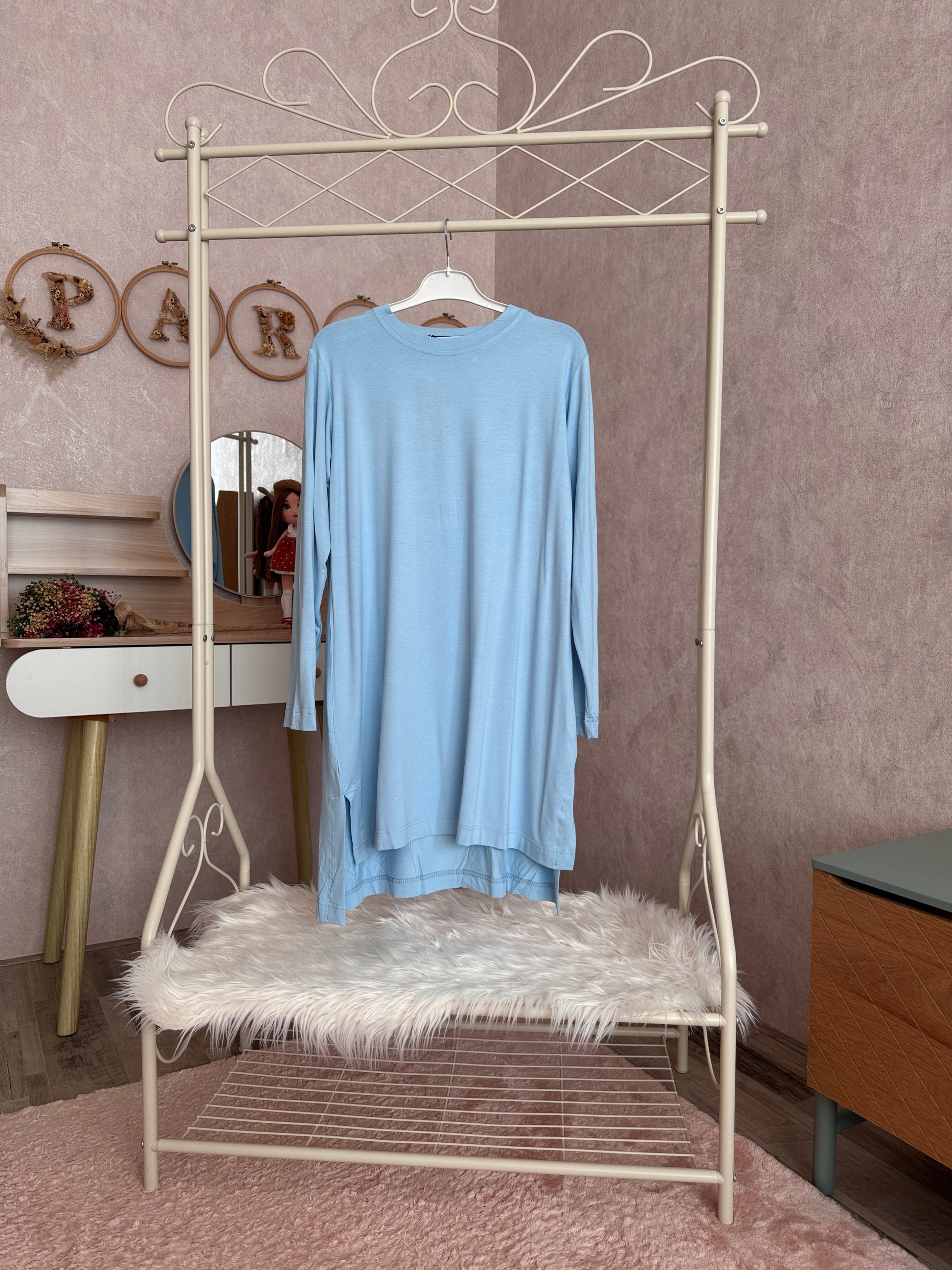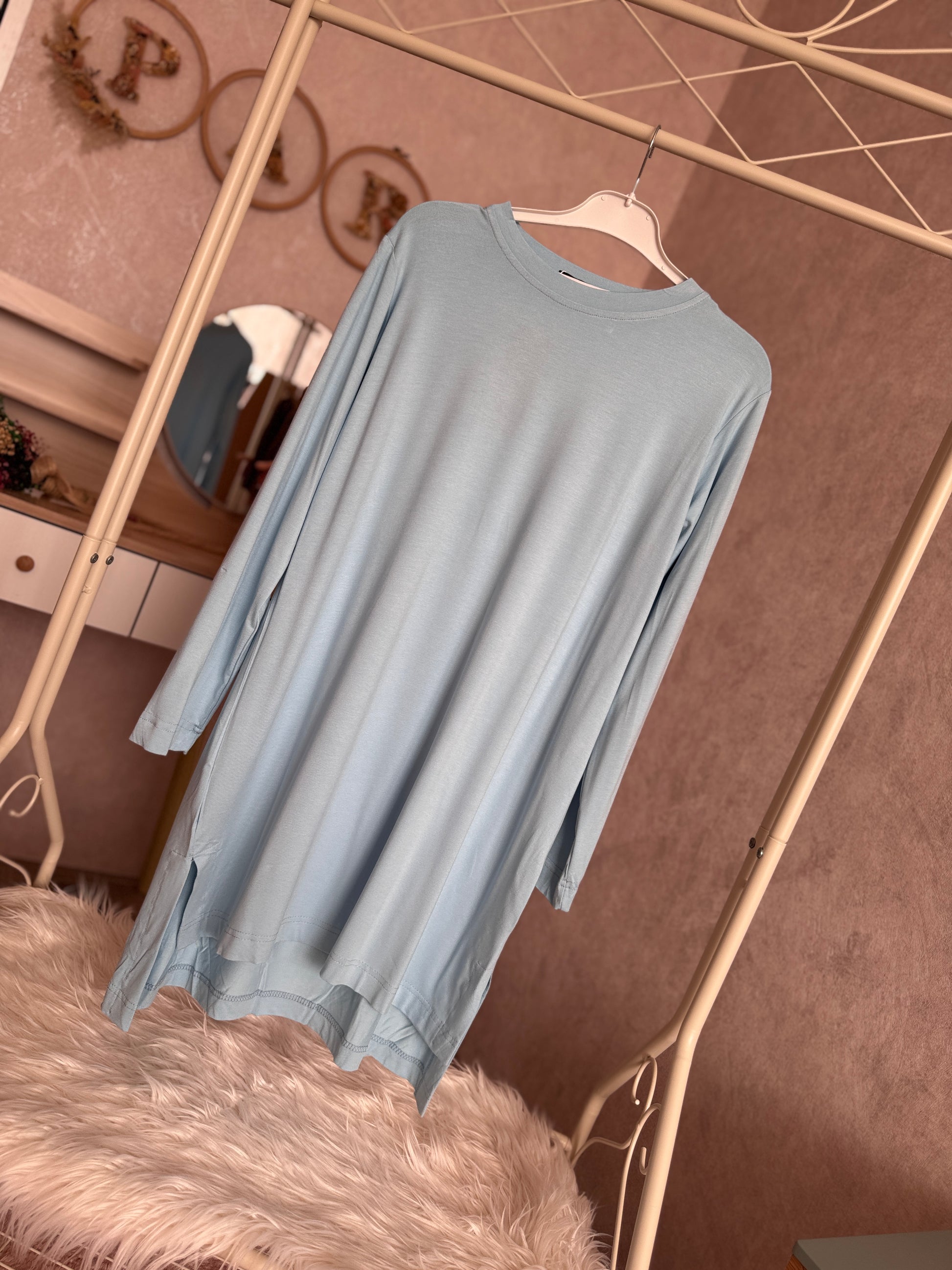 Pamuklu penye tunik, mavi