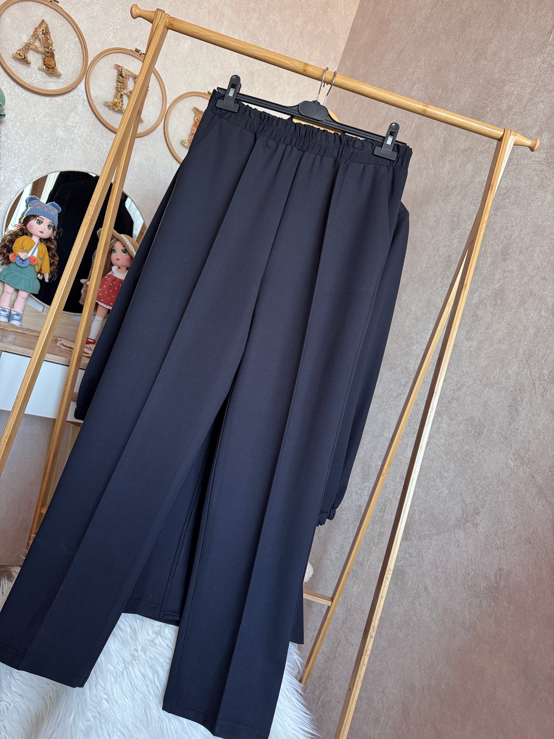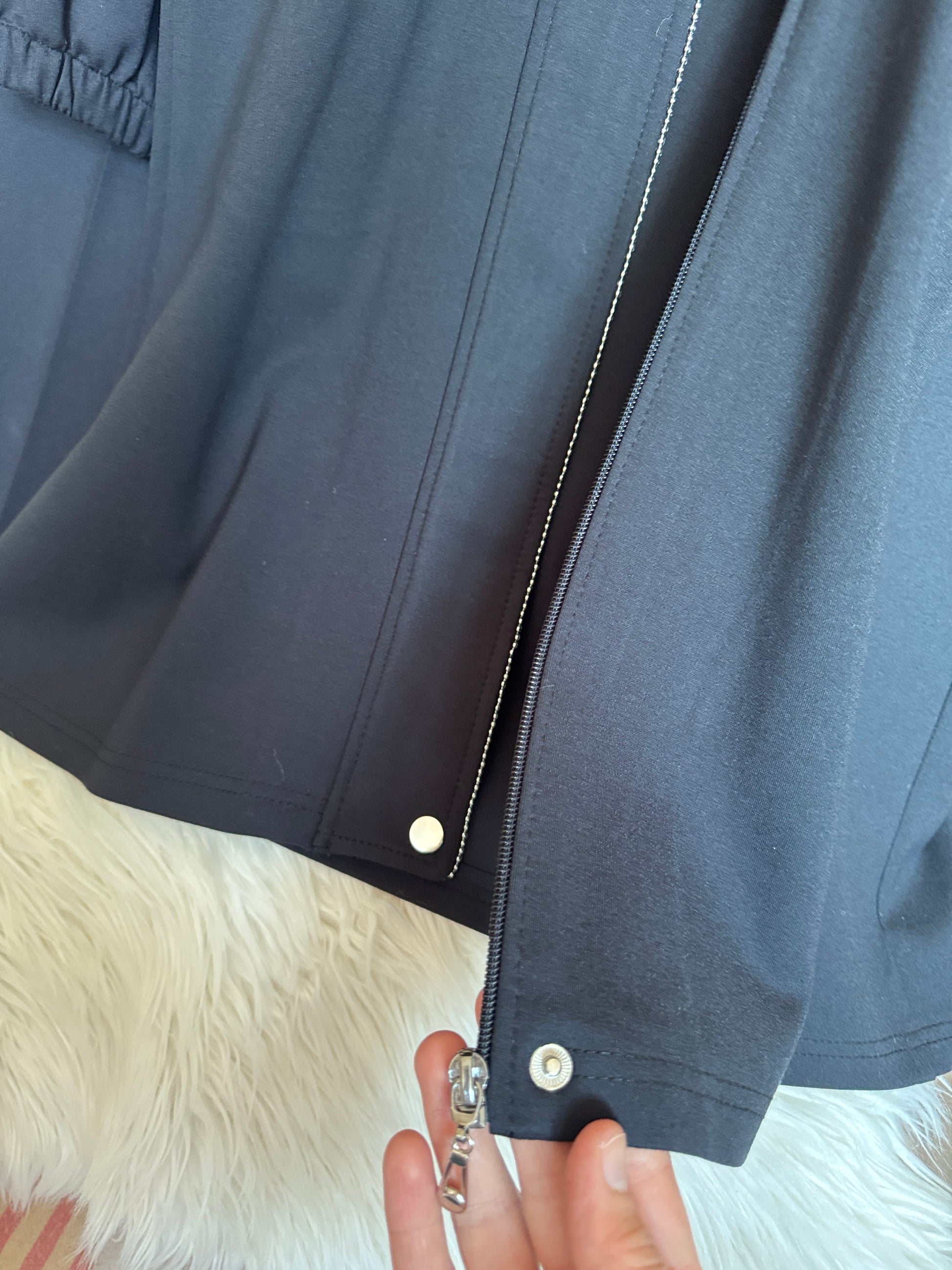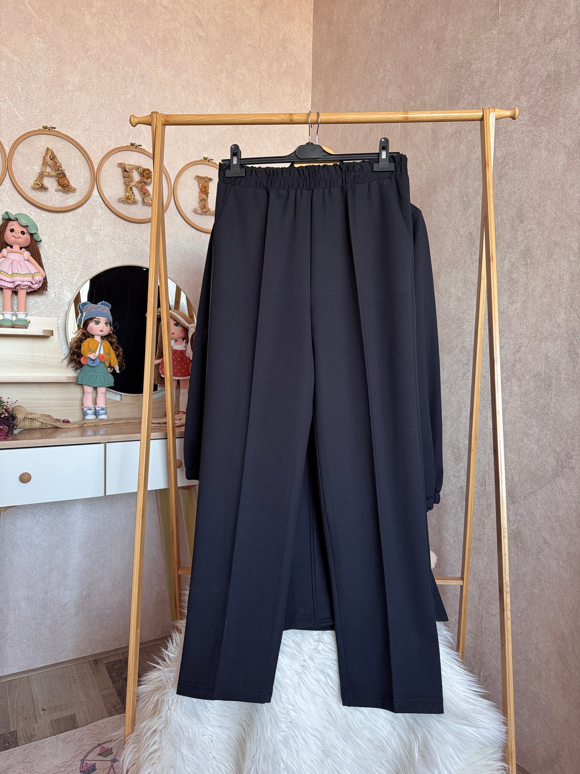 Önden fermuarlı, yaka işlemeli çiçek detaylı takım, lacivert