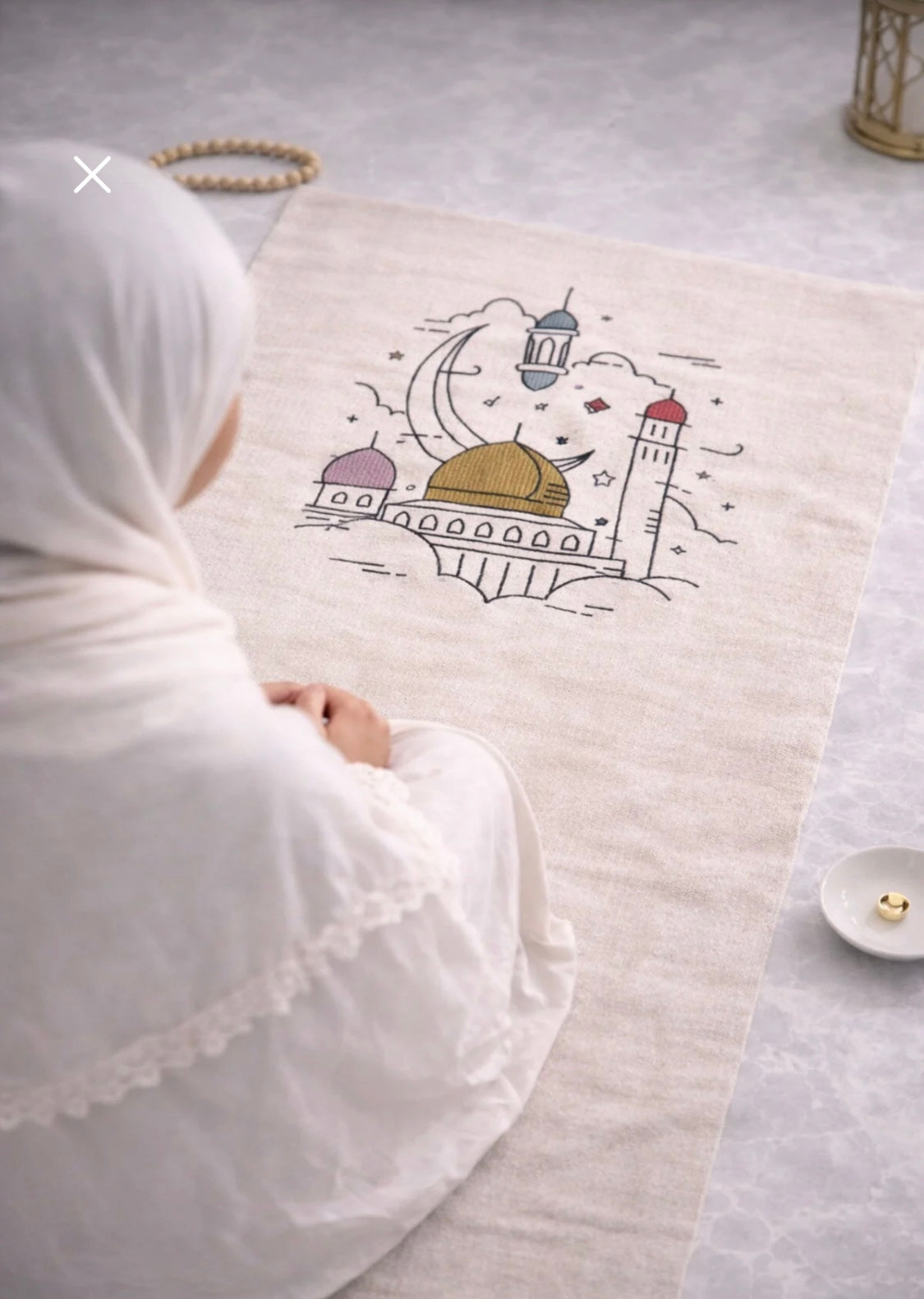 Natürel %100 pamuk düz kumaş üzerine sade bir nakış ile işlenmiş, her evde olması gereken bu güzel seccade modelimiz, siz değerli Parla Mira takipçilerimiz için artık Tüm Avrupa’da..