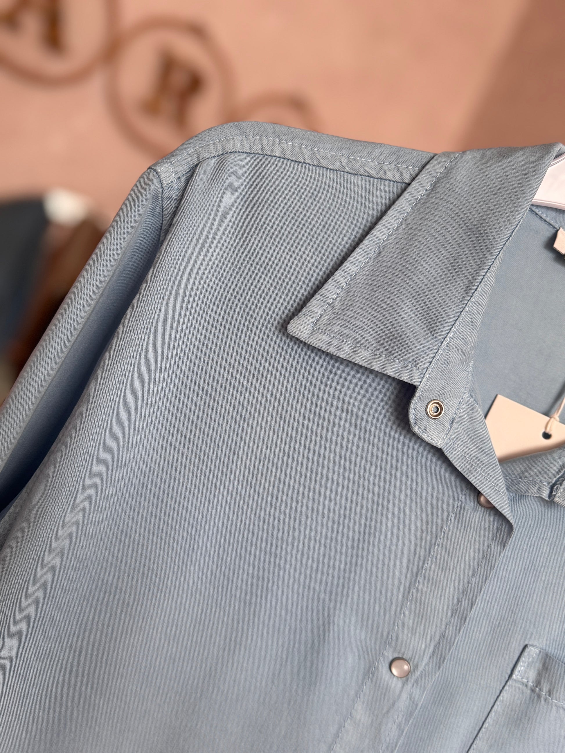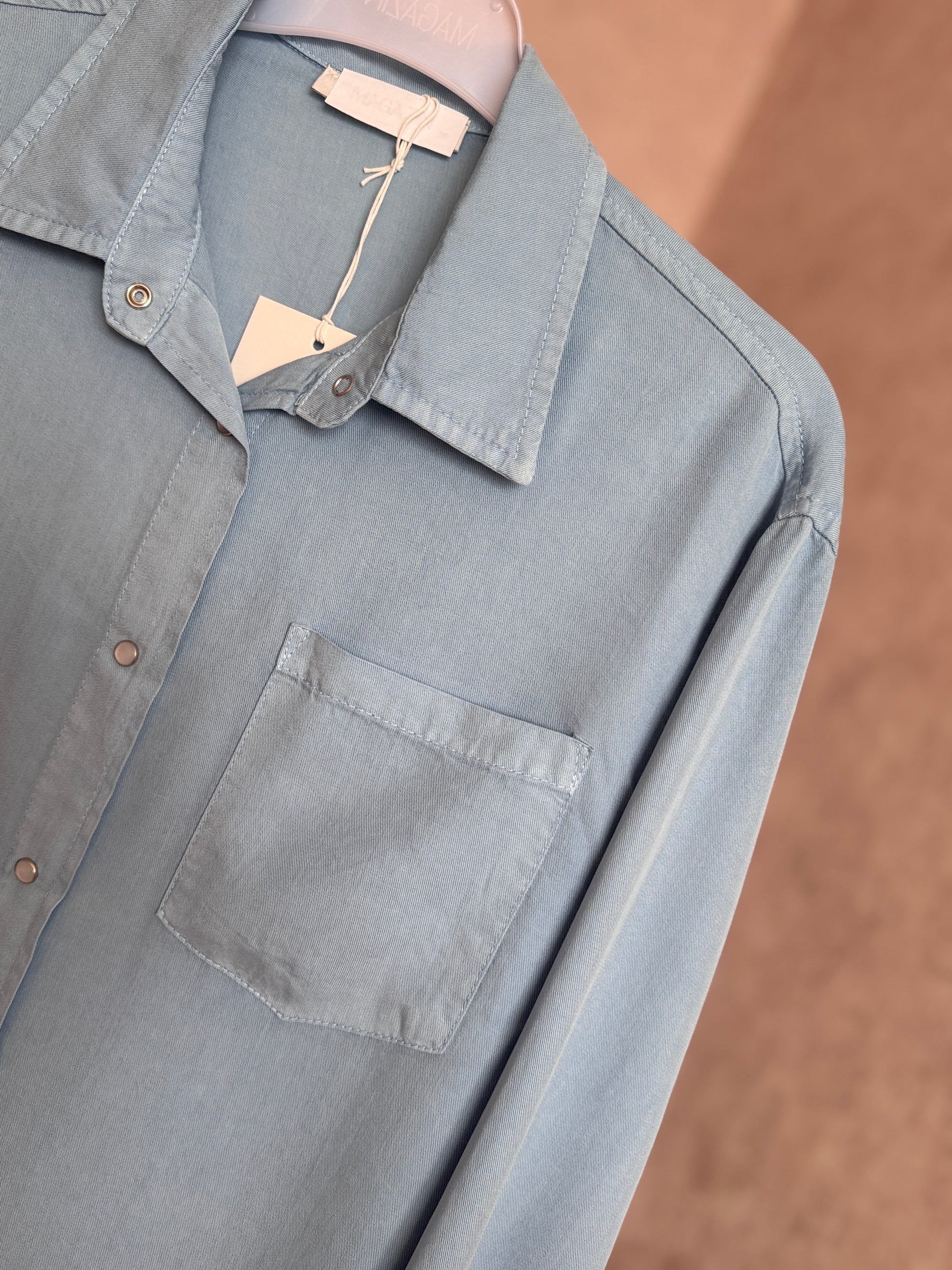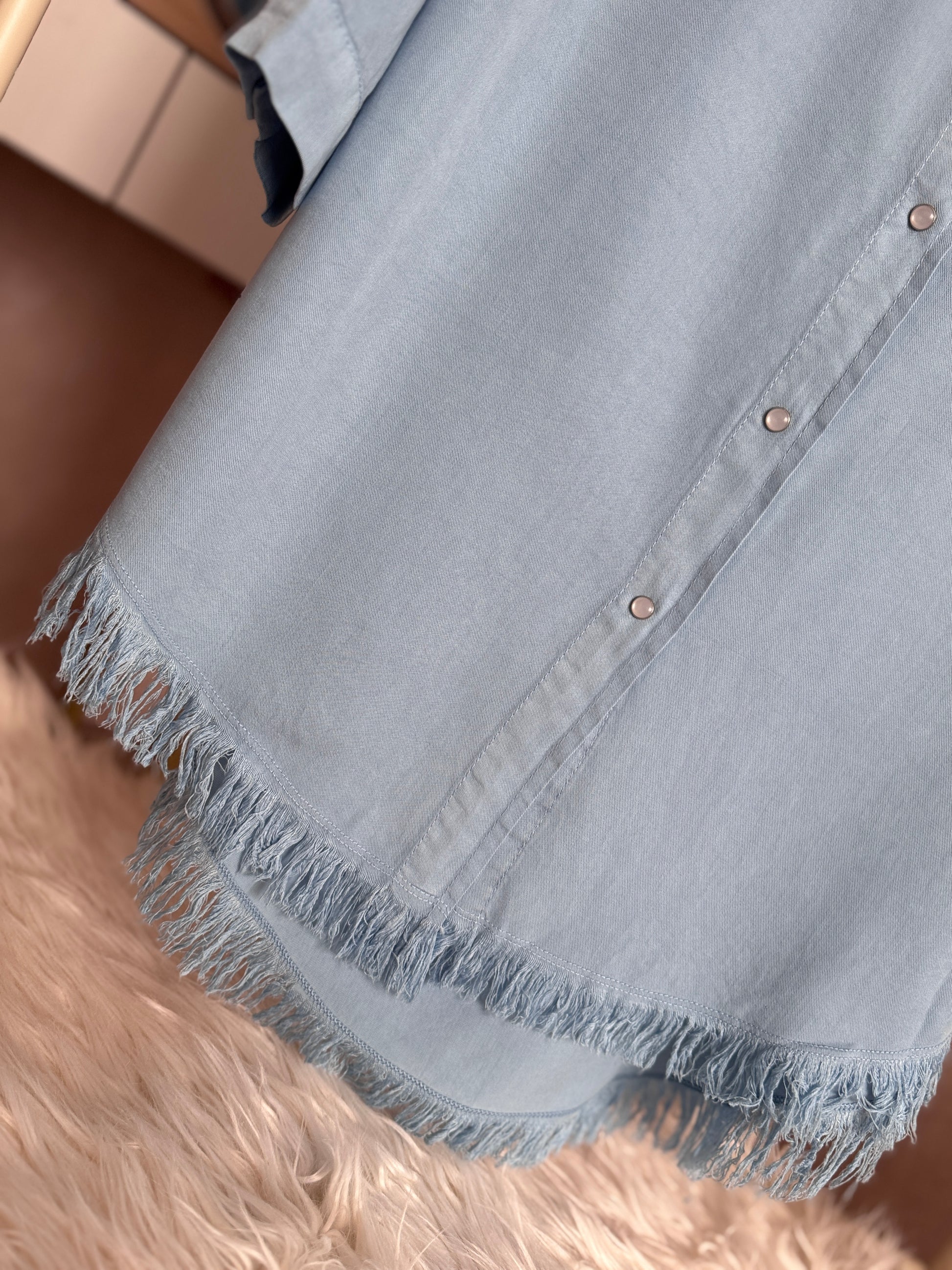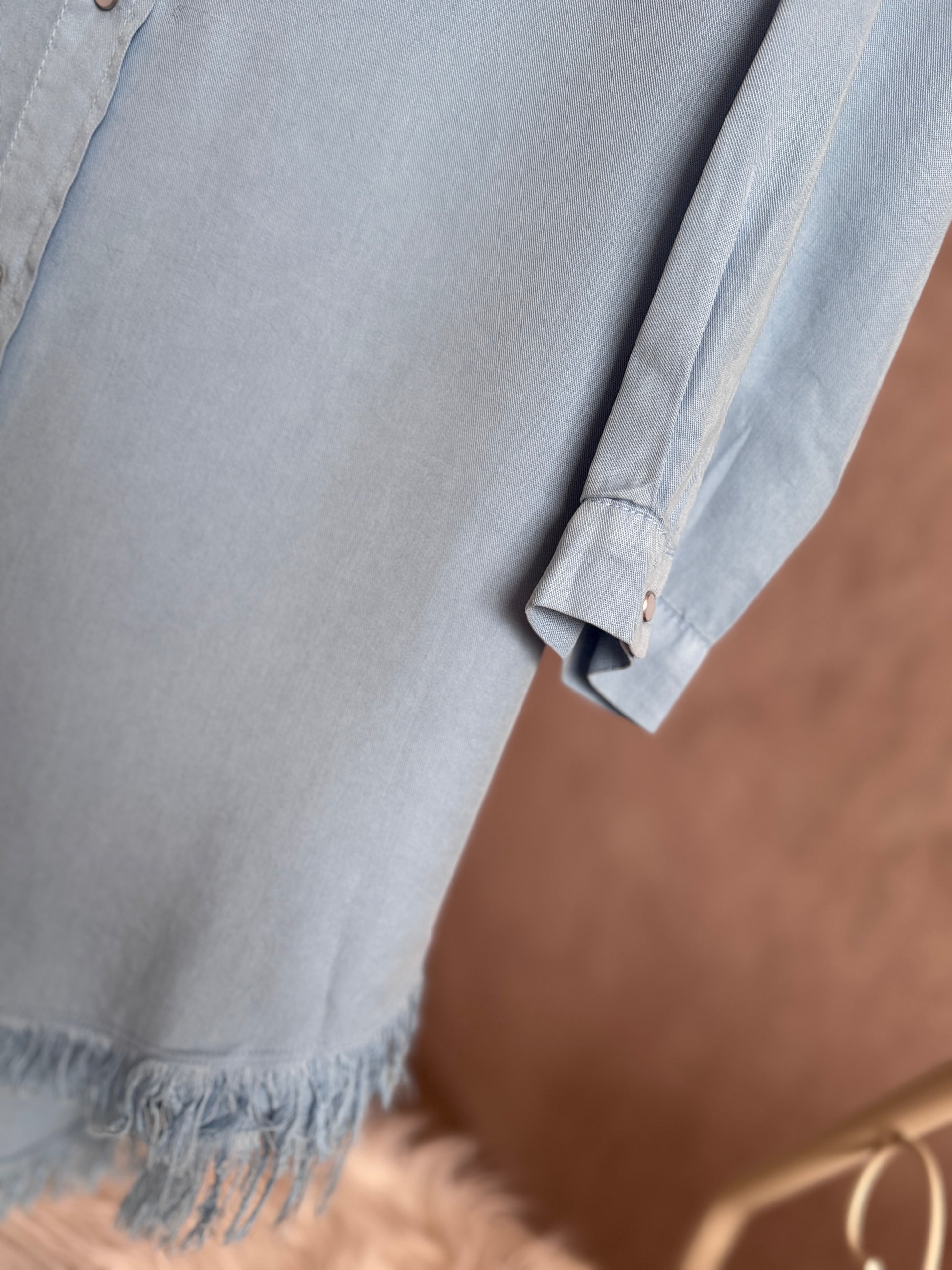 Tensel kumaş püsküllü gömlek tunik, mavi