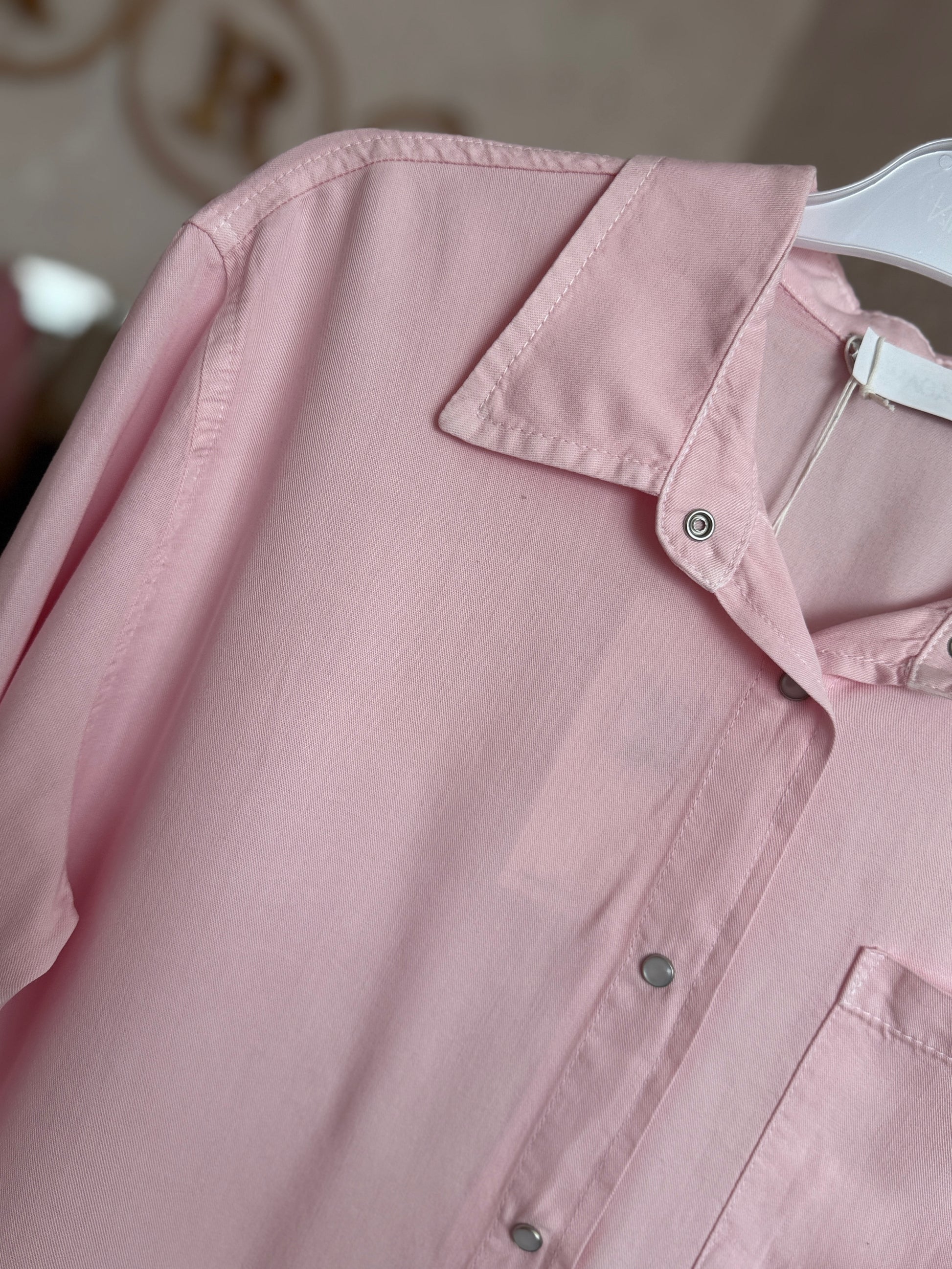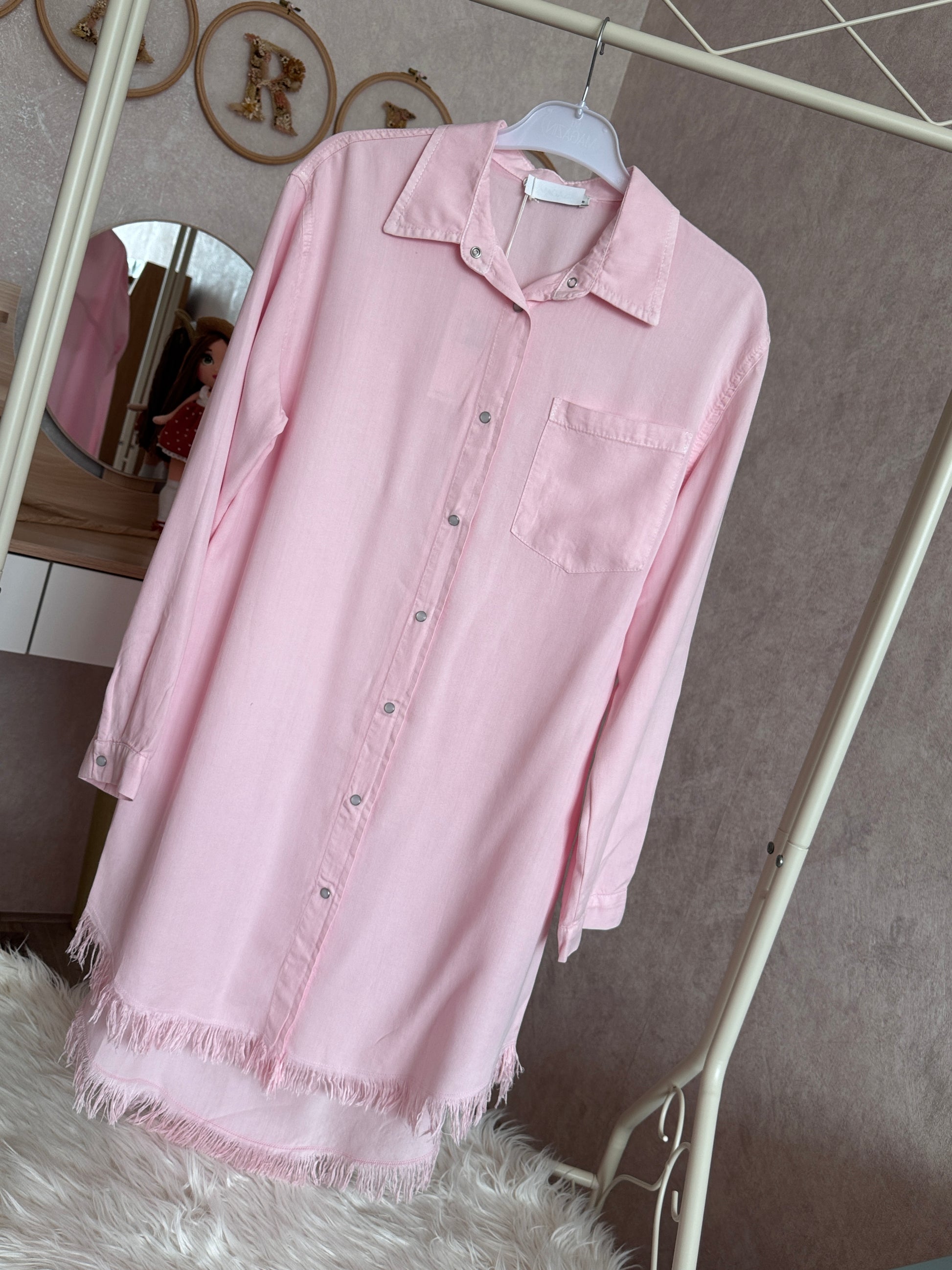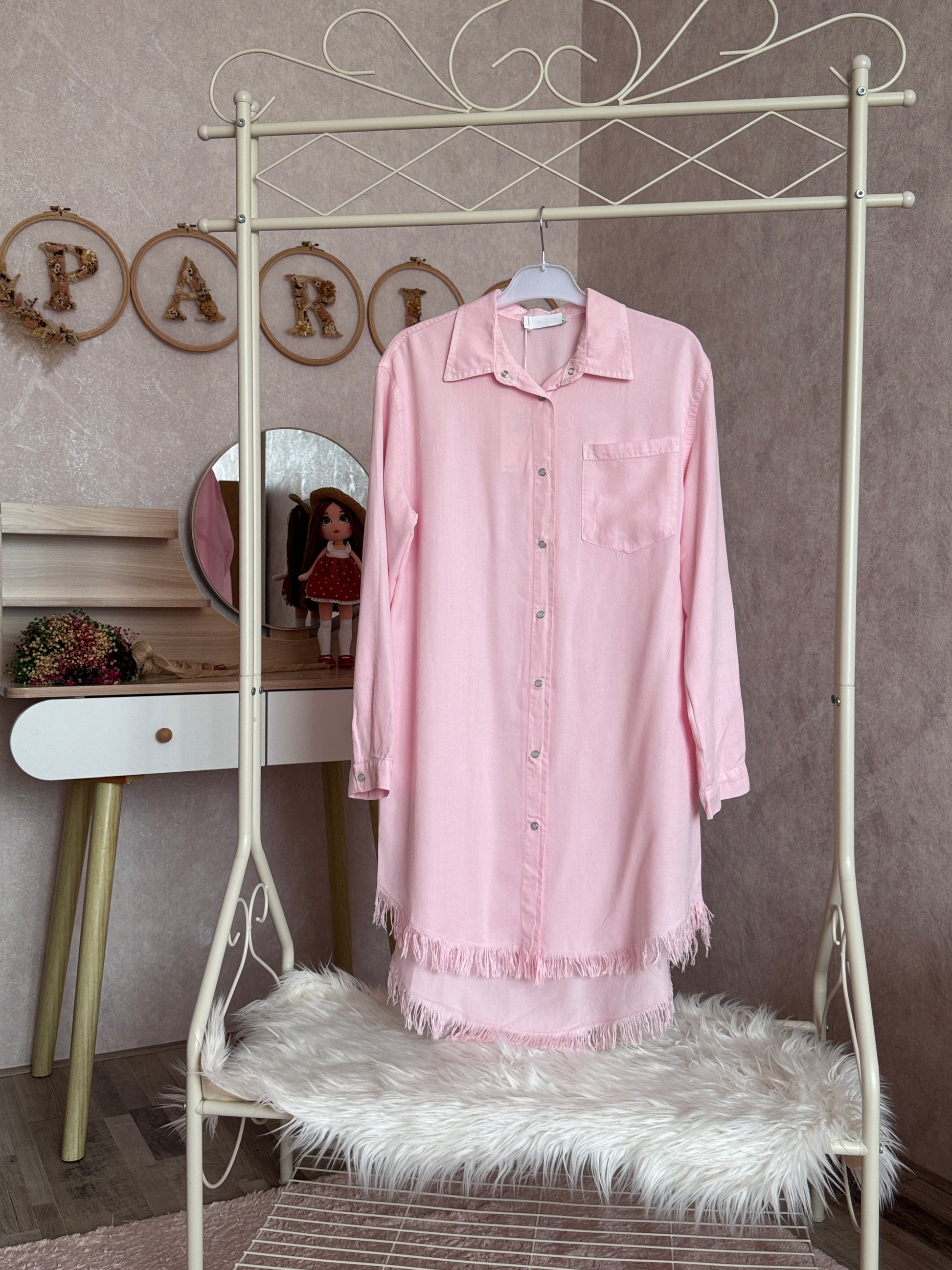 Tensel kumaş püsküllü gömlek tunik, pembe