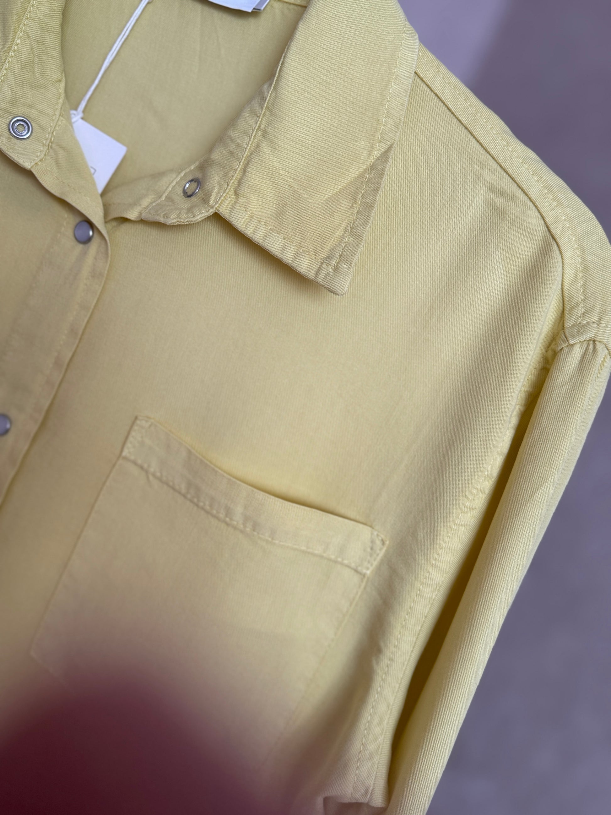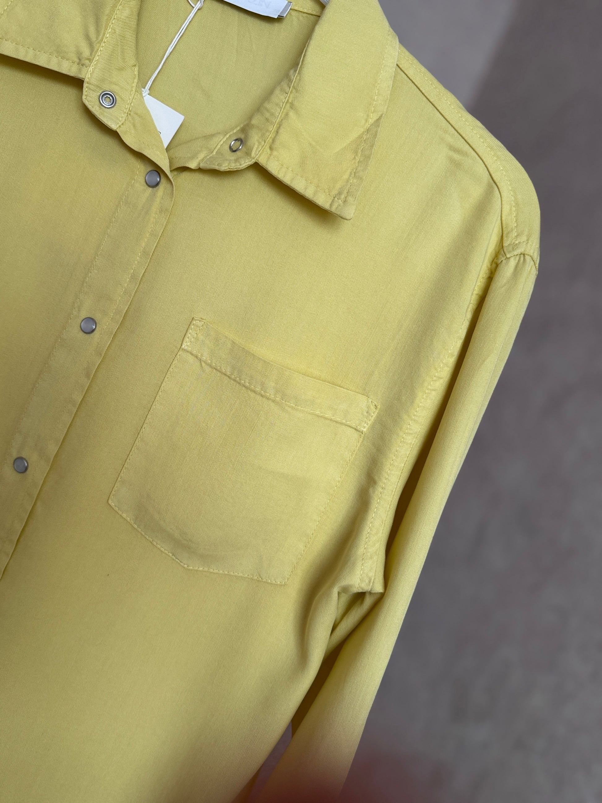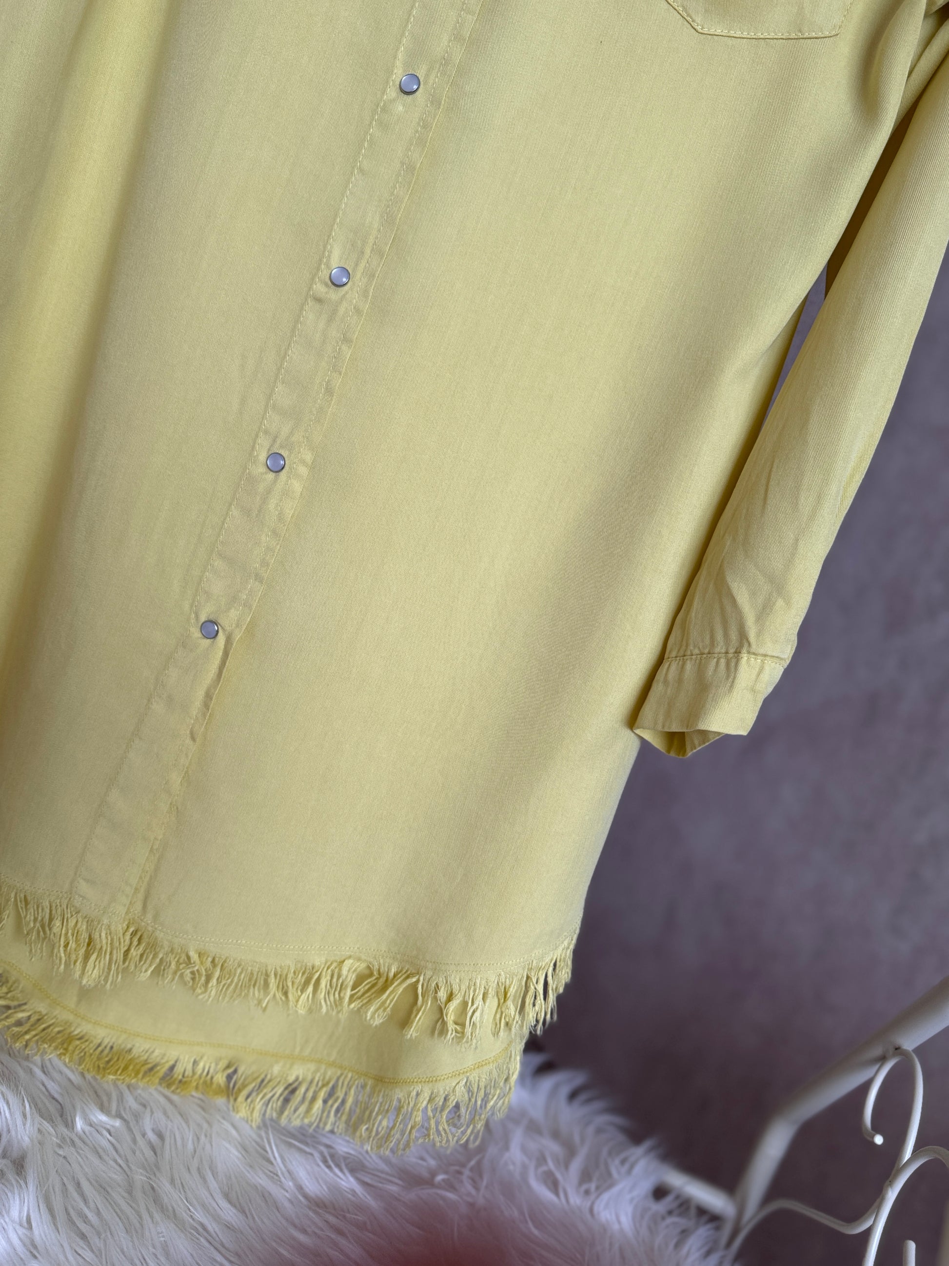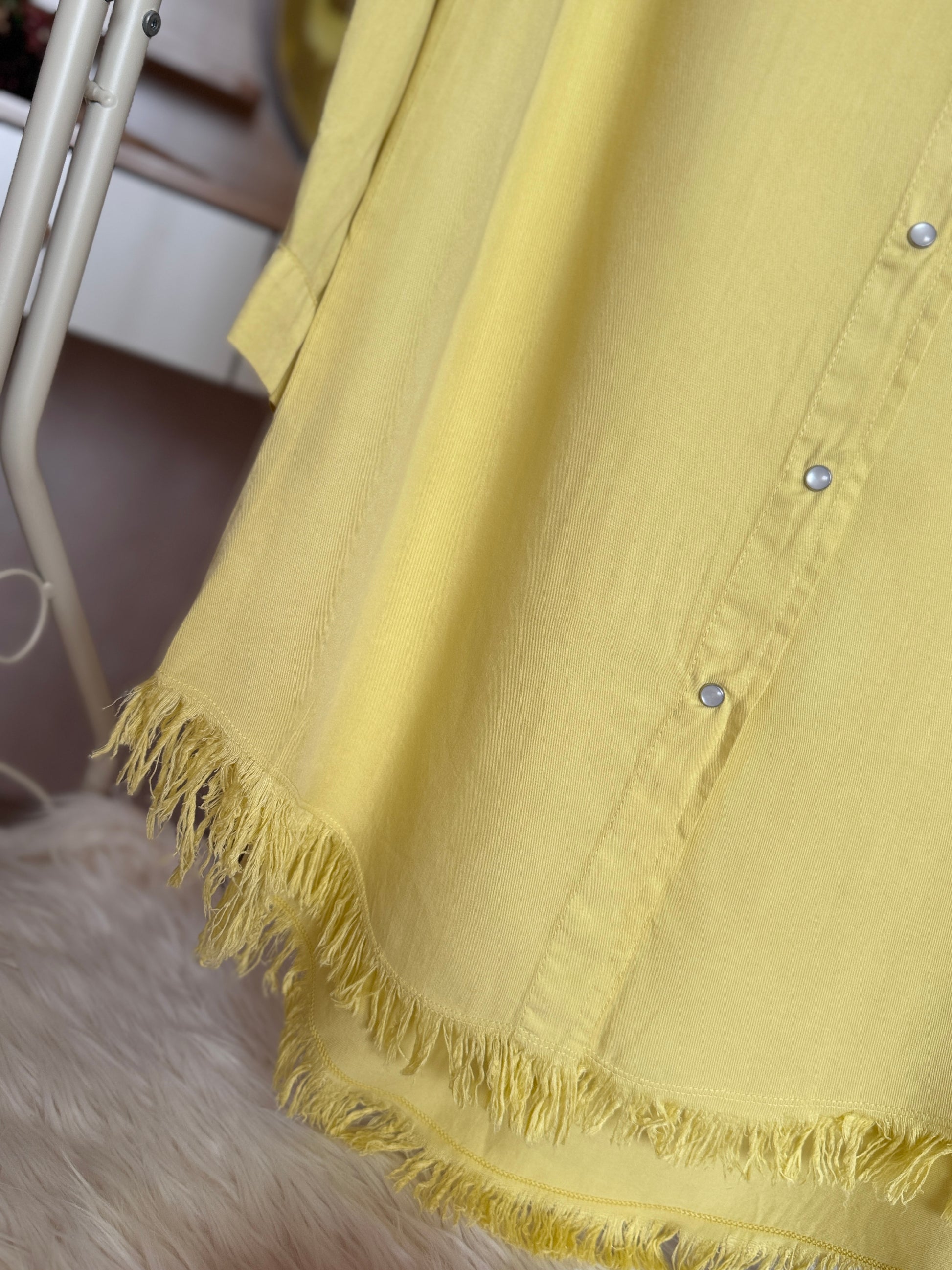 Tensel kumaş püsküllü gömlek tunik, sarı