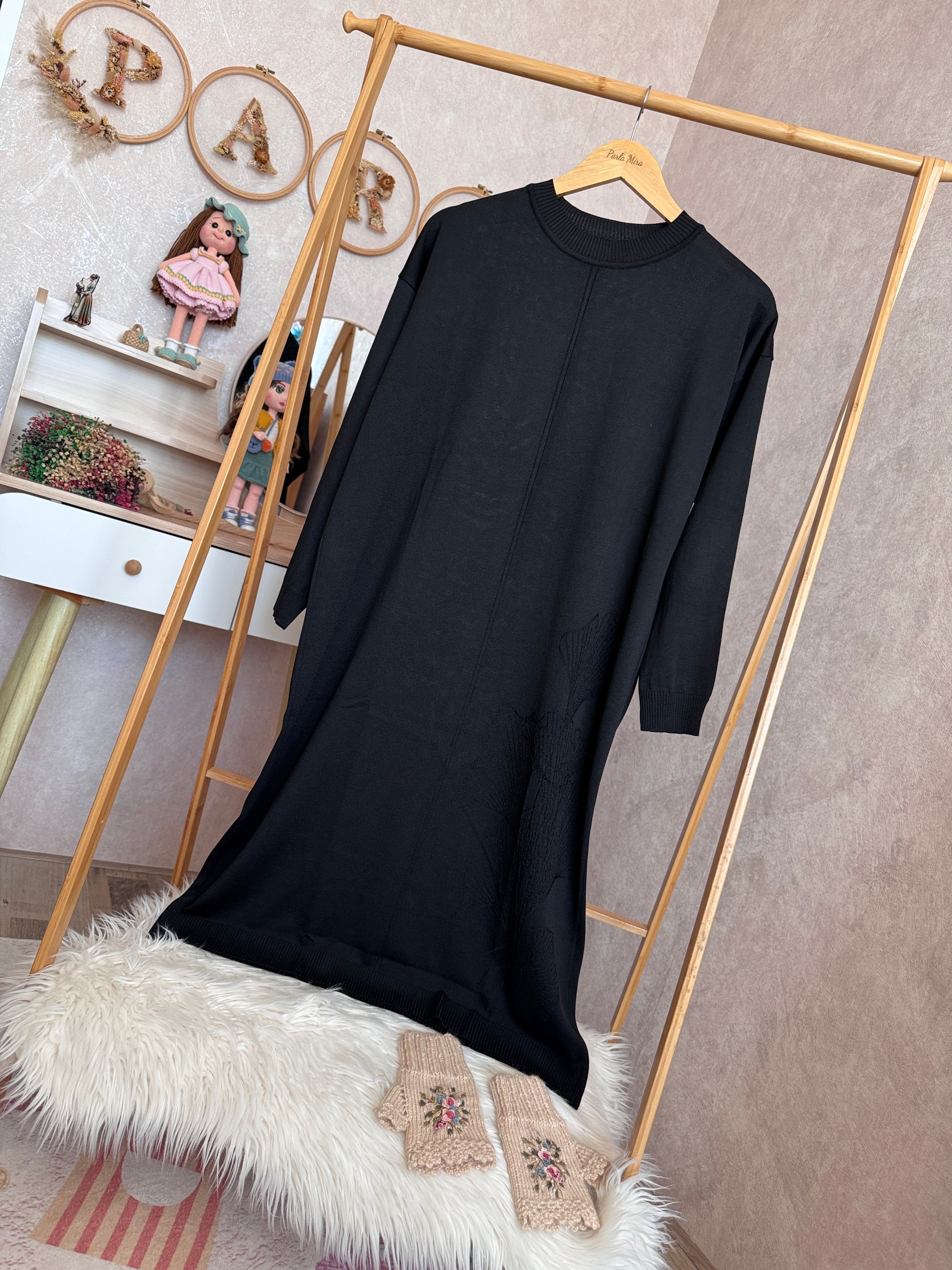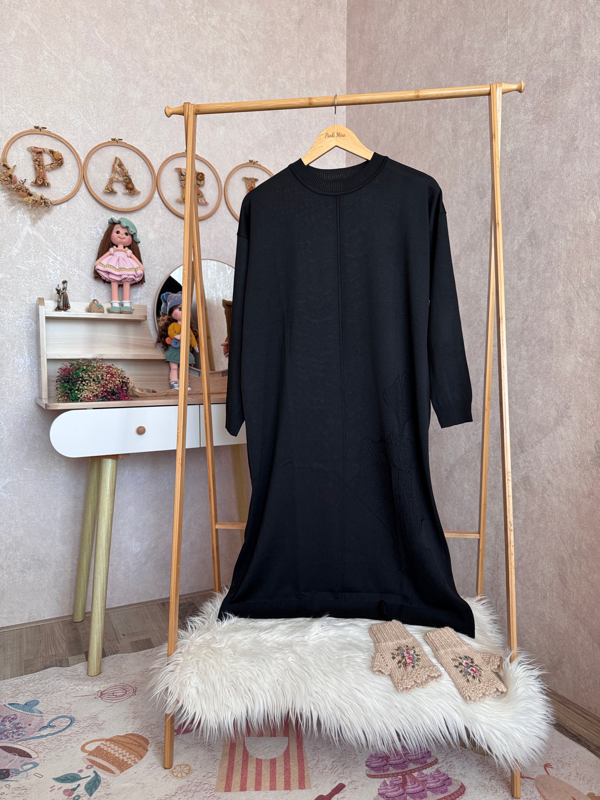 Harika kalitesiyle merserize triko tunik modelimiz sizlerle. Sol alt kısmı kendinden çiçek detaylı