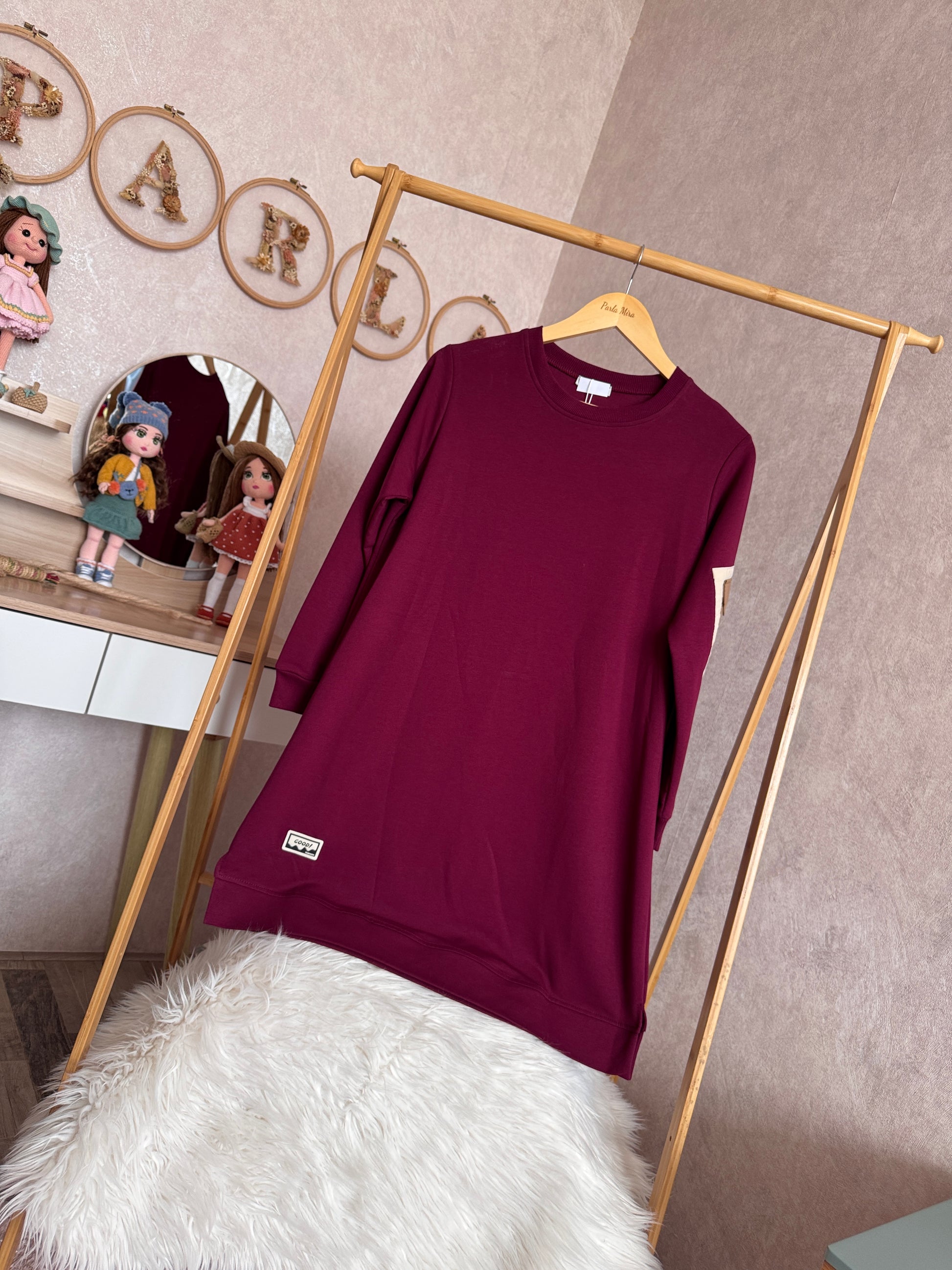 İki iplik penye, tunik kolları cep detaylı takım, bordo
