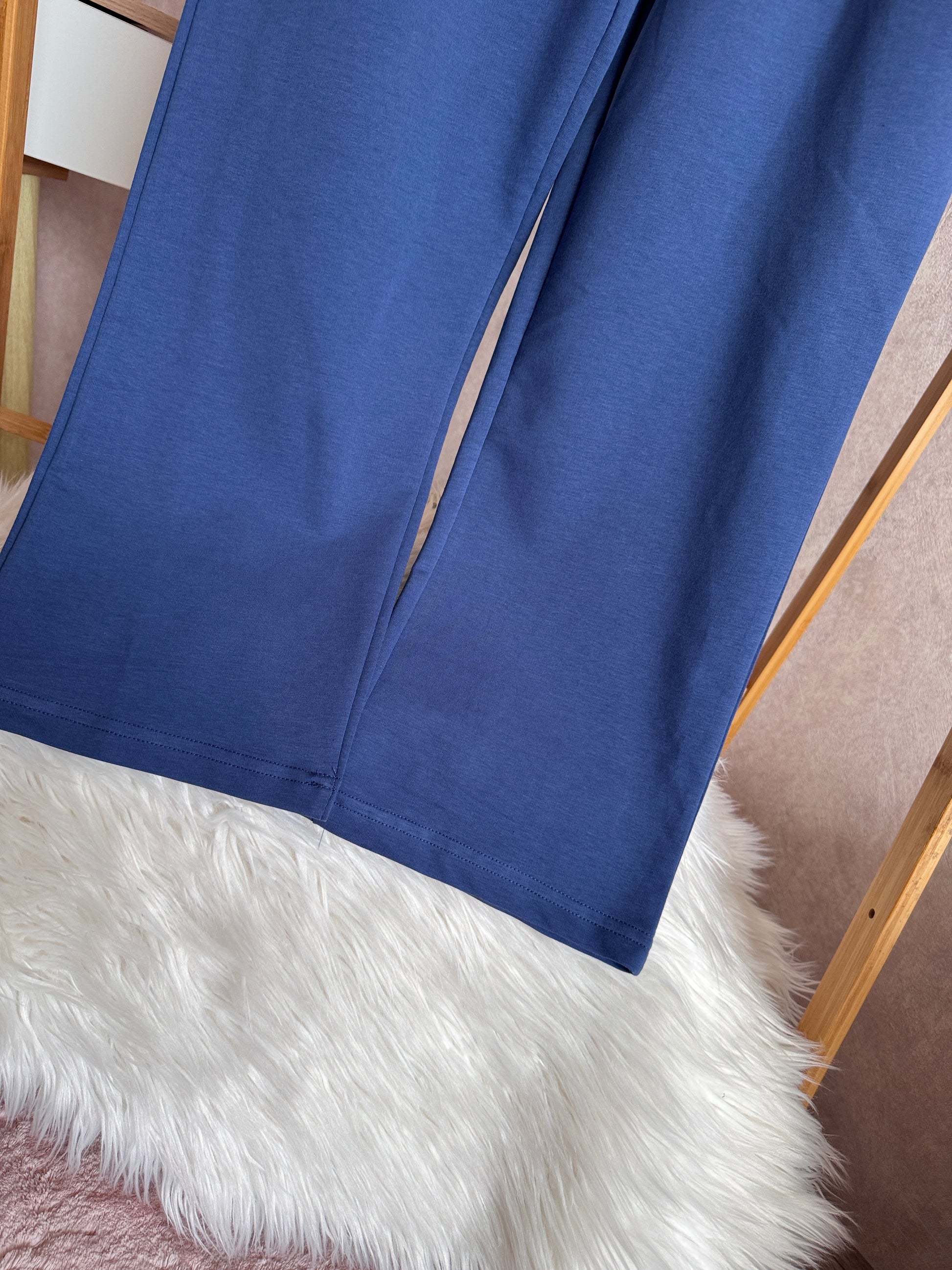 İki iplik penye, tunik kolları cep detaylı takım, indigo