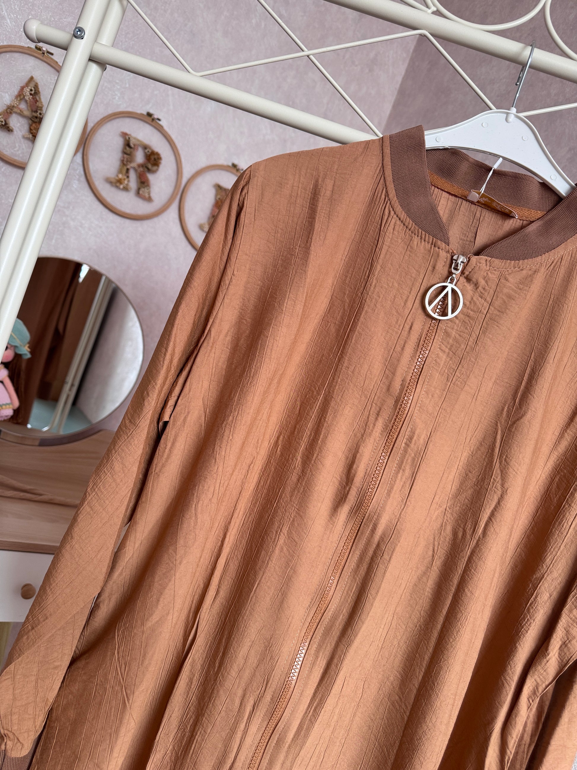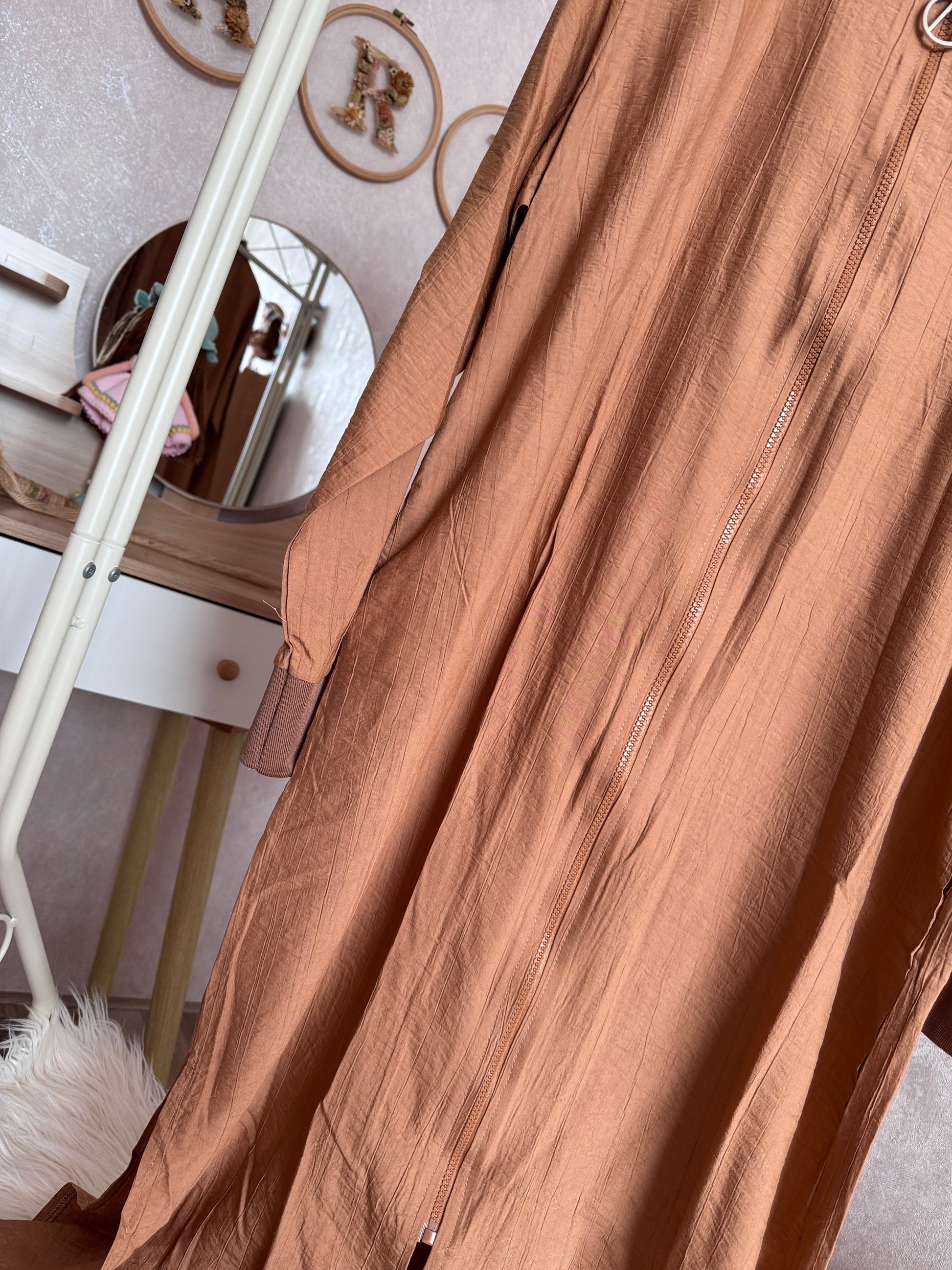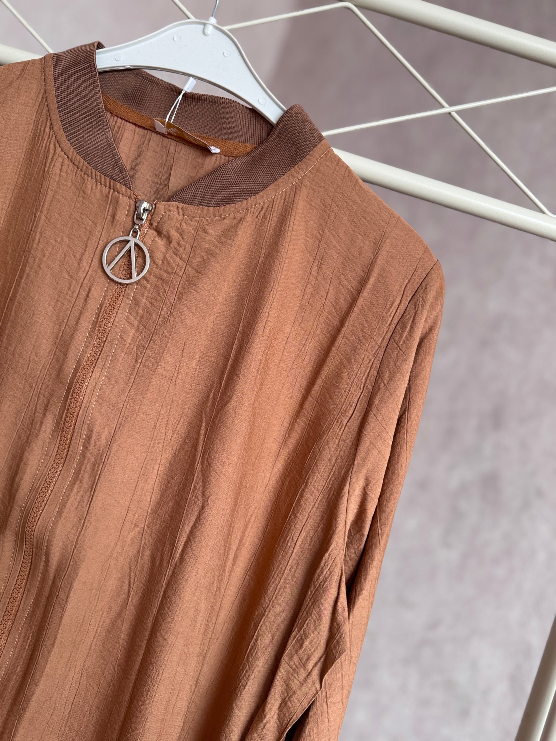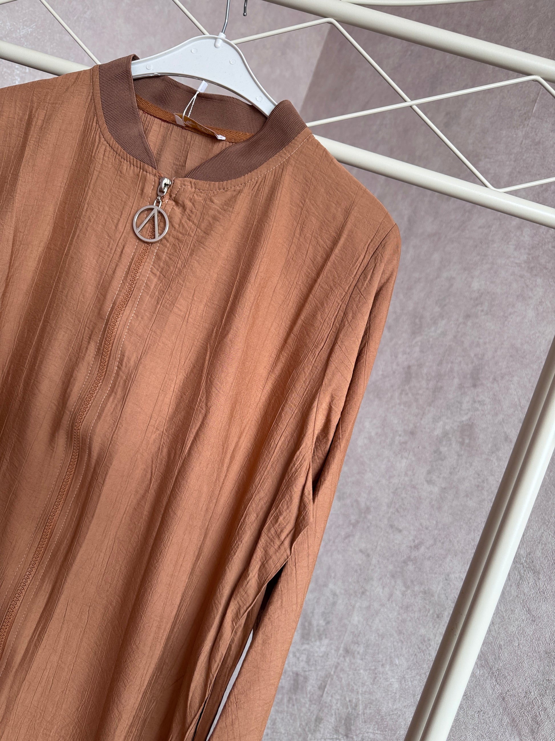 💙Önden boydan fermuarlı yazlık çilek kumaş giy-çık kap modeli, kahverengi